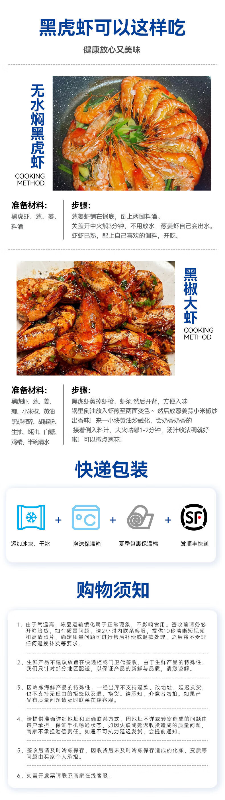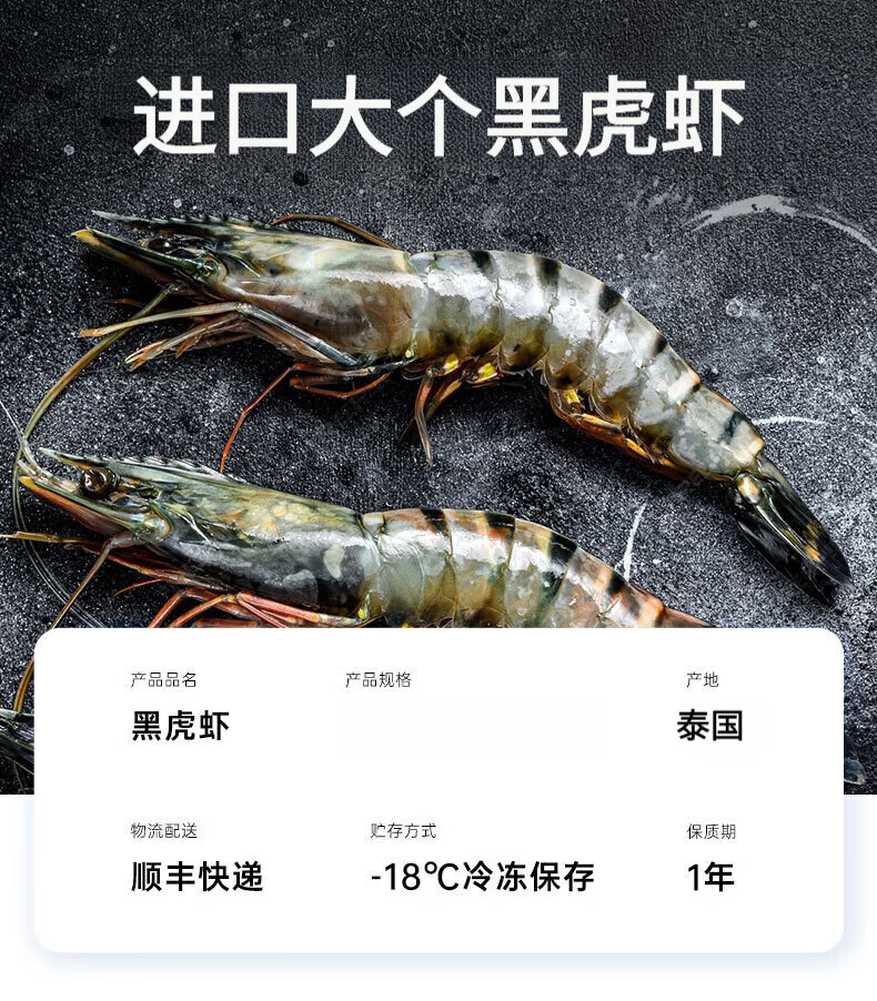 CLCEY进口黑虎虾高品质鲜活冷冻黑虎虾大虾类超大老虎虾顺丰包邮到家 22-24厘米共8只 1000g(净重) 礼盒装