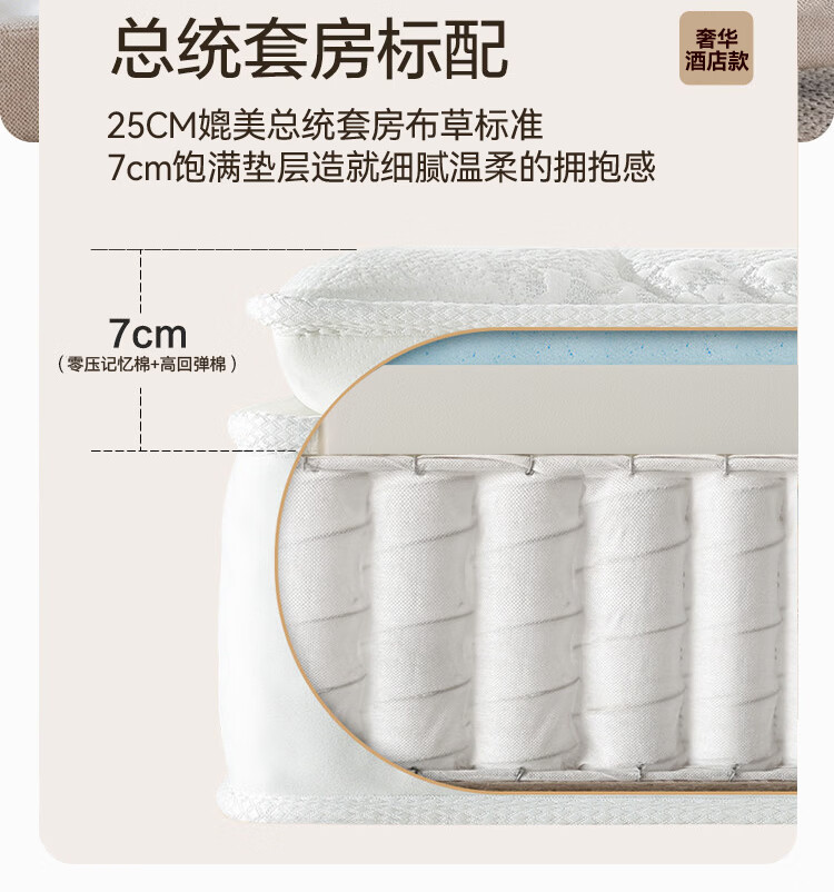 床垫席梦思希尔顿五星酒店同款十大品牌压缩卷包独立袋弹簧床垫子 25cm希尔顿酒店总统套房旗舰F款-卷包发货 2*2.2米