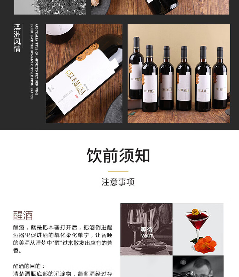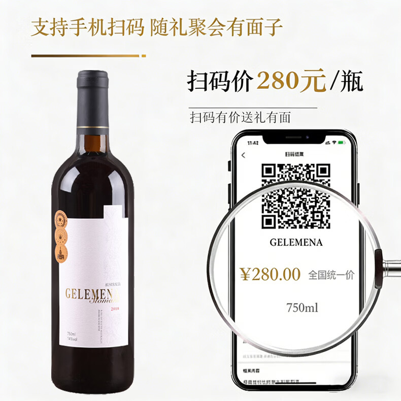 歌乐美娜澳洲进口 斯洛曼特干红葡萄酒红酒14度750ml 整箱6瓶送礼袋