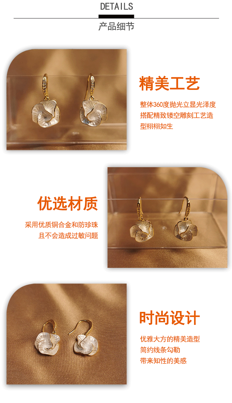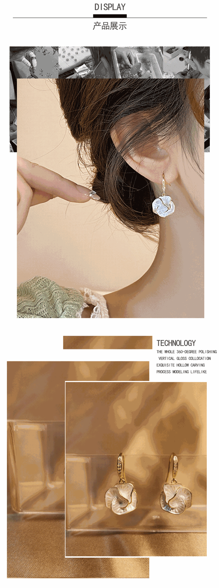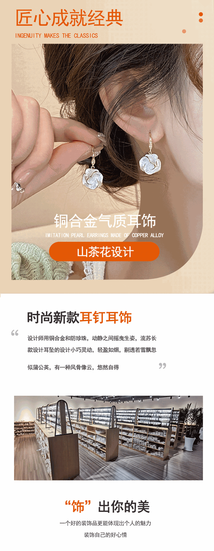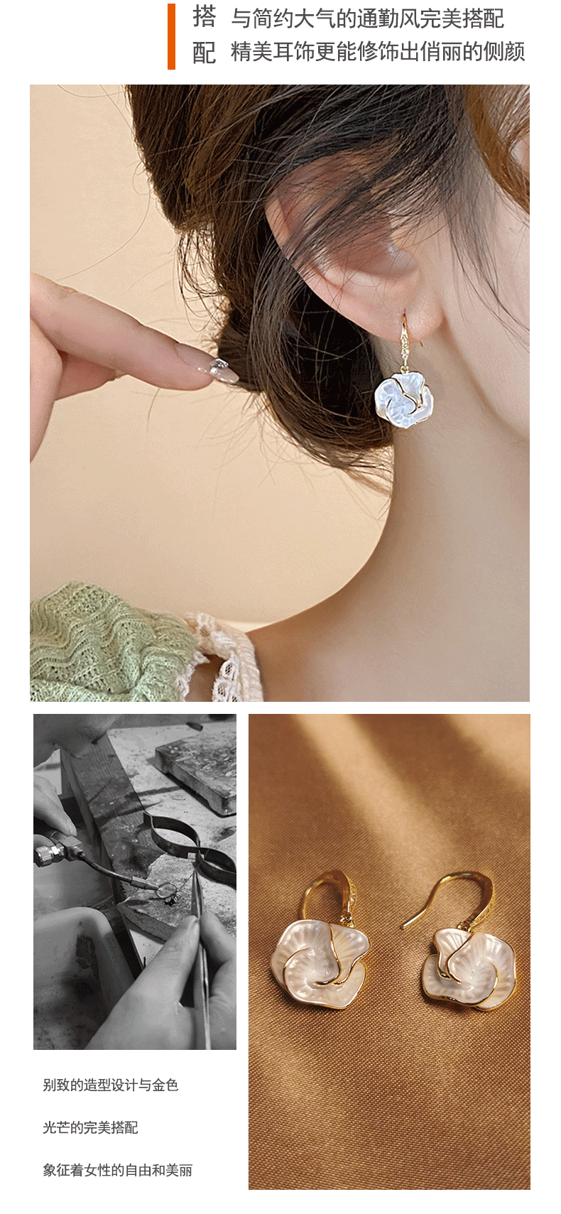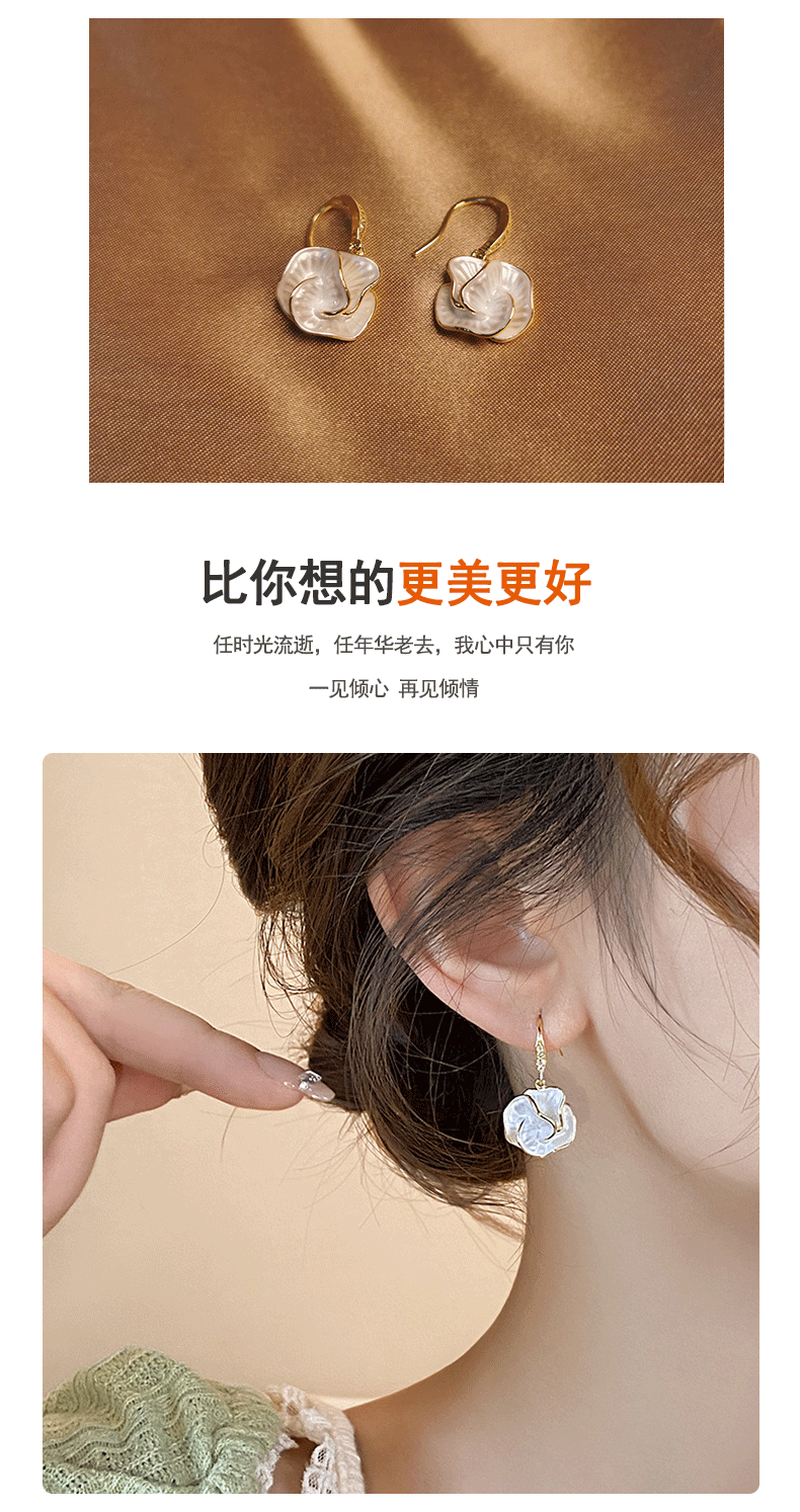 佳焰滴釉山茶花铜耳钉法式轻奢小众气质耳饰礼物女生高级感新款 白色银边山茶花耳钉