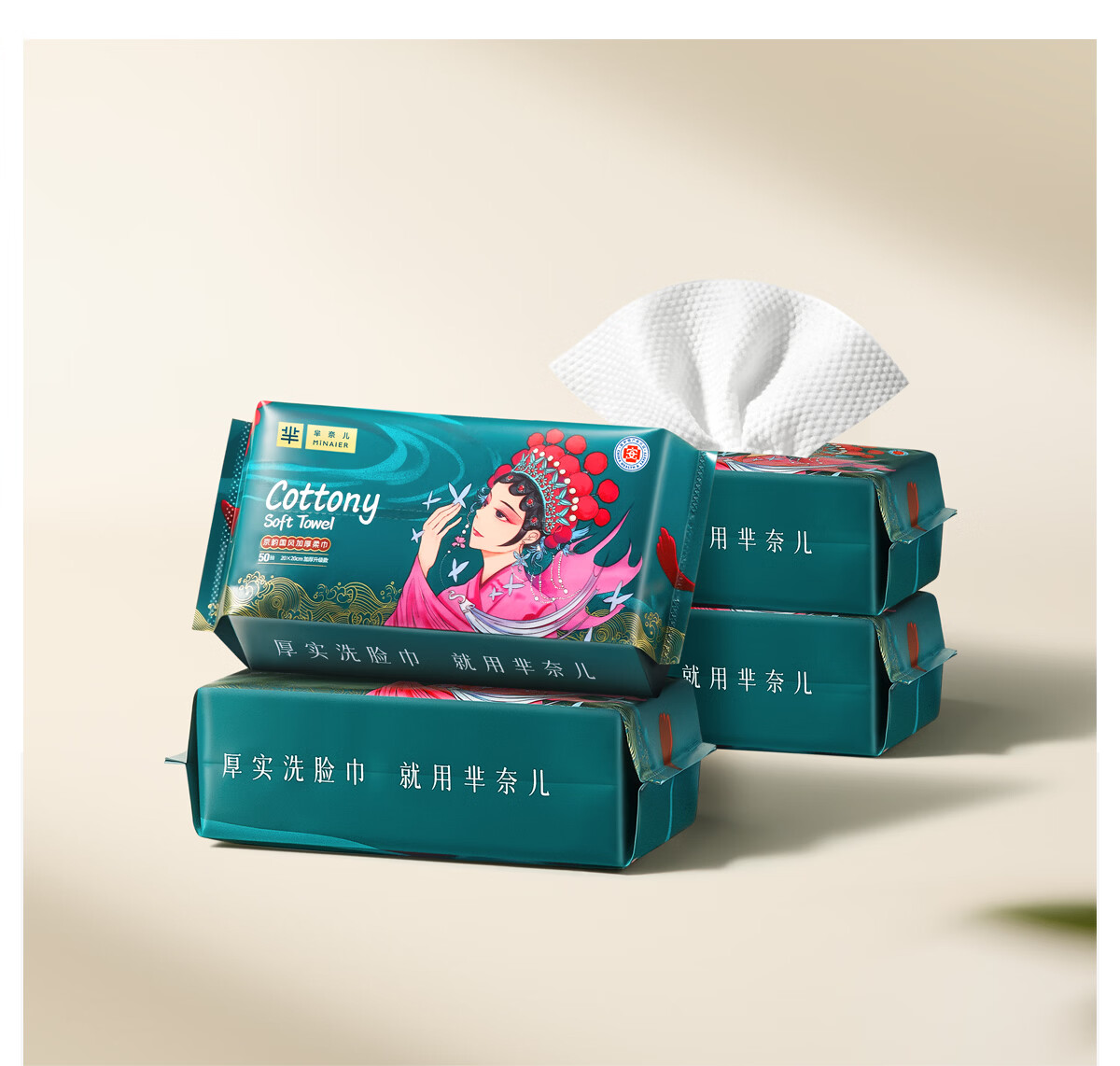 芈奈儿一次性洗脸巾50抽国潮加厚抽取洁面巾洗面卸妆母婴可用绵柔巾 【国潮加厚】50抽*7包
