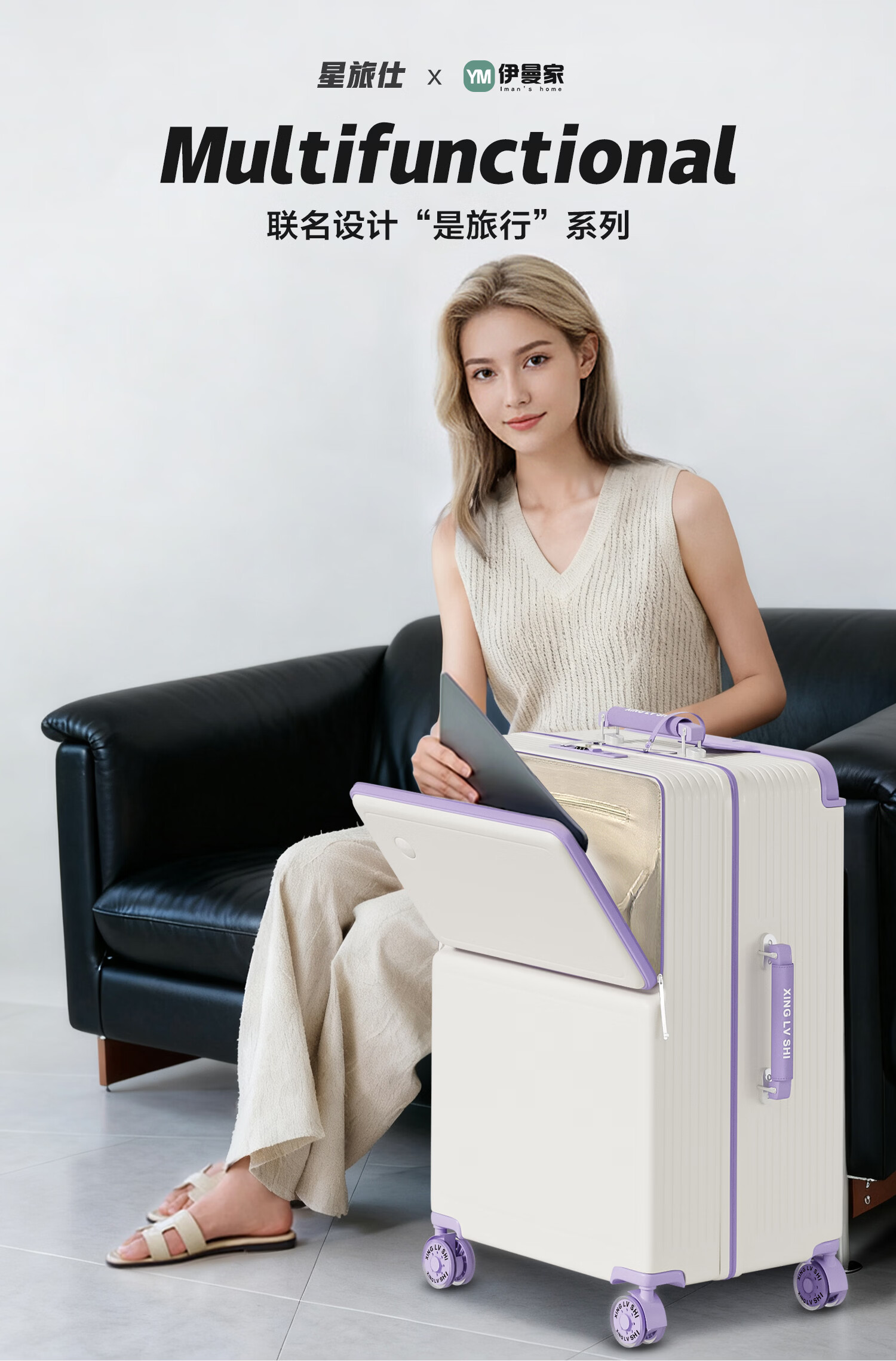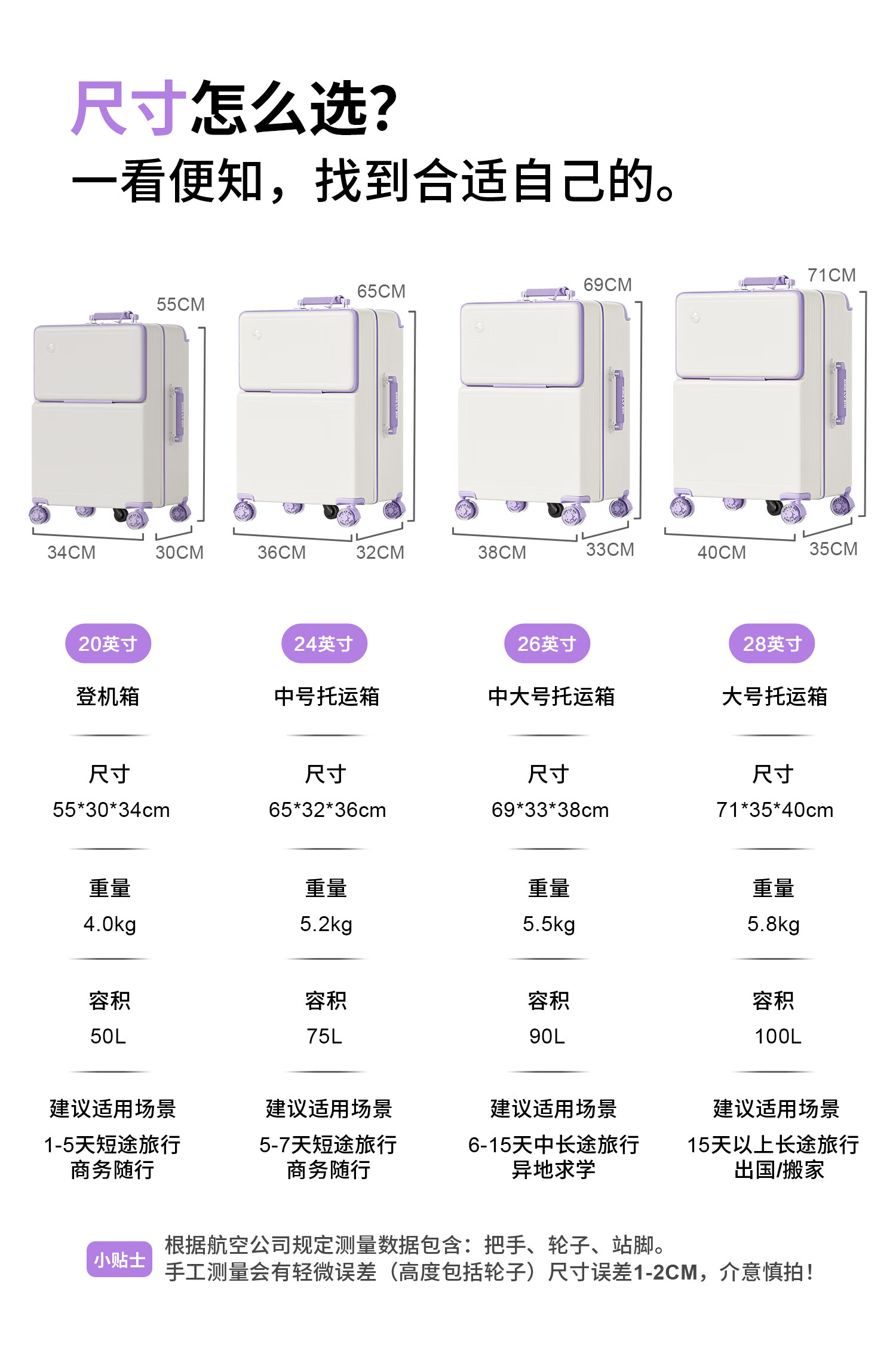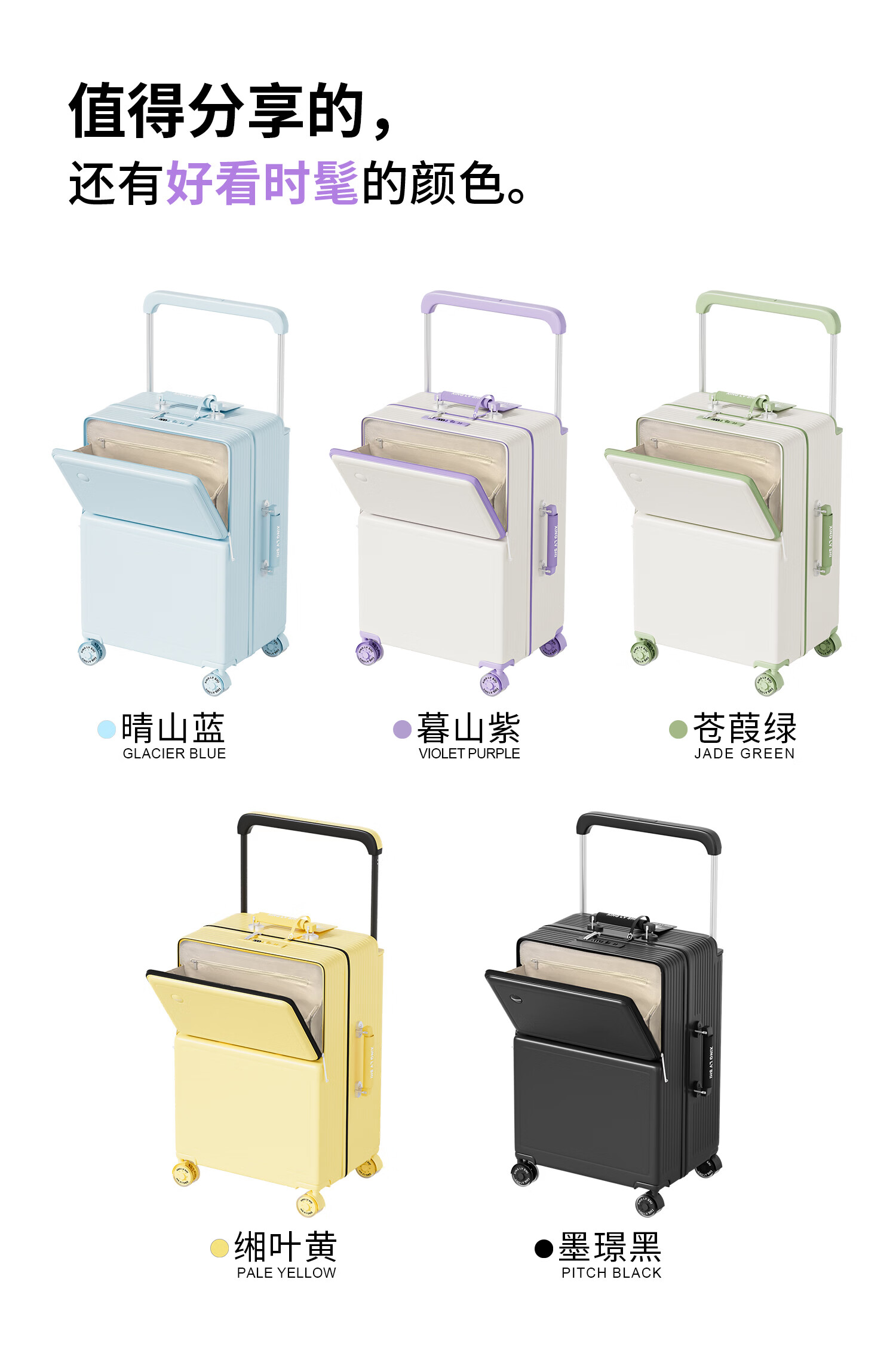 伊曼家行李箱宽拉杆箱大容量前翻盖PC旅行箱高颜值女密码皮箱子可登机男 晴山蓝-BLUE【溜冰轮+双层拉链】 20英寸 4轮登机箱【适合3-5天出行,加购优先发货】
