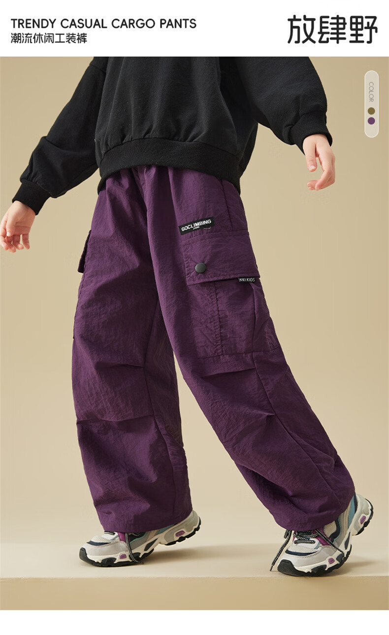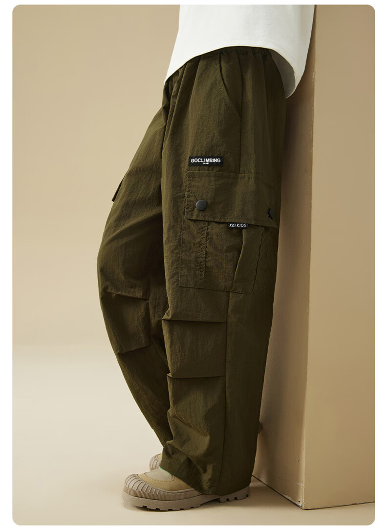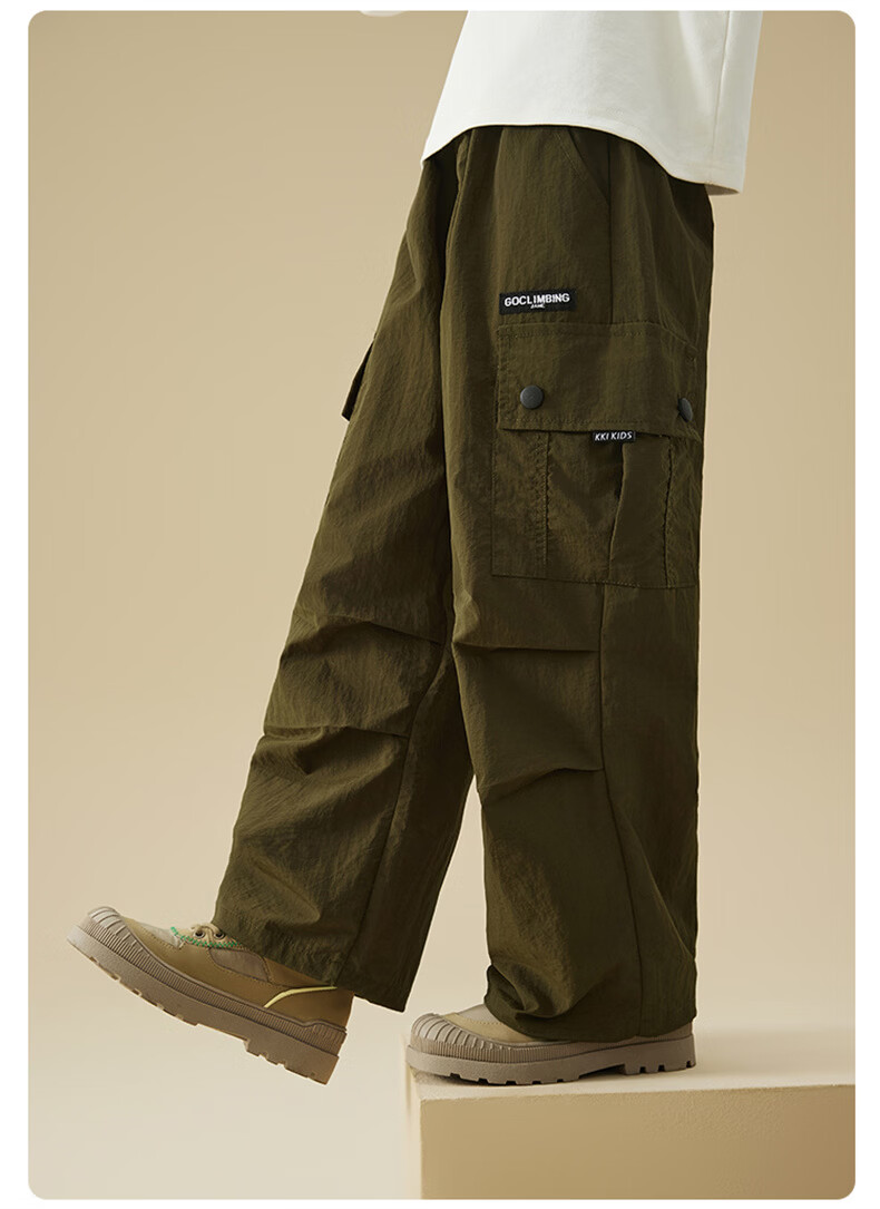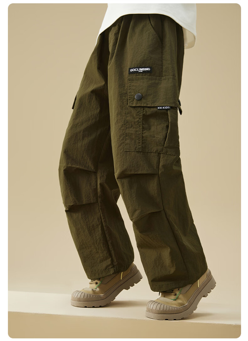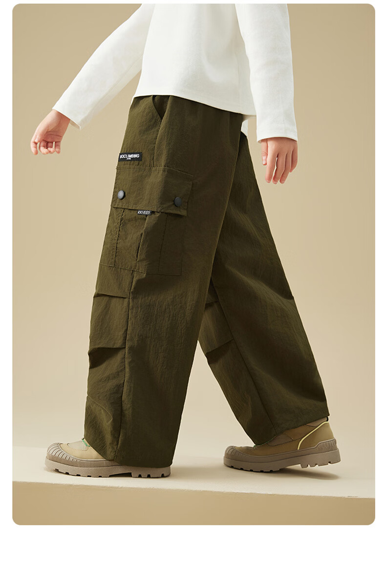 雪中飞(SNOWFLYING)儿童裤子2026春季新款男女童百搭休闲户外运动宽松工装裤 橄榄绿 170