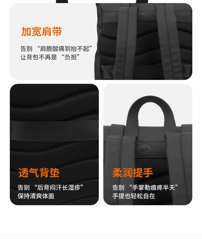 联想来酷Lecoo 笔记本双肩电脑包水洗尼龙 适用联想小米华为苹果MacBook商务通勤出差学生书包 休闲双肩包B003 浅绿色