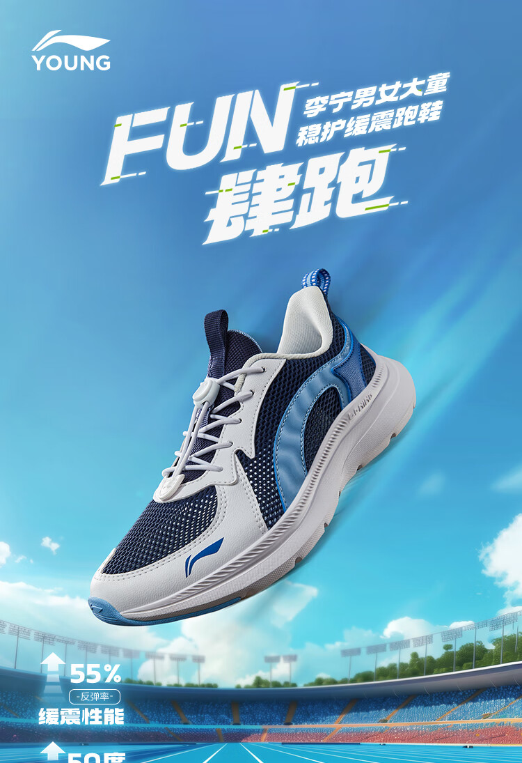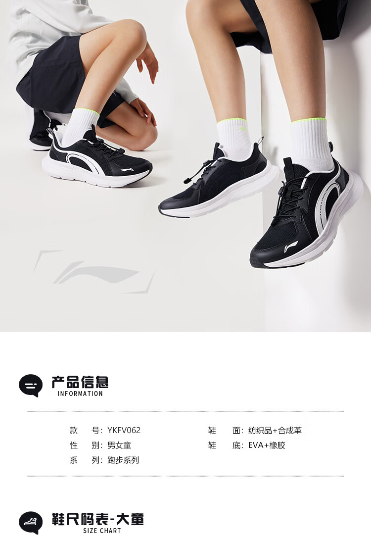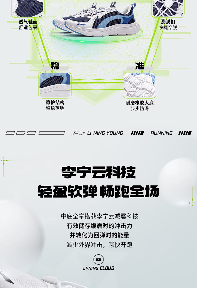 李宁童鞋儿童跑步鞋女大童李宁云减震透气网面轻量运动鞋36YKFV062-2
