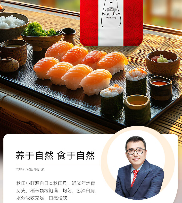 吉得利 寿司食材 秋田小町米300g 寿司米日式料理饭团紫菜包饭