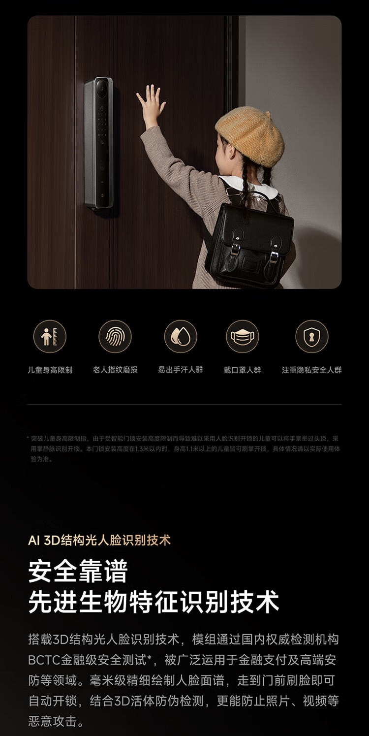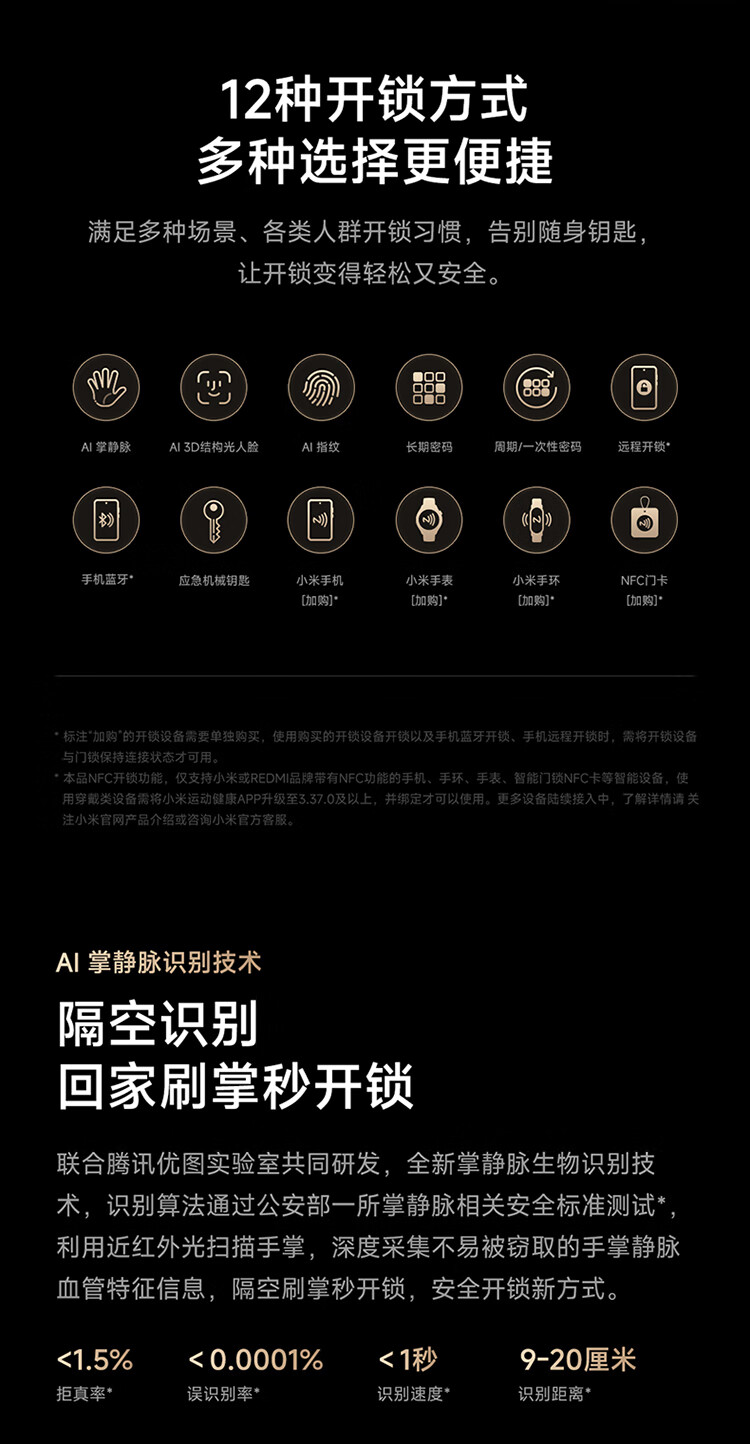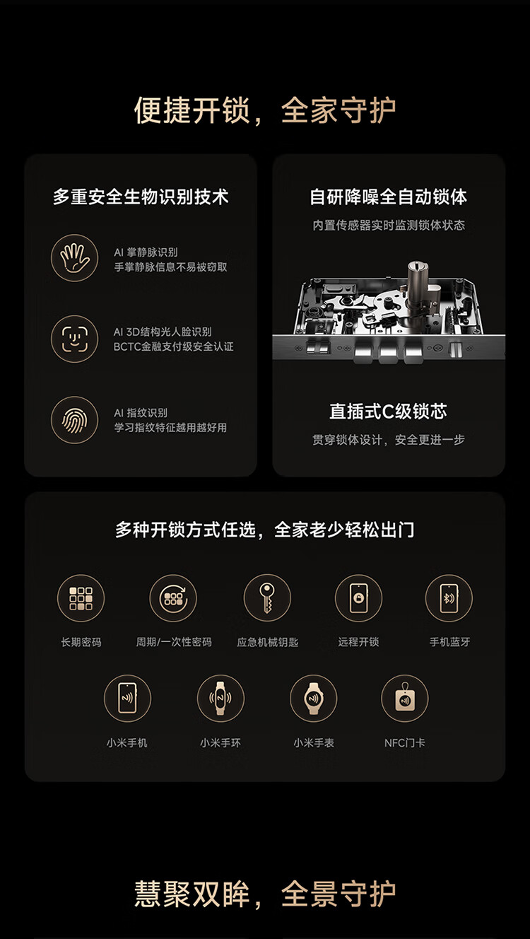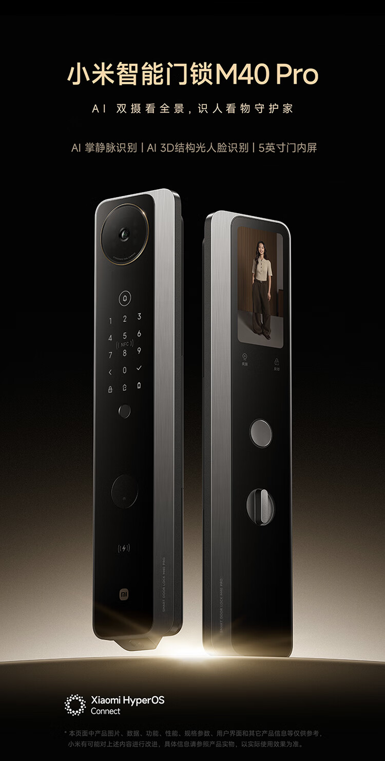 小米智能门锁 M40 Pro 人脸锁掌静脉锁 指纹锁 电子锁防盗门锁