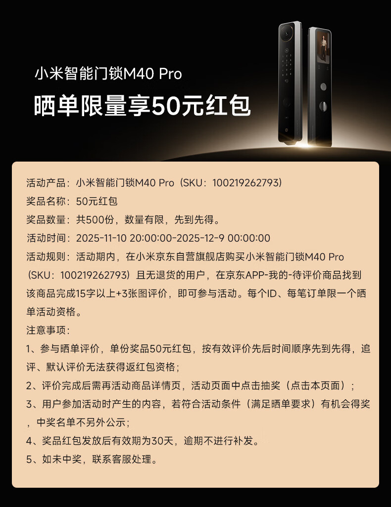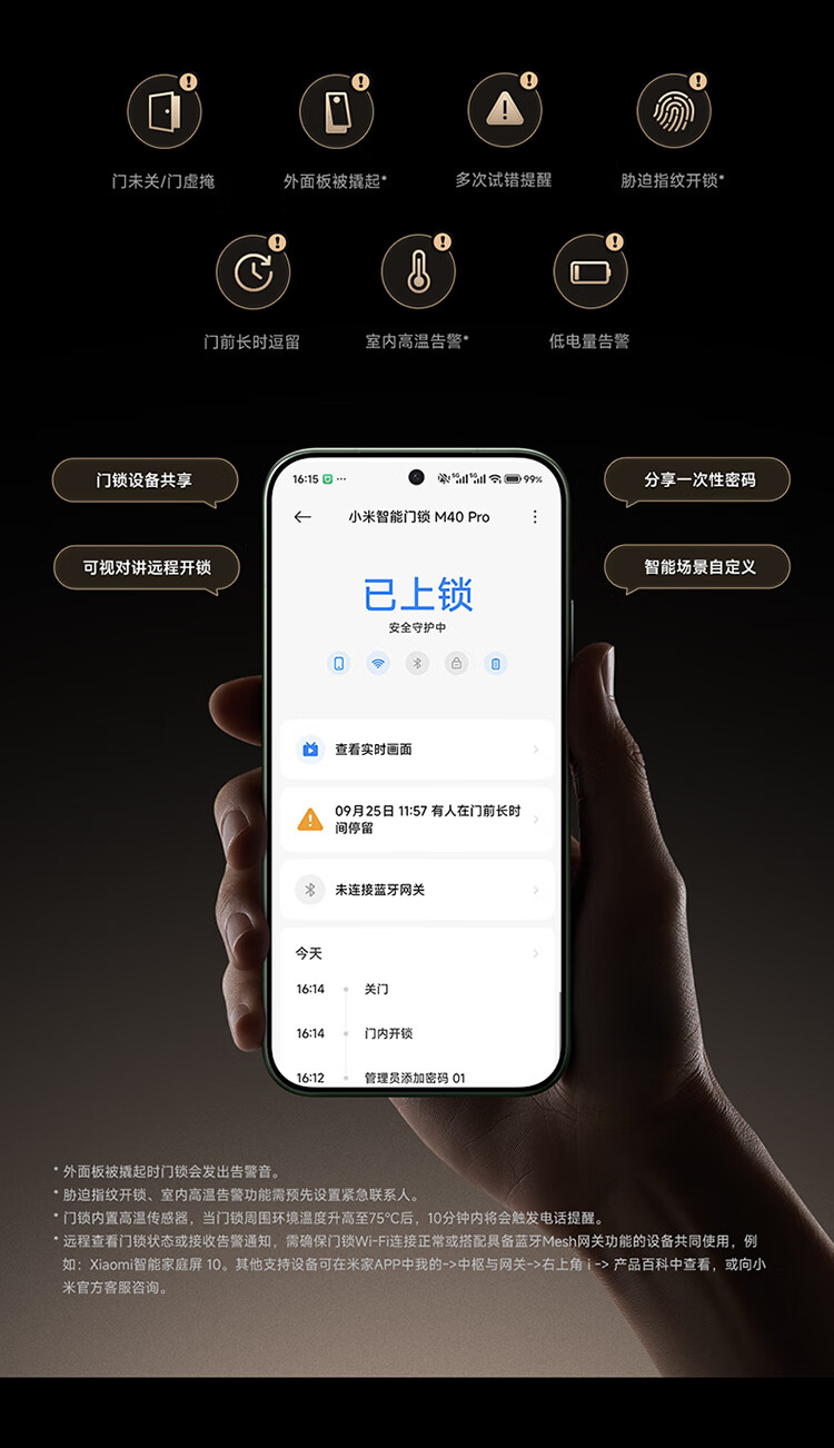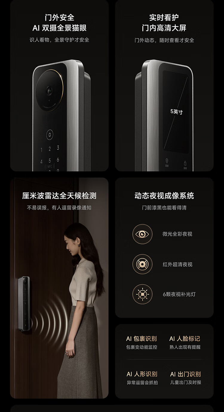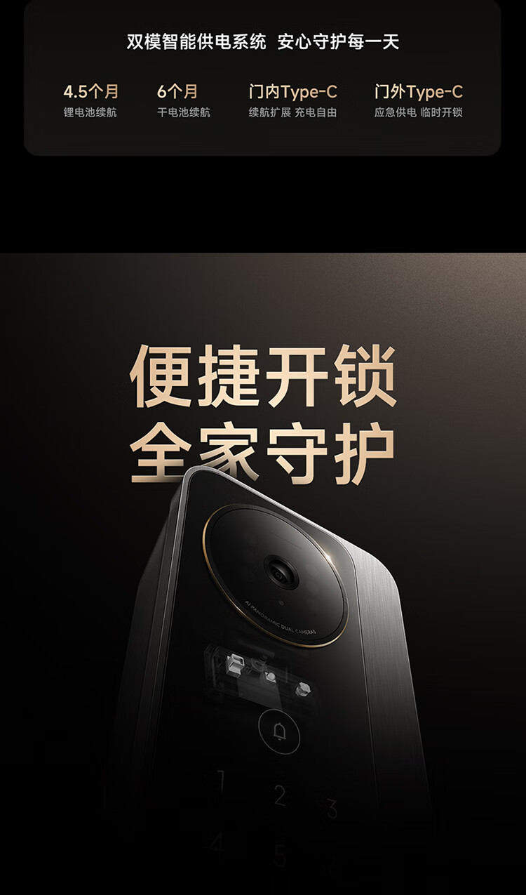 小米智能门锁 M40 Pro 人脸锁掌静脉锁 指纹锁 电子锁防盗门锁