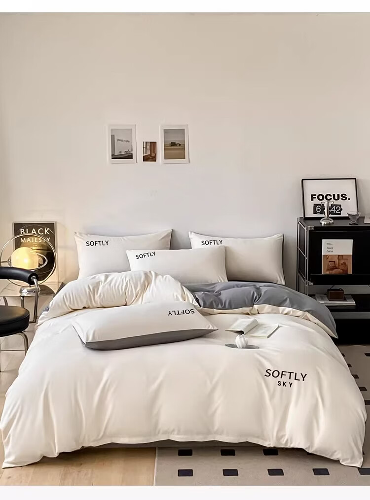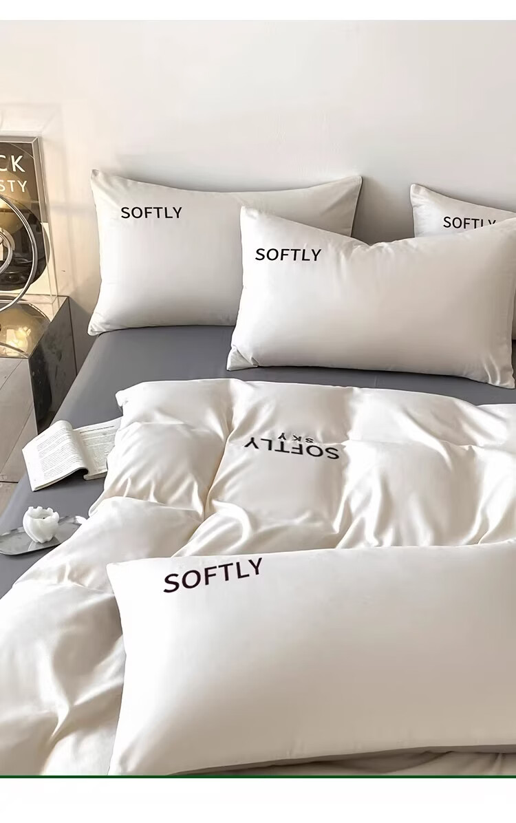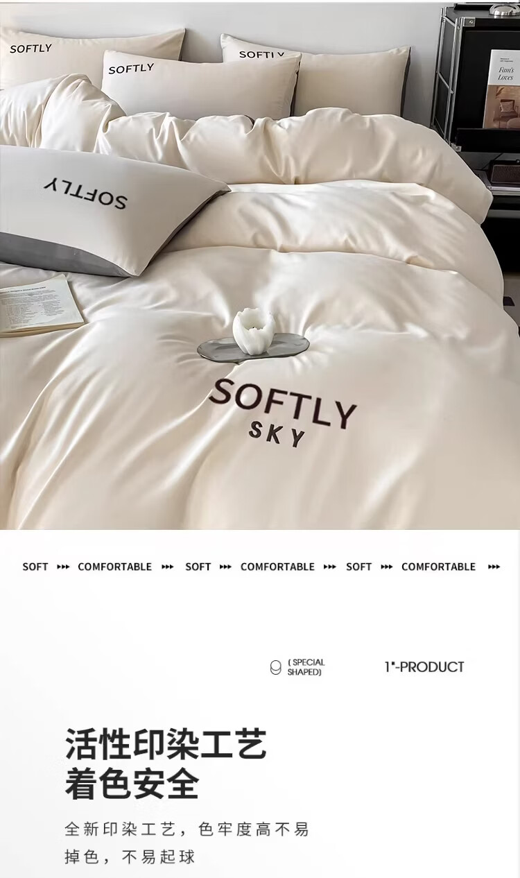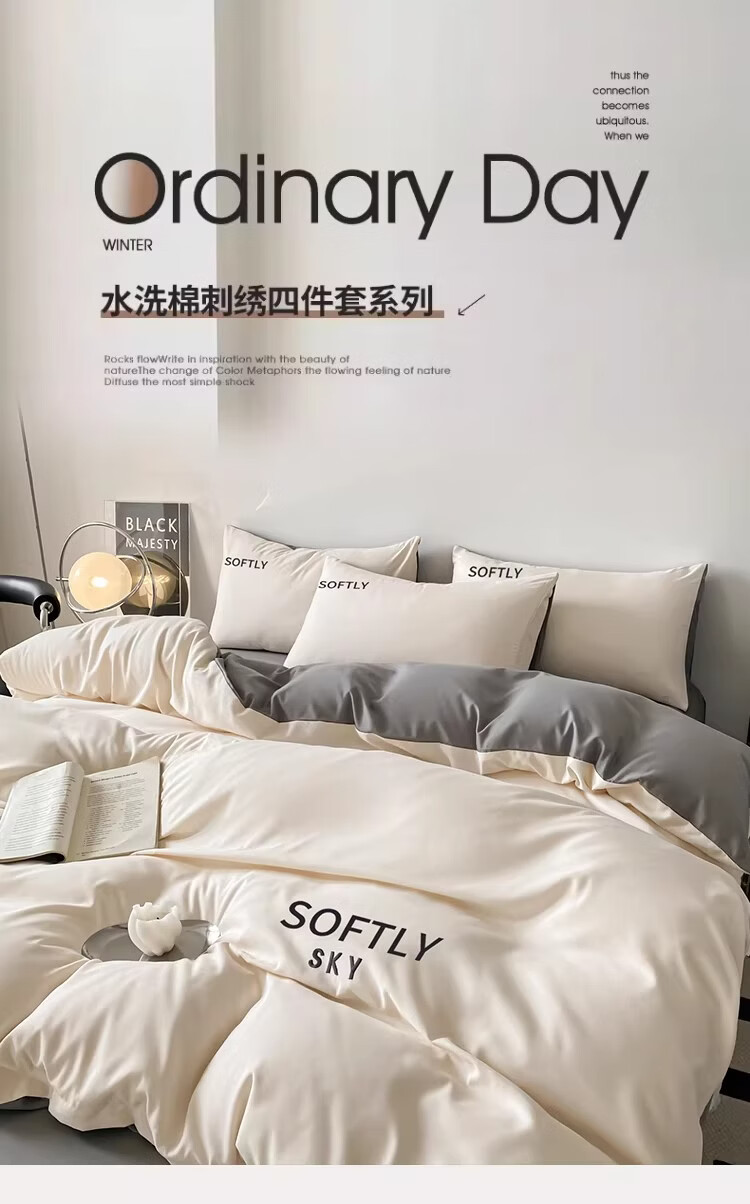 无印良品亲肤刺绣四件套床上用品宿舍家用床单被套单双人可裸睡被罩三件套 晴空-奶昔白 【细腻亲肤】 1.8m 床单款 四件套-被套200x230cm