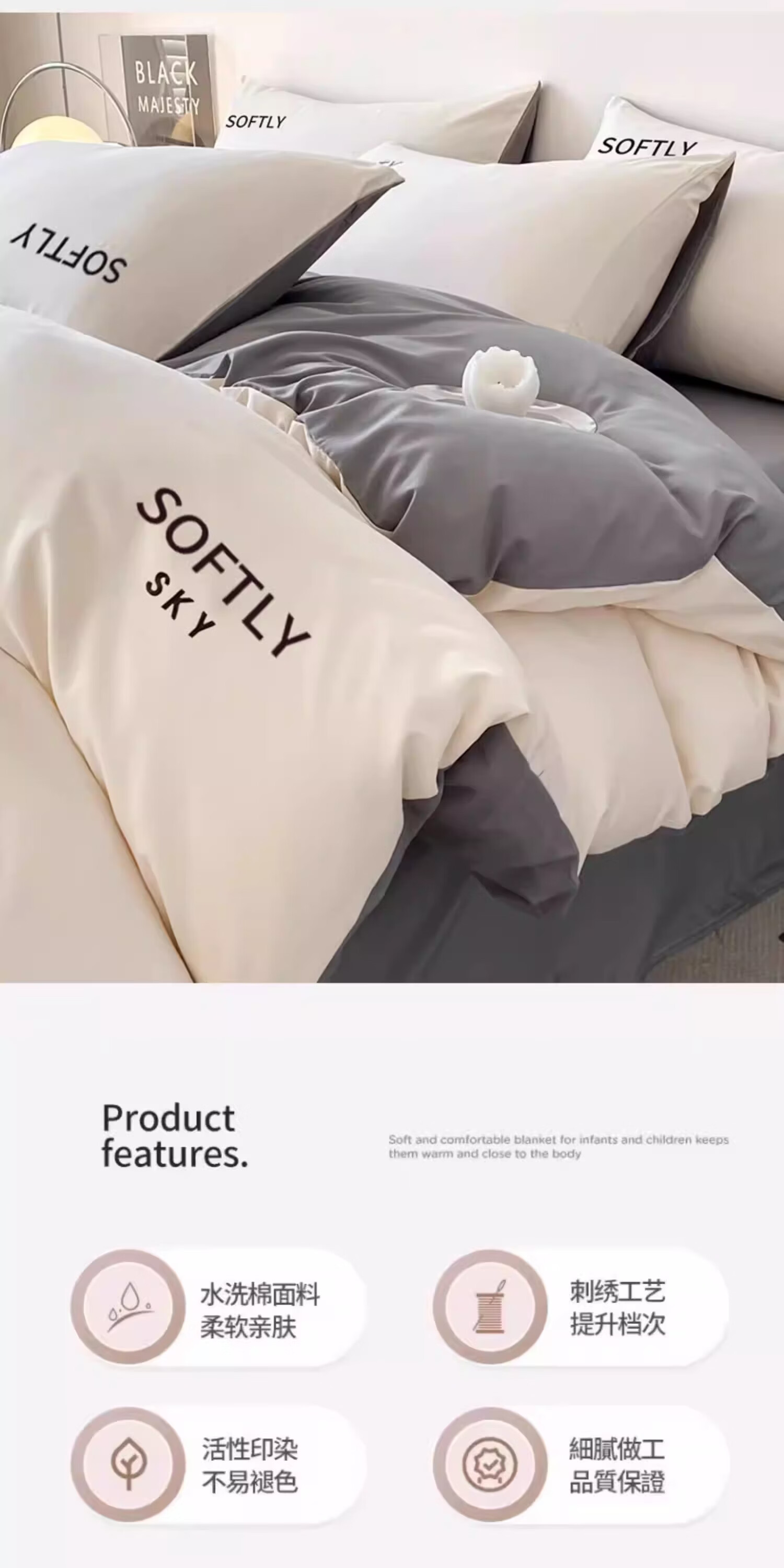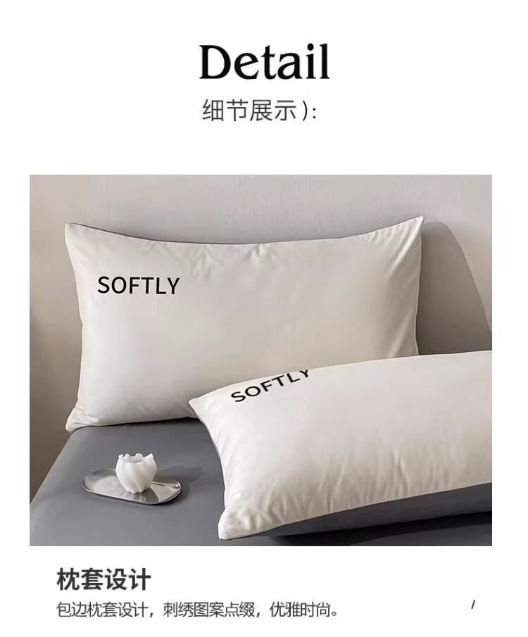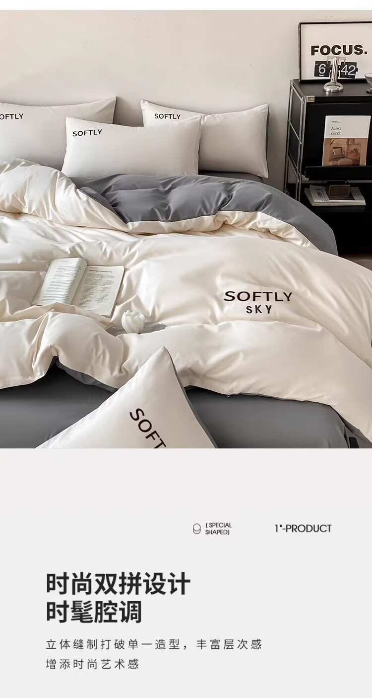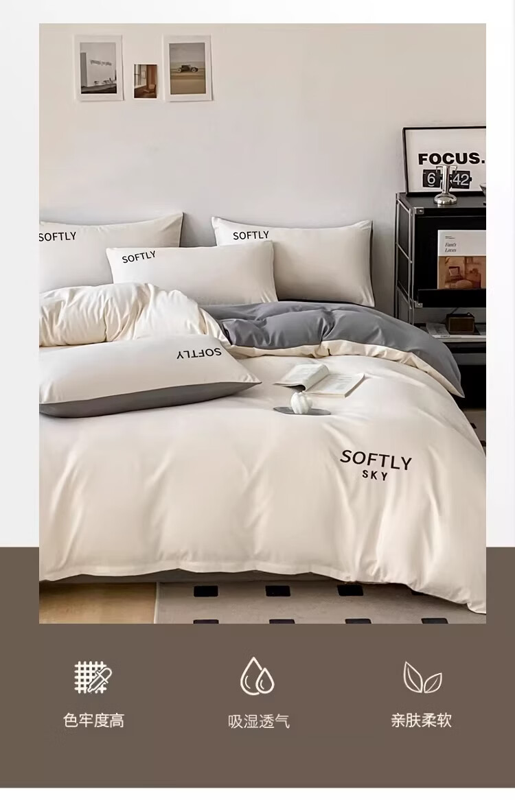 无印良品亲肤刺绣四件套床上用品宿舍家用床单被套单双人可裸睡被罩三件套 晴空-奶昔白 【细腻亲肤】 1.8m 床单款 四件套-被套200x230cm