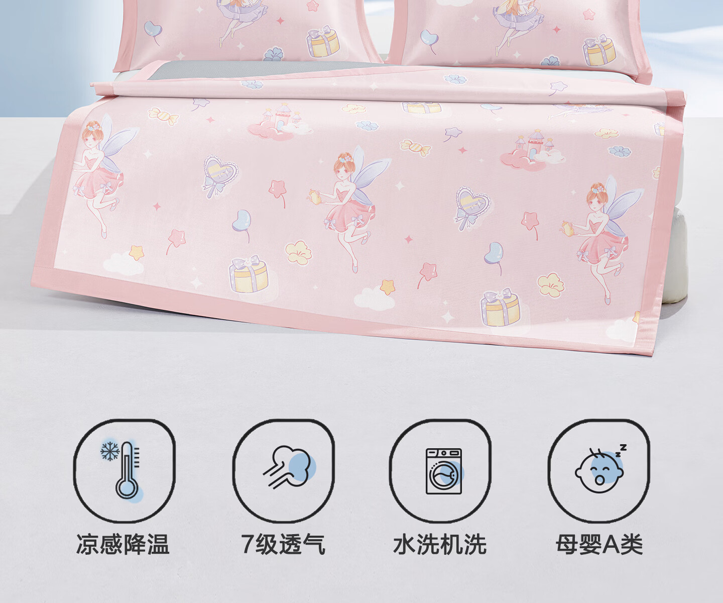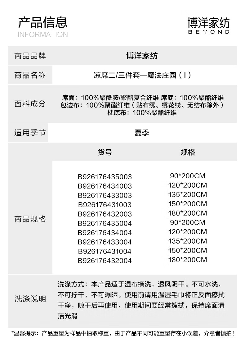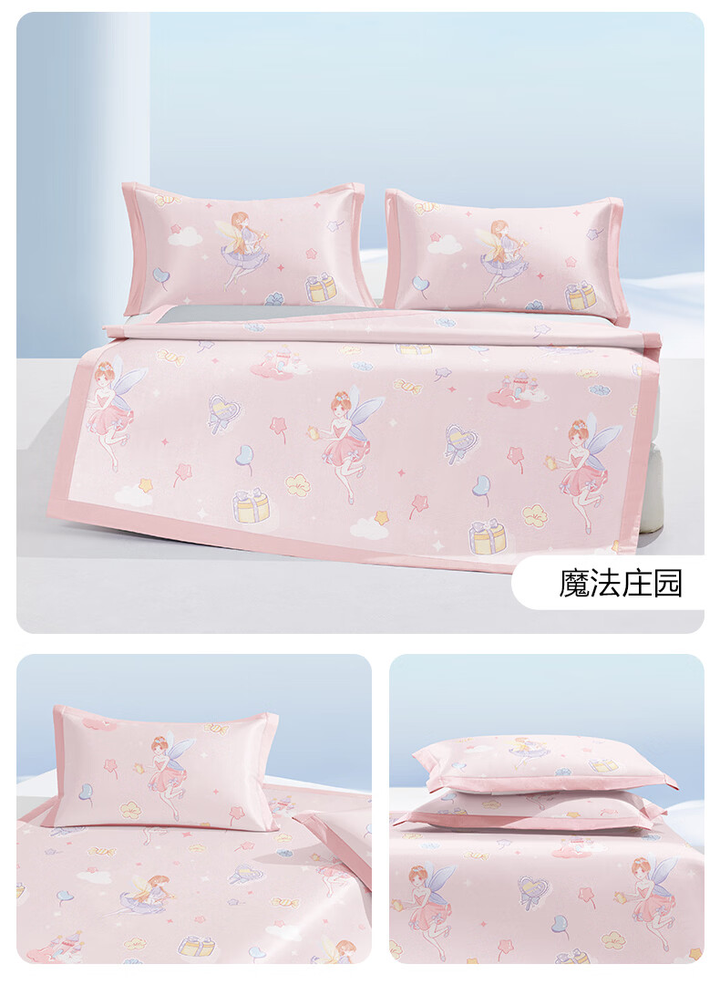 博洋宝贝(Beyond Kids)儿童凉感冰丝凉席夏季三件套可机洗卡通床笠款软席子学生席子套件 【2代原纱凉(床席款)】凉席套件-魔法庄园 90*200cm(二件套)