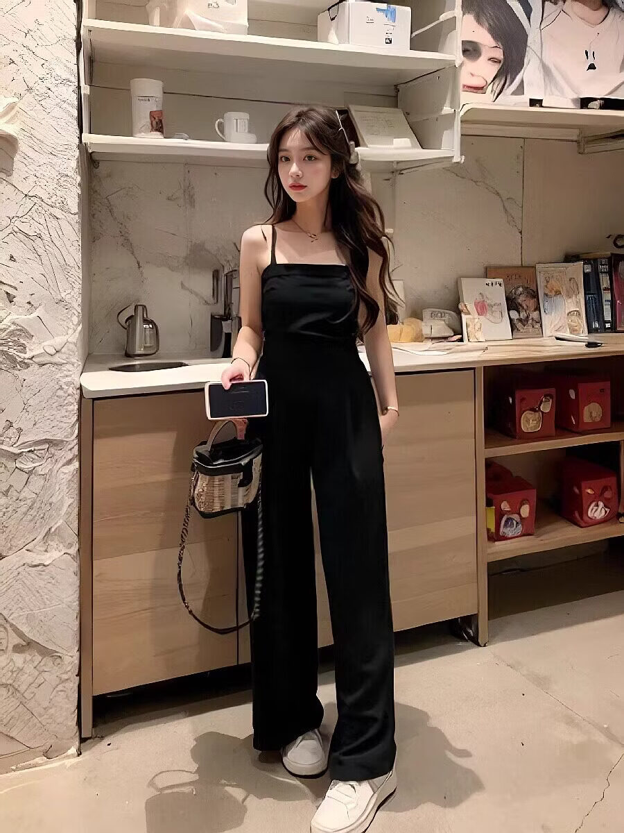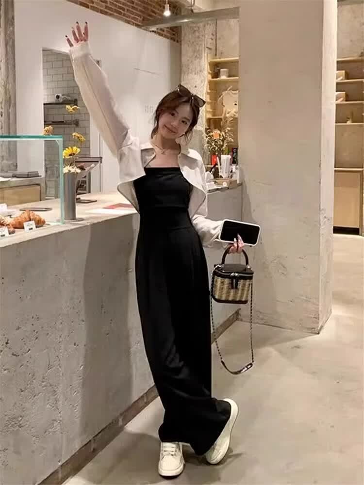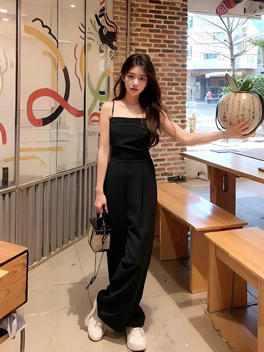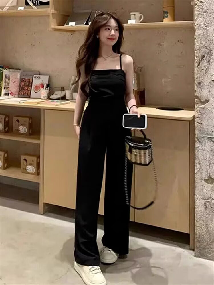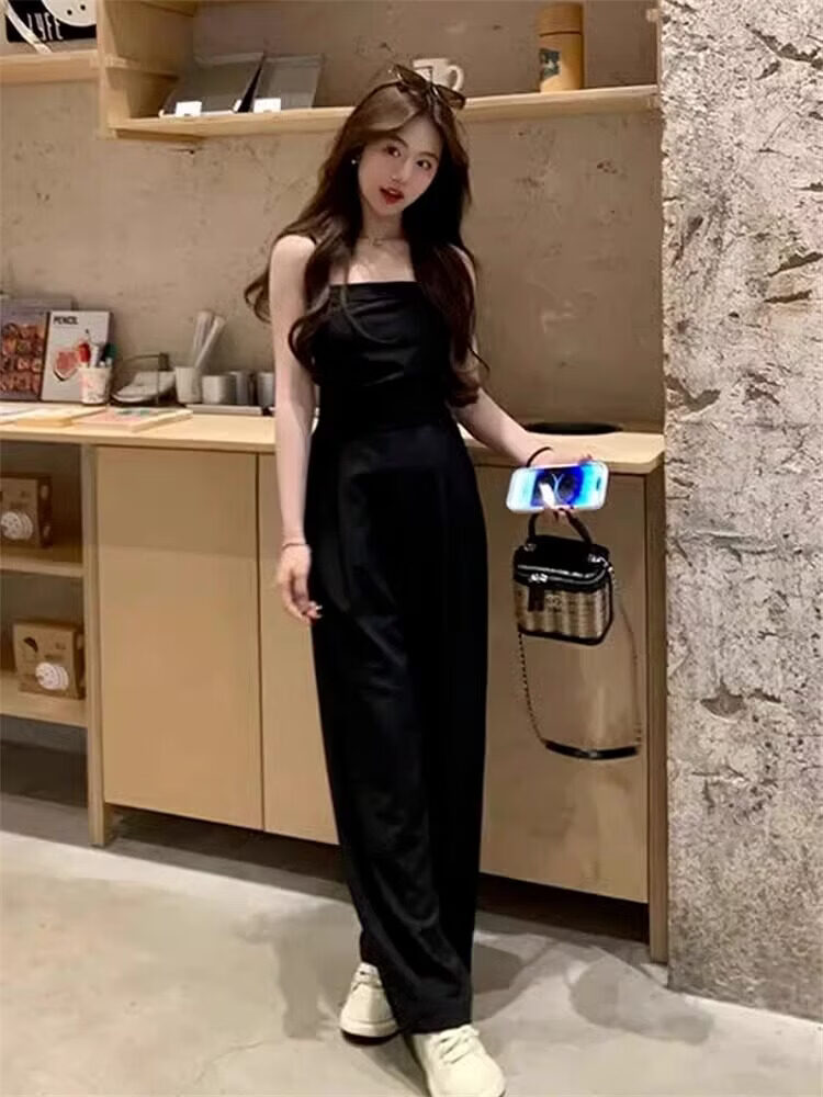 MODX法式吊带连身阔腿裤女夏季时尚气质连身裤子独特超好看连身裤套装 黑色版休闲裤女2024新款/短裤女2024新款/裤子女直筒垂 S