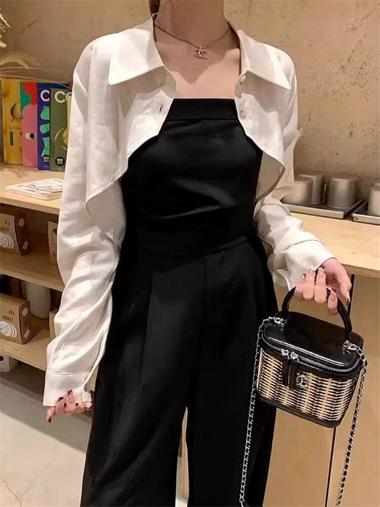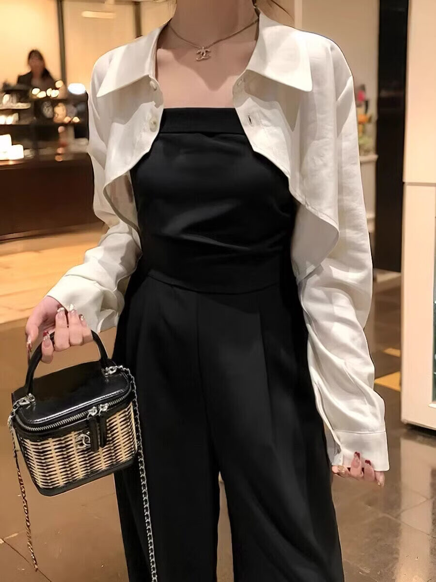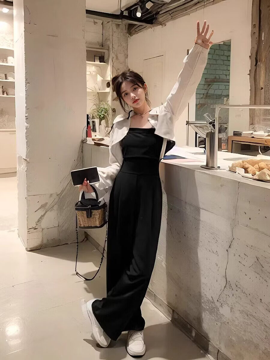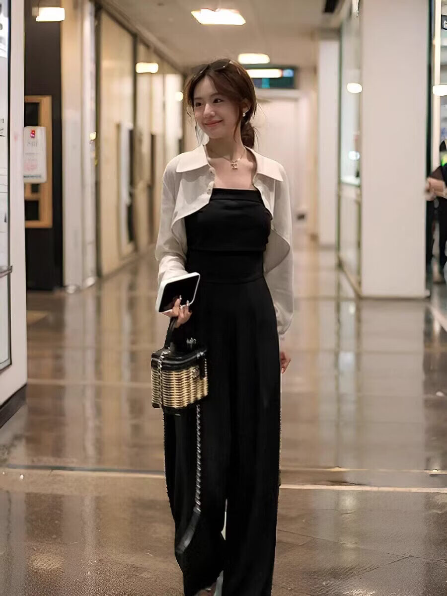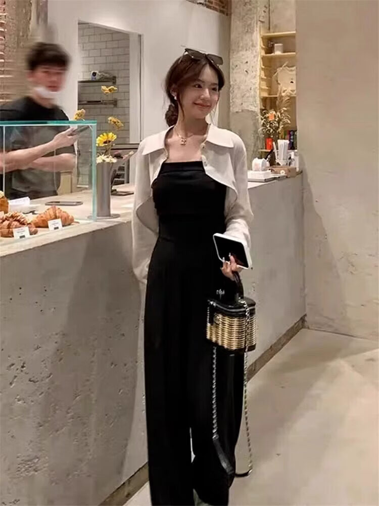 MODX法式吊带连身阔腿裤女夏季时尚气质连身裤子独特超好看连身裤套装 黑色版休闲裤女2024新款/短裤女2024新款/裤子女直筒垂 S