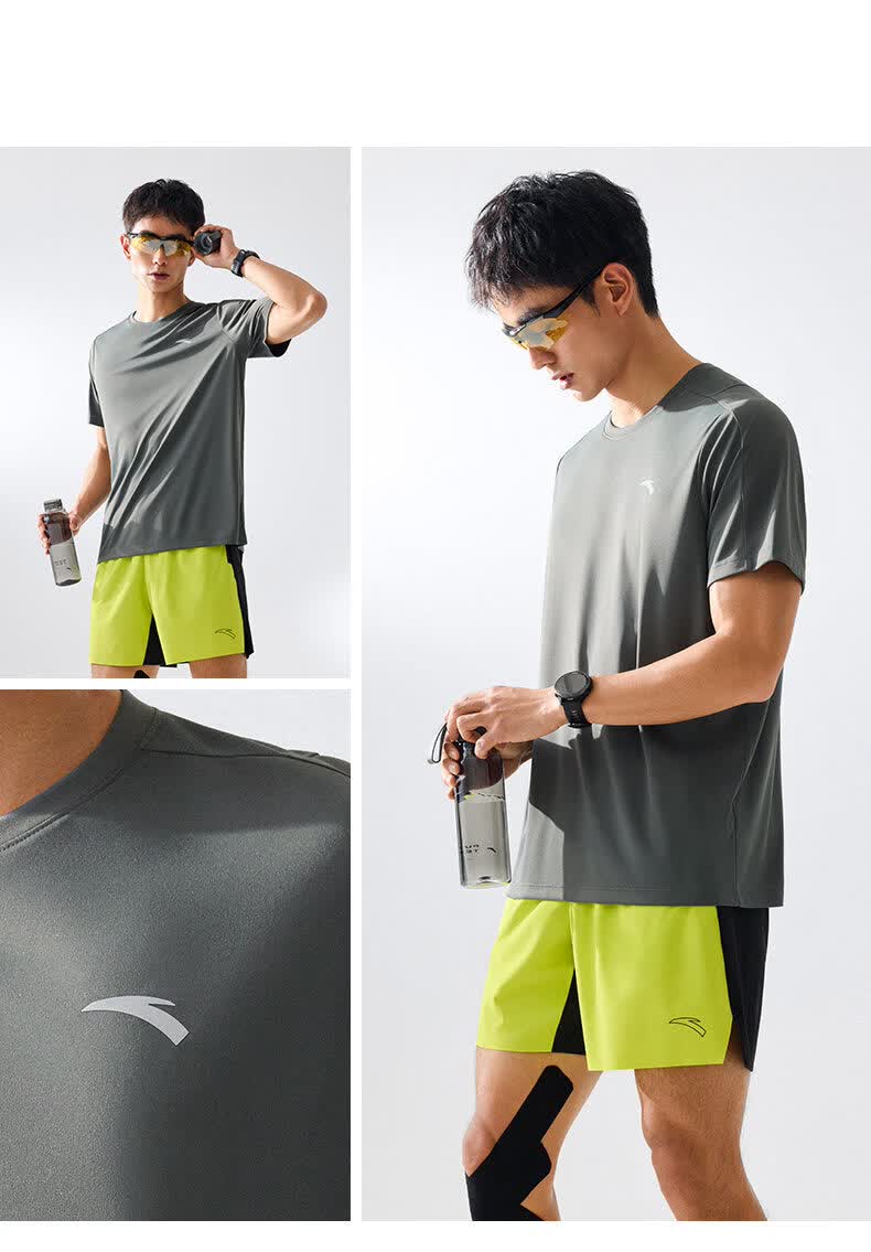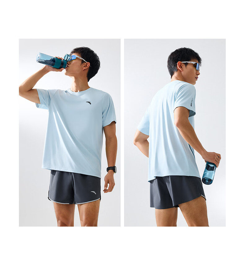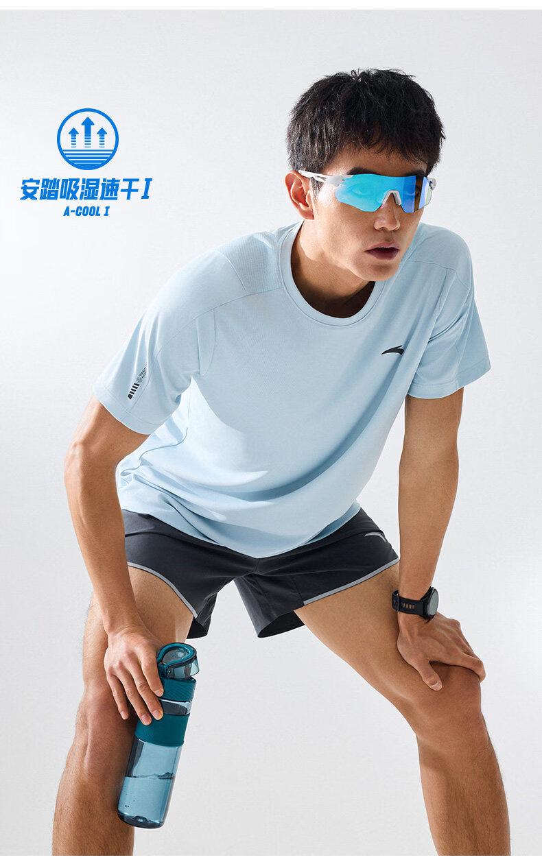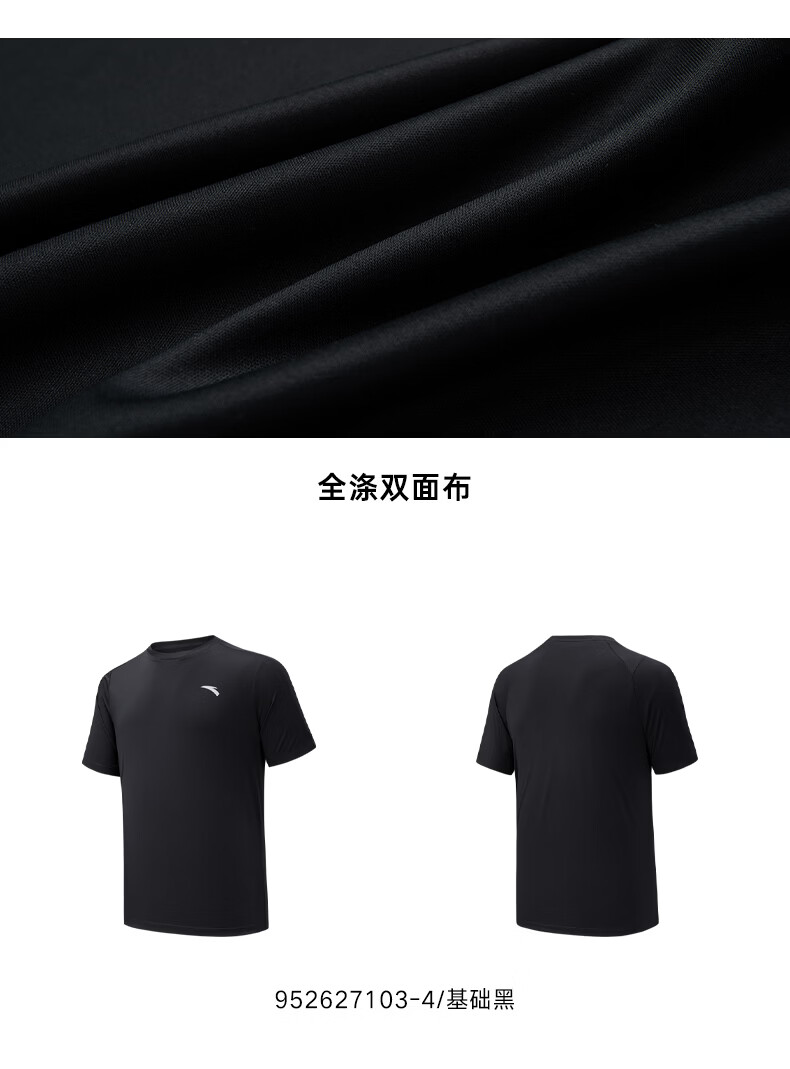 安踏(ANTA)零压速干T丨短袖T恤男夏季冰丝凉感短T男士吸湿透气跑步健身上衣 【升级速干科技+轻肤柔软】基础黑7103-4 L 175(推荐120-140斤)