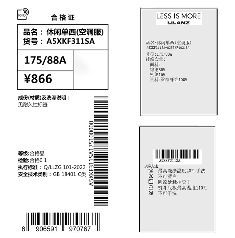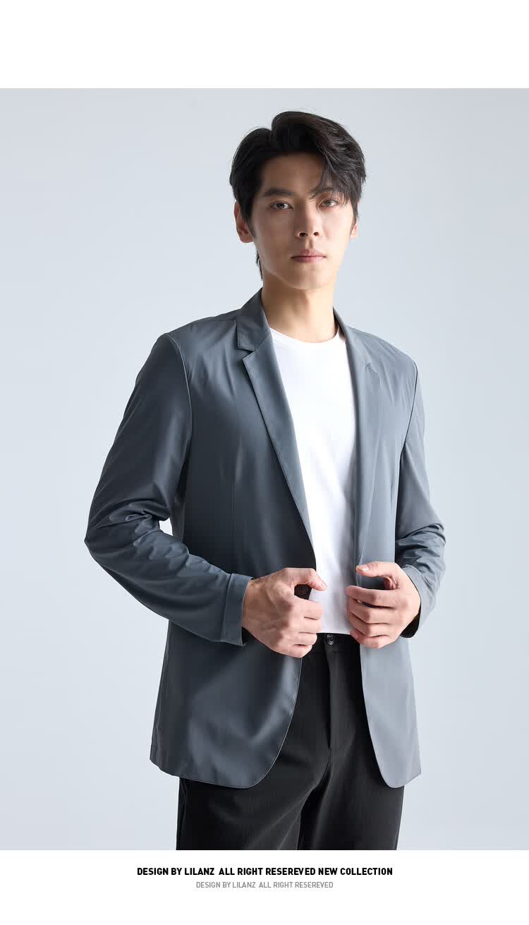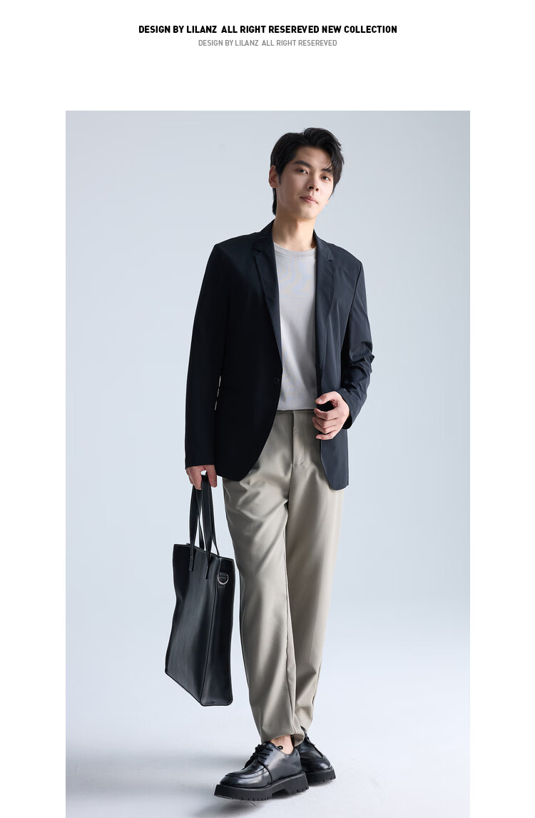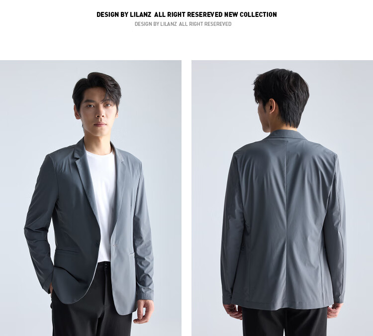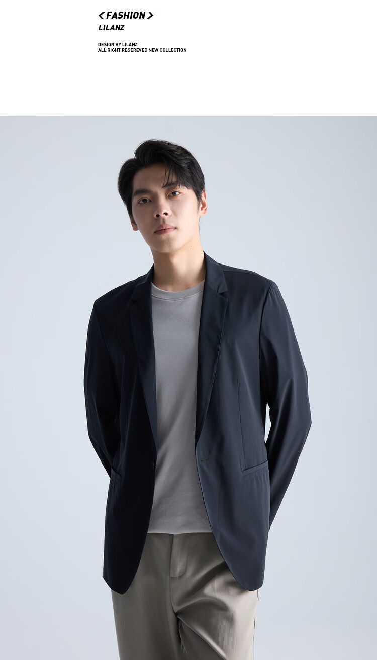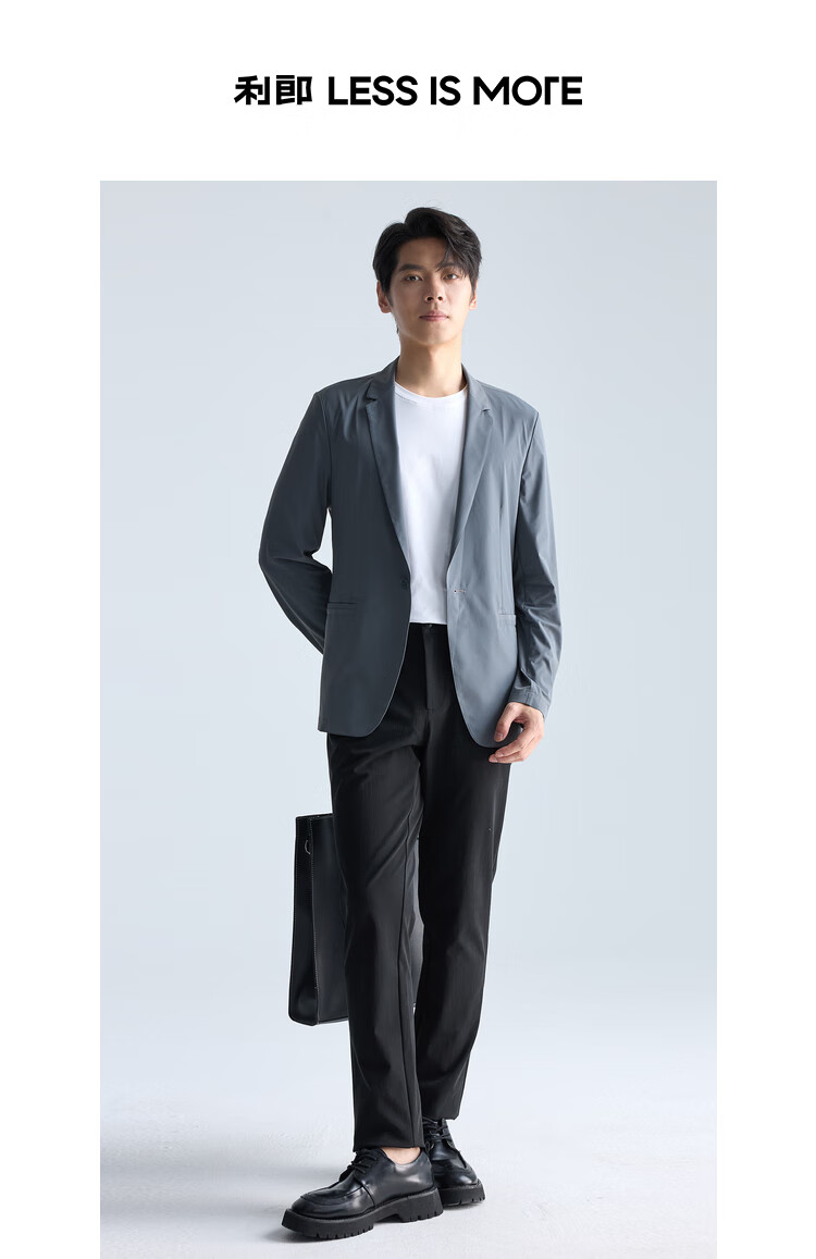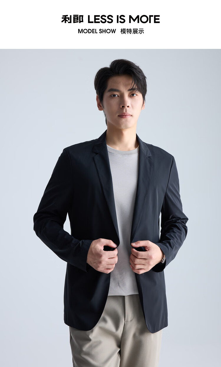 利郎【高弹易打理】西服男士轻薄耐磨舒适顺滑西装外套黑色175A