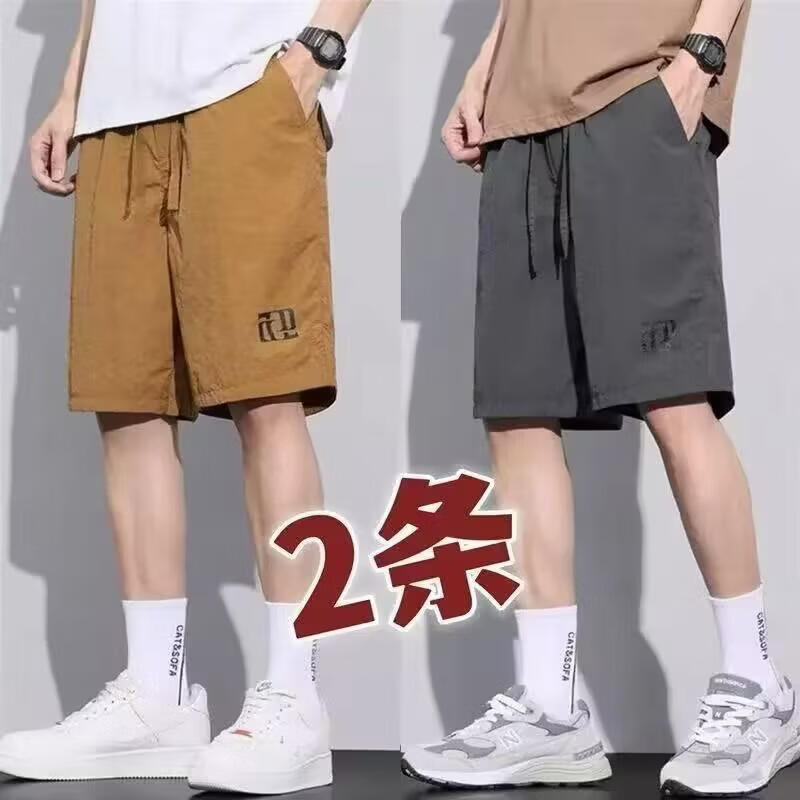 布卡澜琦工装短裤男士夏季冰丝运动外穿薄款速干休闲五分裤中裤短裤男裤夏 K129【卡其+深灰】2条装 M (建议80-95斤)
