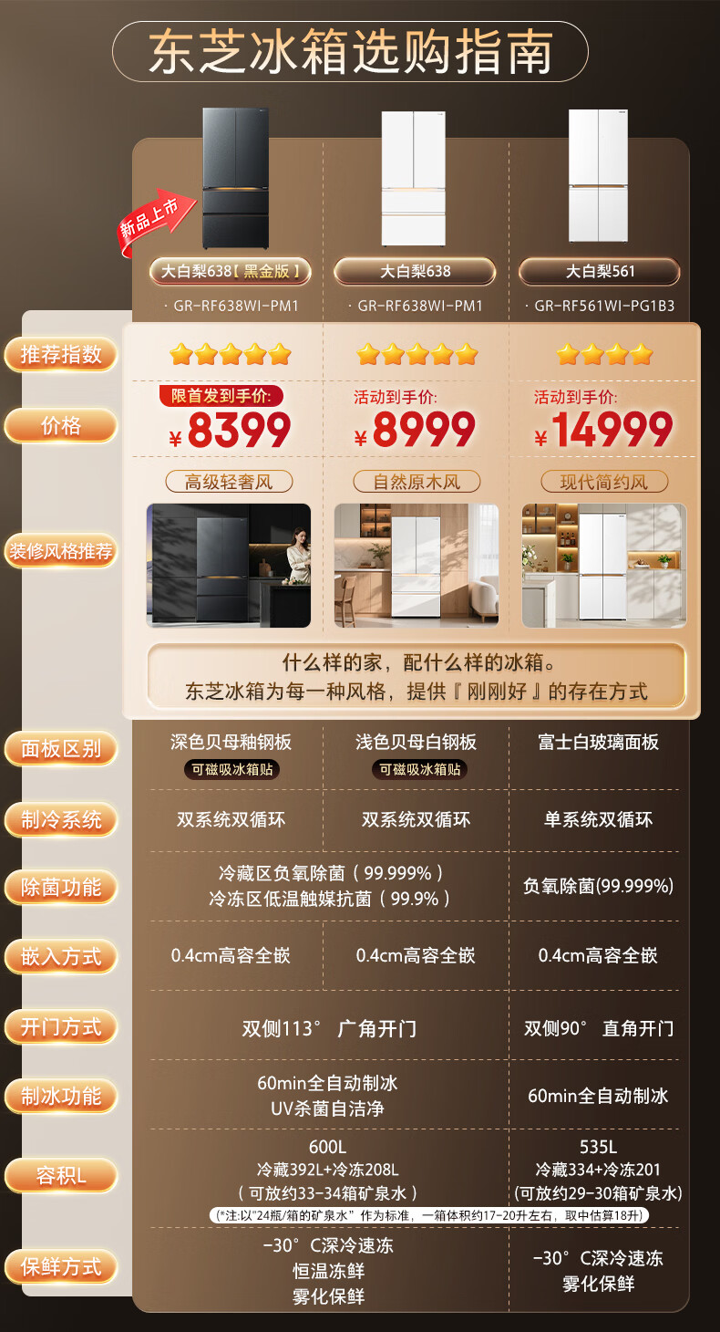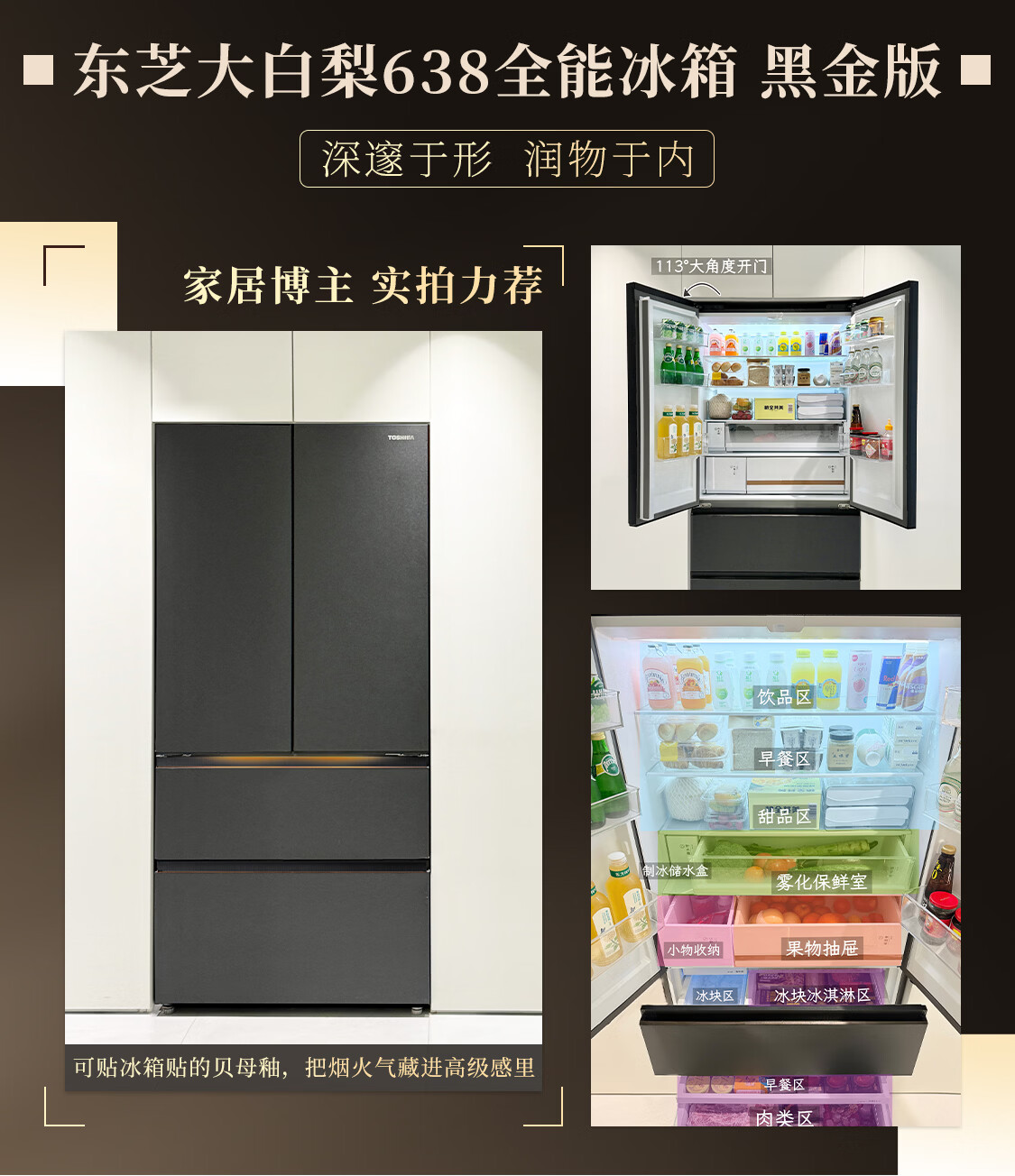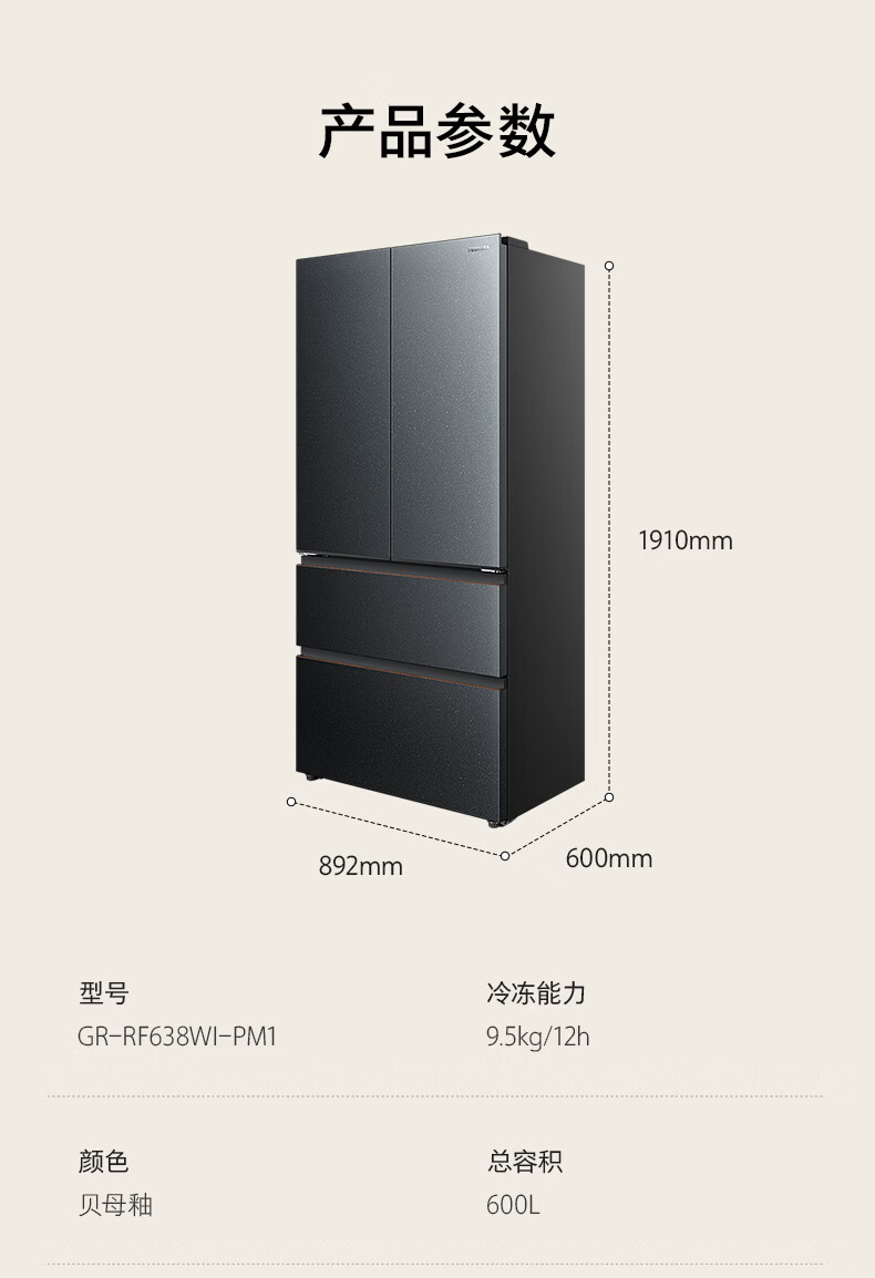 东芝(TOSHIBA)大白梨黑金版600L法式多门冰箱638双系统制冰超薄零嵌入超大容量家用变频GR-RF638WI-PM1换新补贴