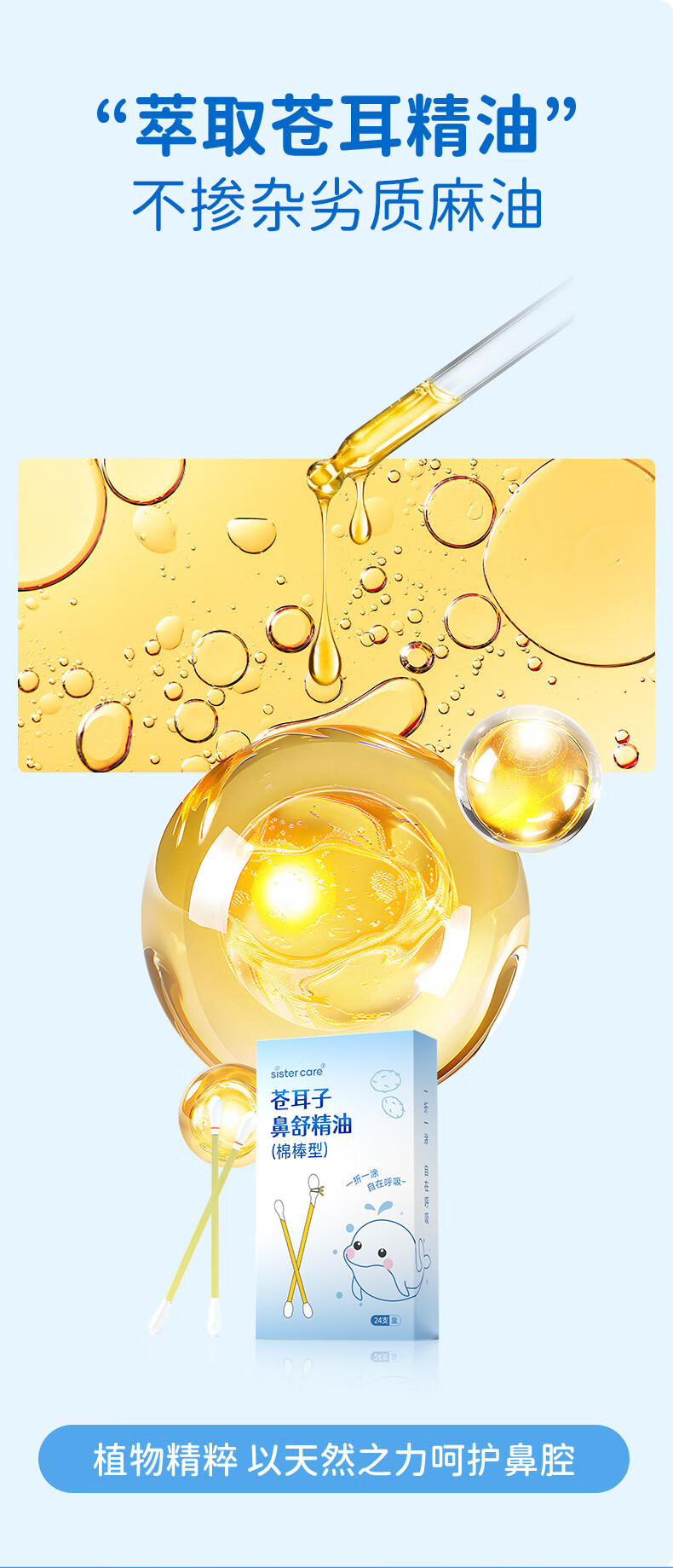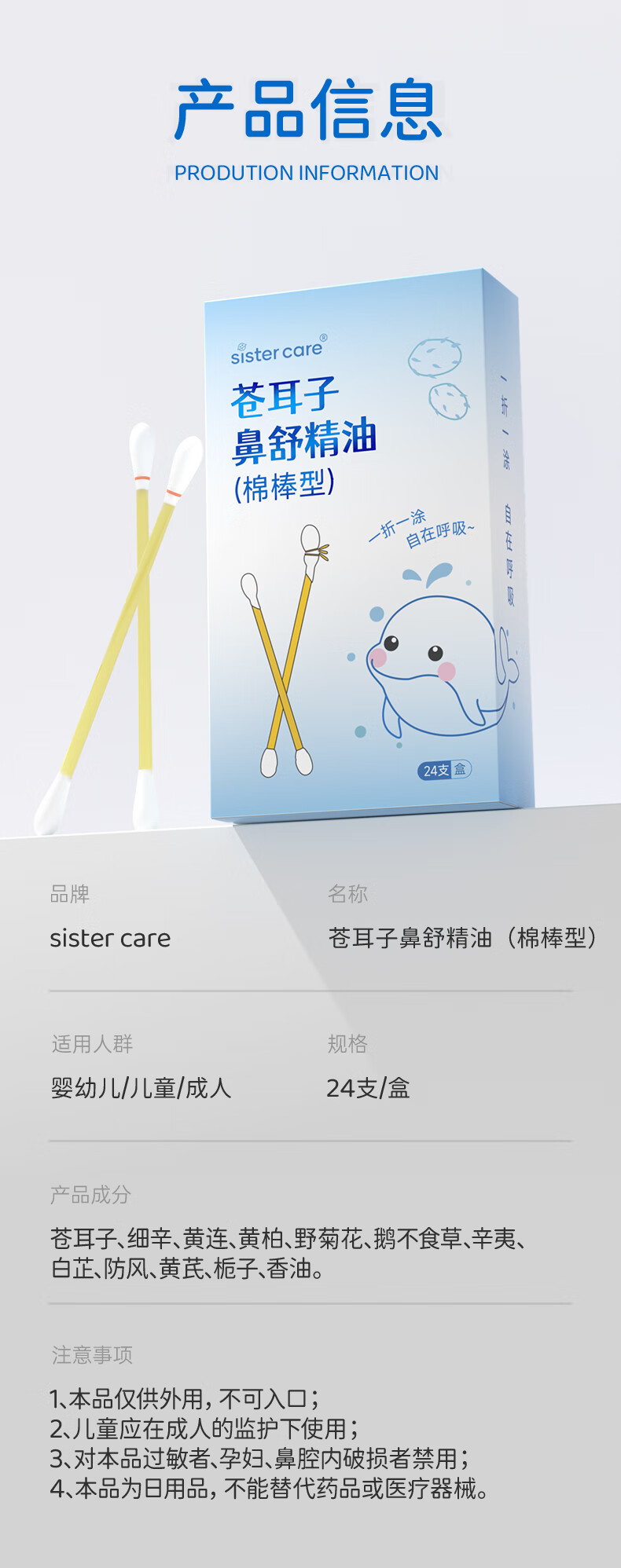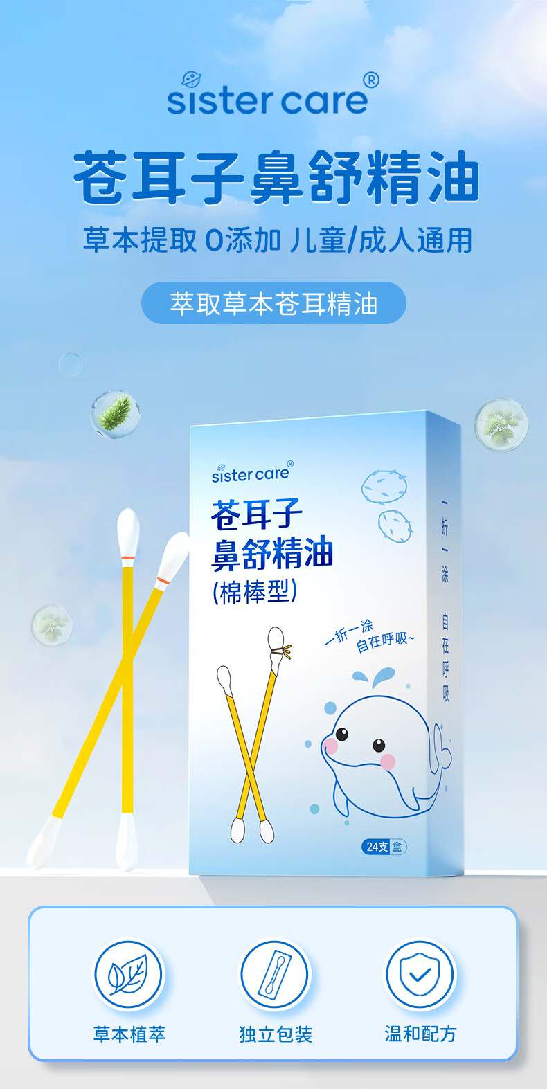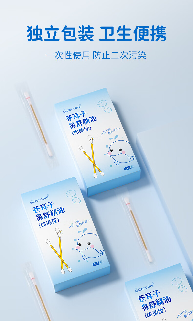 sister care苍耳子鼻炎油鼻舒精油棉棒24支儿童成人鼻干痒鼻窦炎鼻塞通鼻棉签