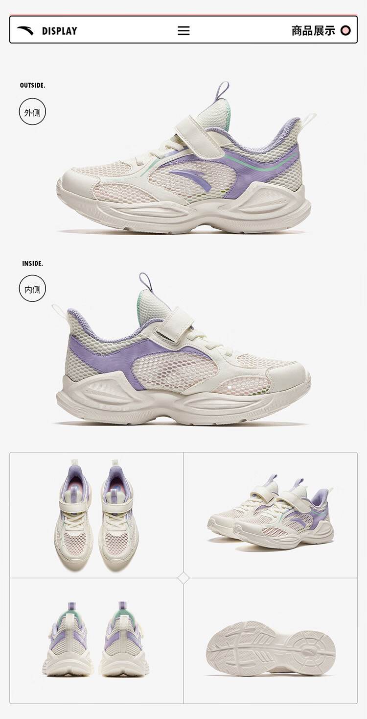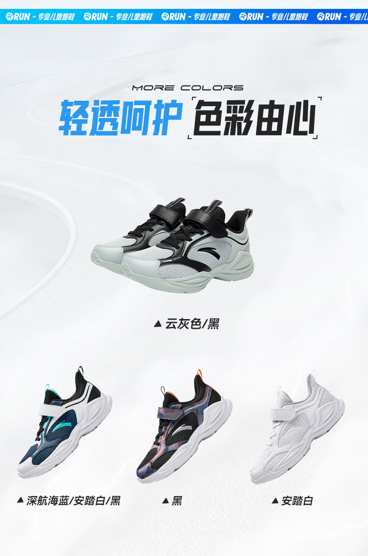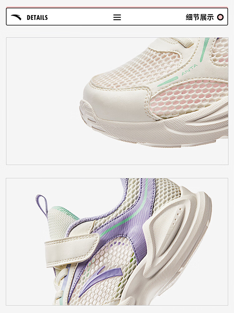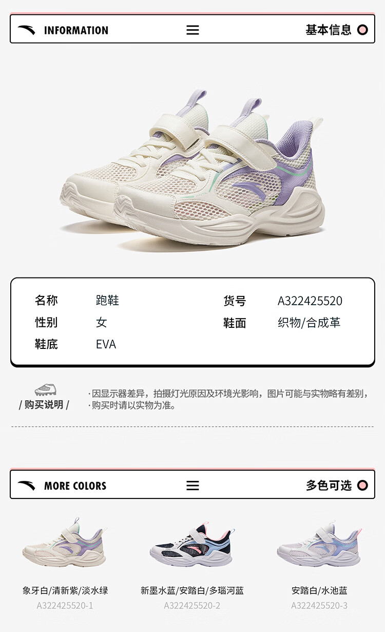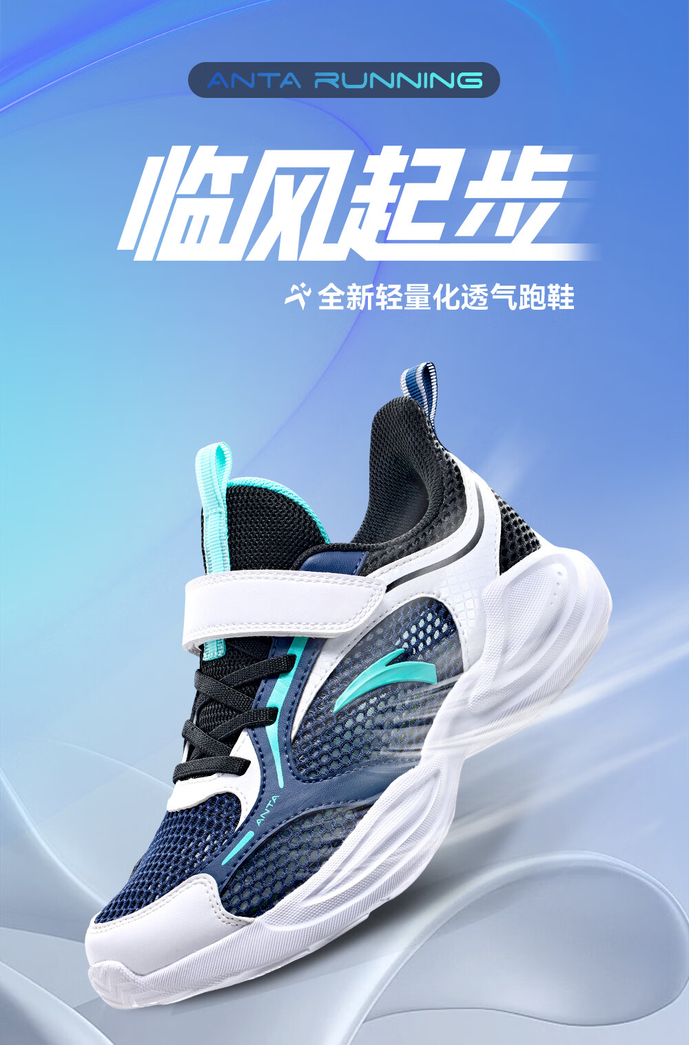 安踏儿童运动鞋女童鞋子2026女大童临风密网透气跑步鞋A22615556