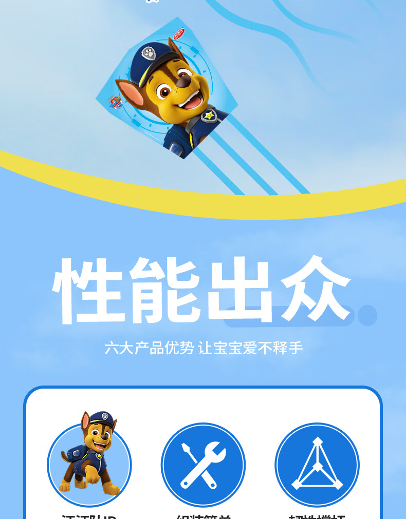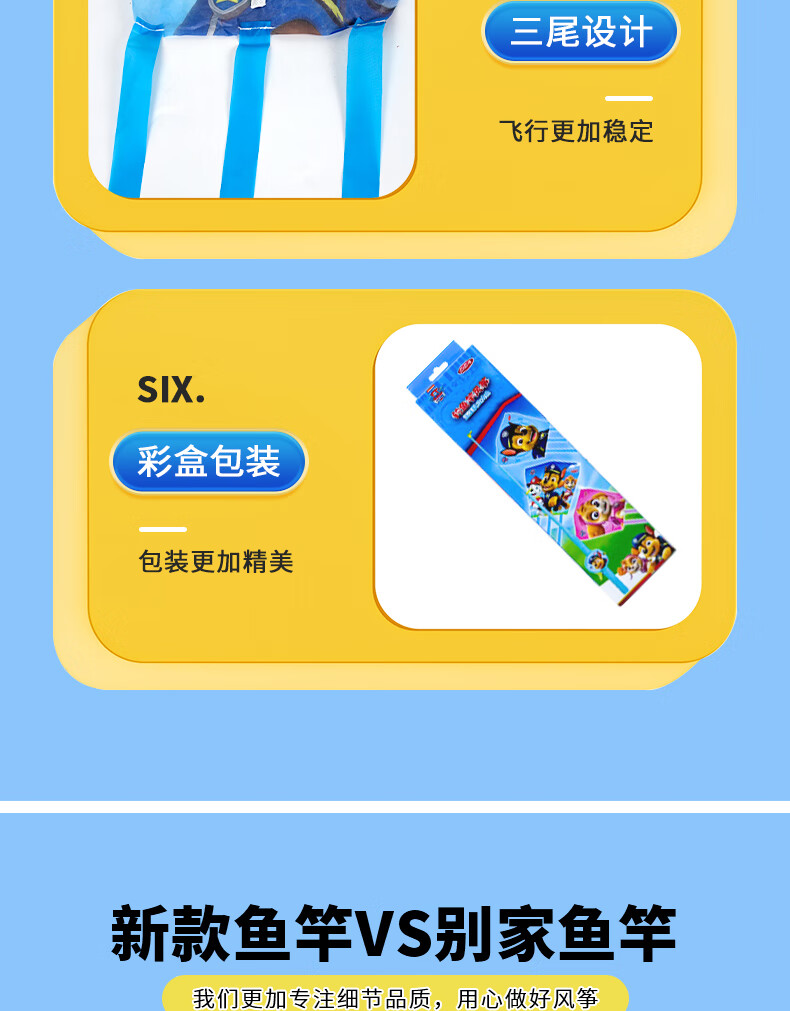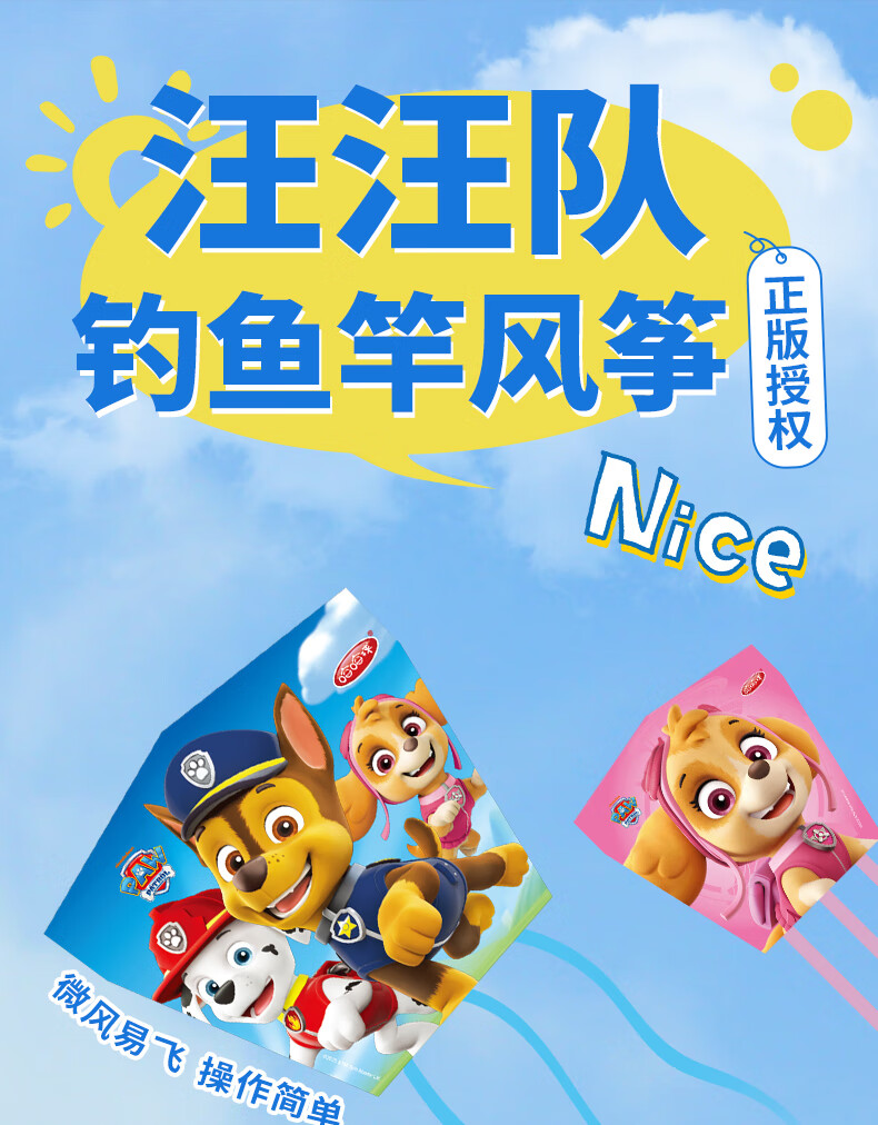 哈哈球汪汪队儿童钓鱼竿风筝手持亲子户外运动玩具微风易飞生日开学礼物