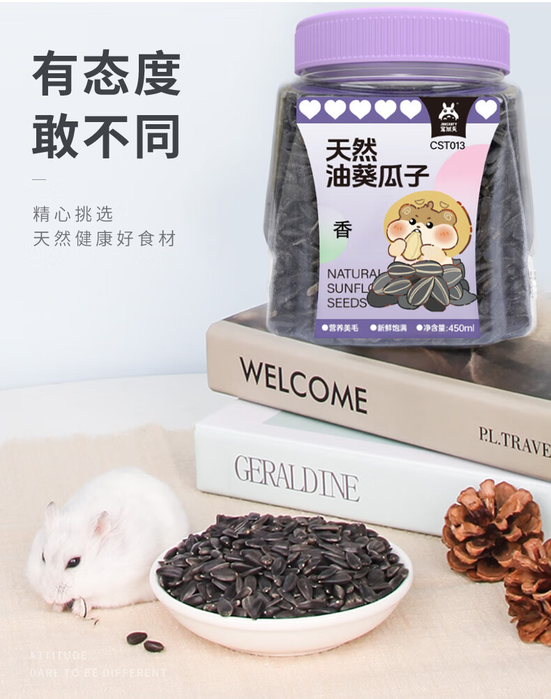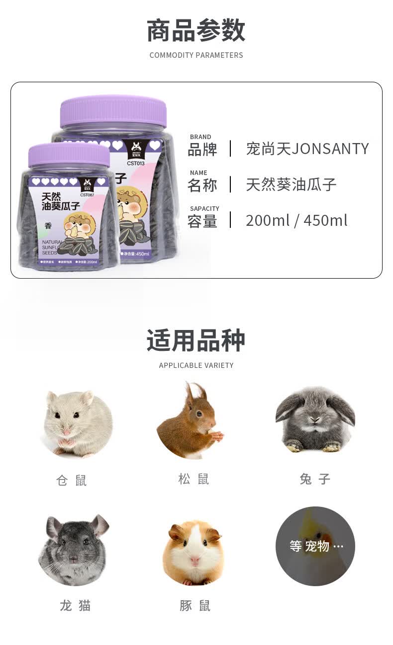 宠尚天 仓鼠零食天然油葵瓜子磨牙营养鹦鹉非饲料虎皮鹦鹉零食180g