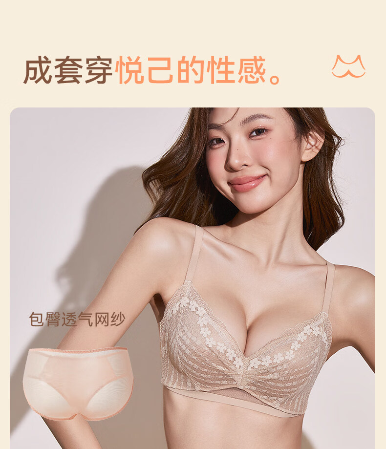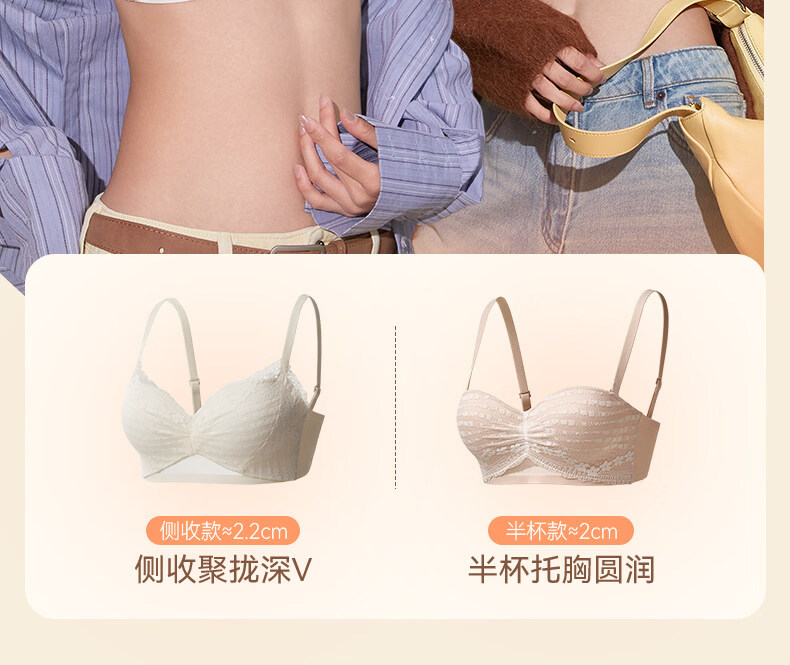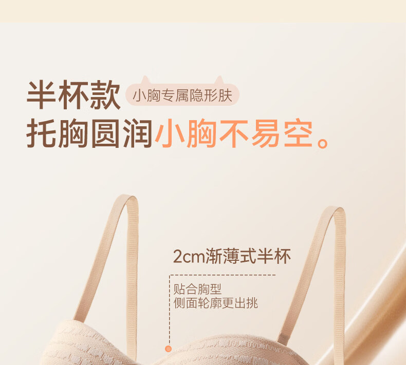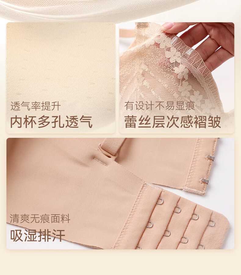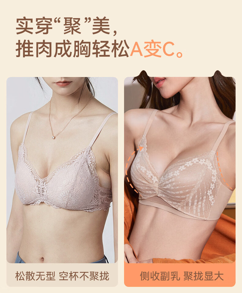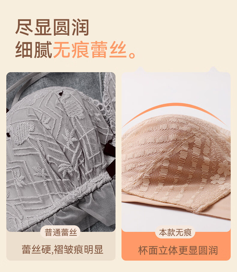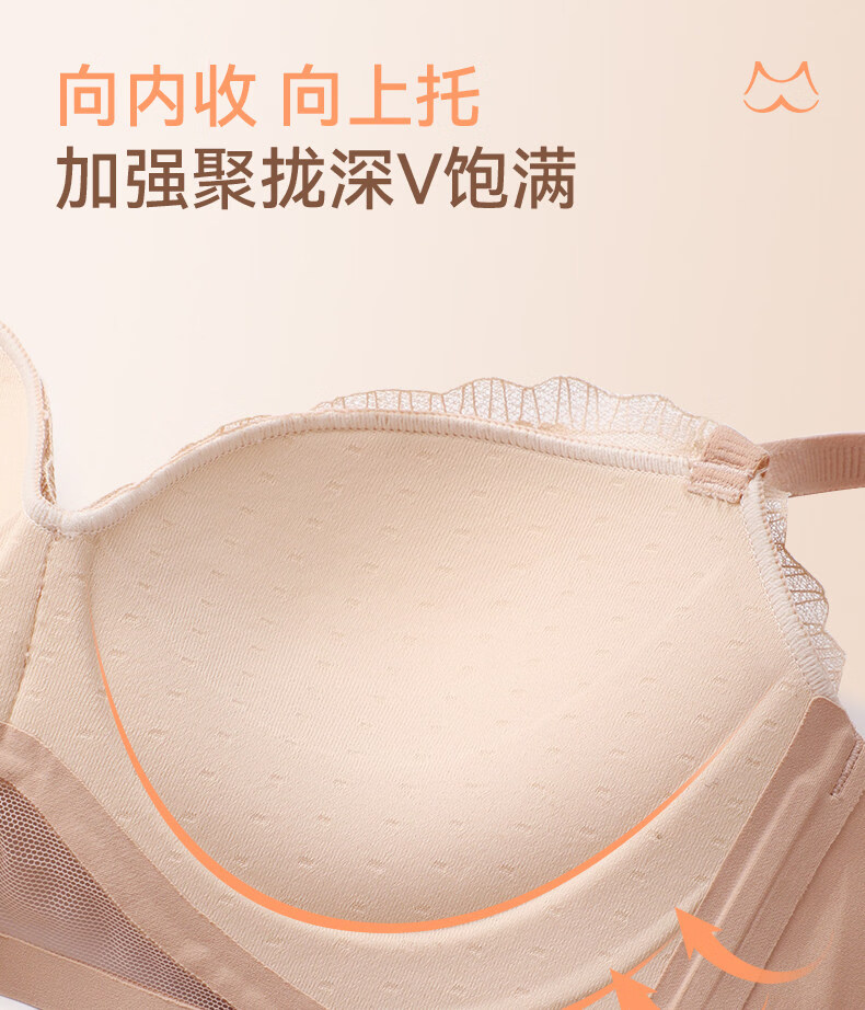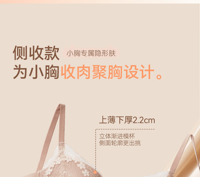 多情猫粉底液内衣女士小胸聚拢收副乳防下垂性感蕾丝薄款文胸罩套装新款 【侧收款】粉底肤单件 【聚拢饱满2.2cm】 70B (建议32/70AB、90斤内)
