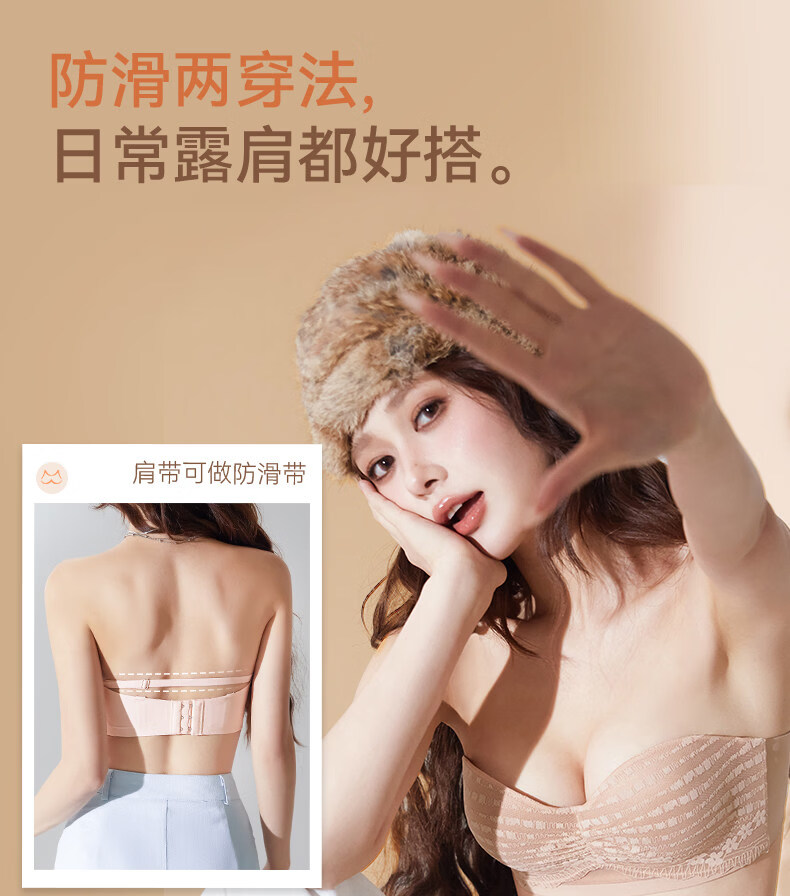 GEEZORO无钢圈美背文胸内衣女上托百搭薄款一片式性感小胸聚拢少女裹胸罩 肤色 L 101-115斤