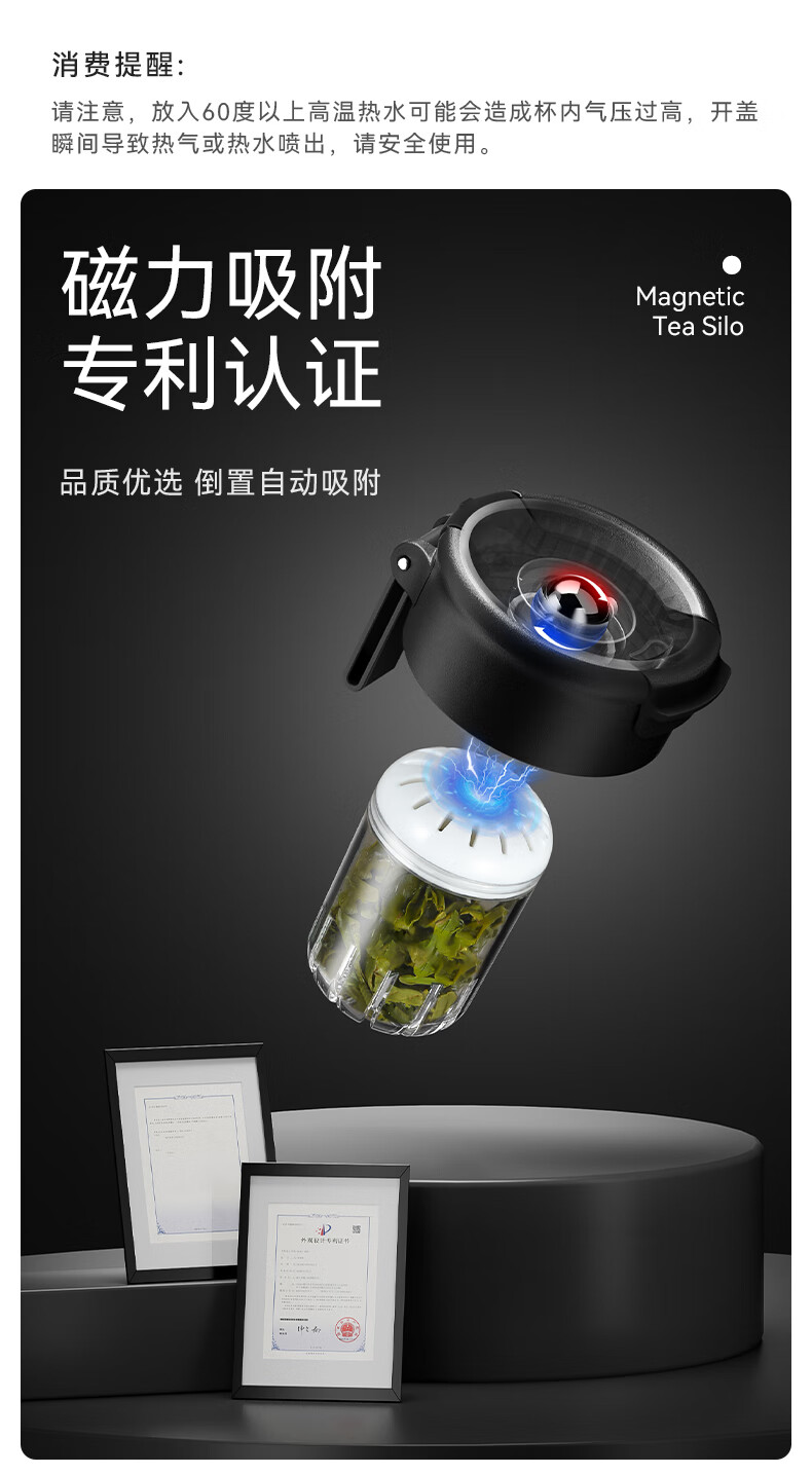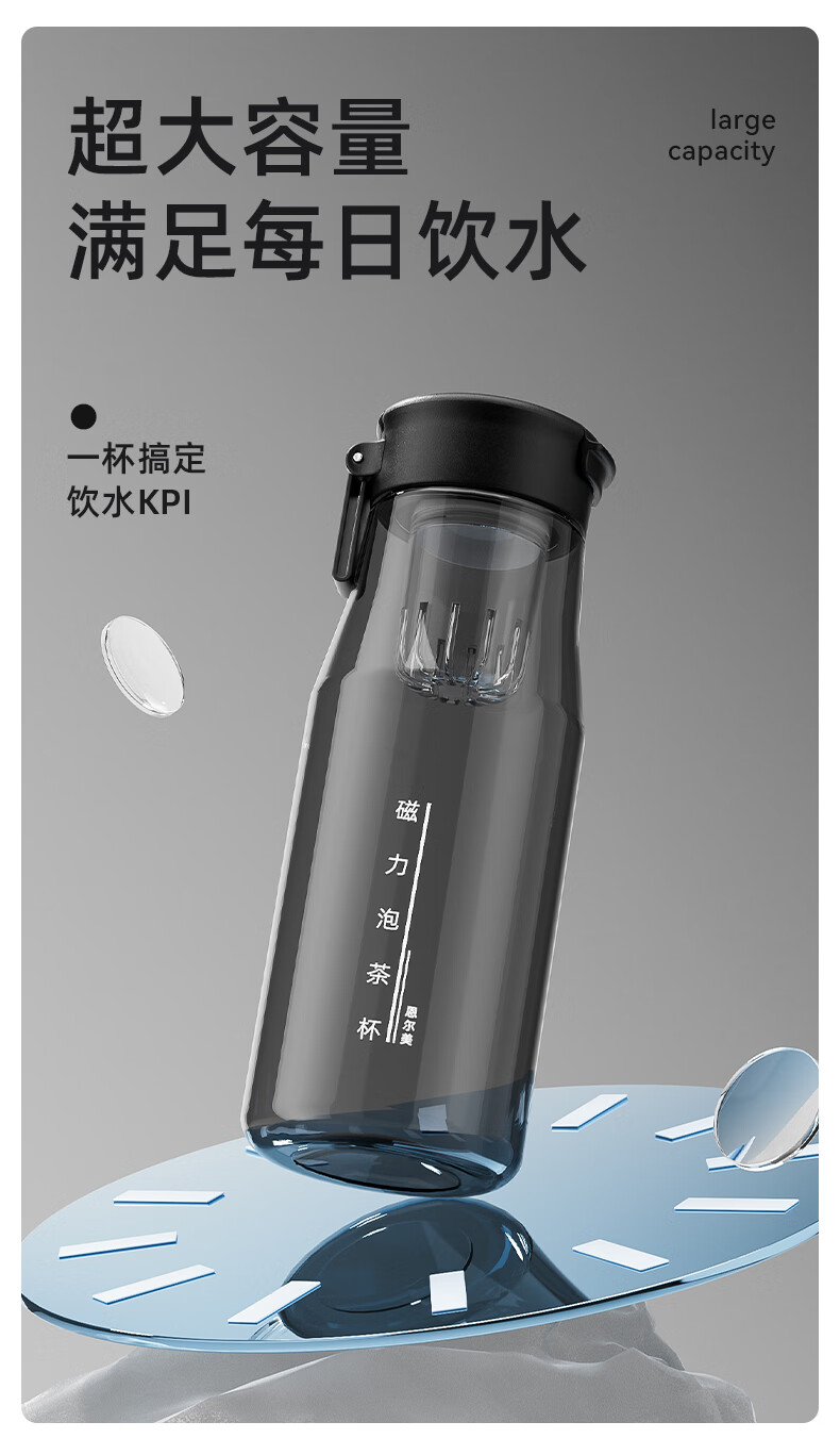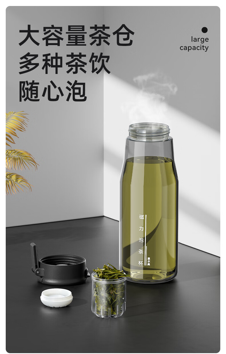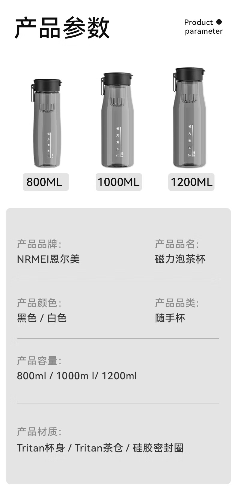 恩尔美(nRMEi)磁弹泡茶杯大容量茶水分离杯男士便携防摔运动水杯磁吸泡茶杯子 【进口TRITAN+杯刷】黑色800ml