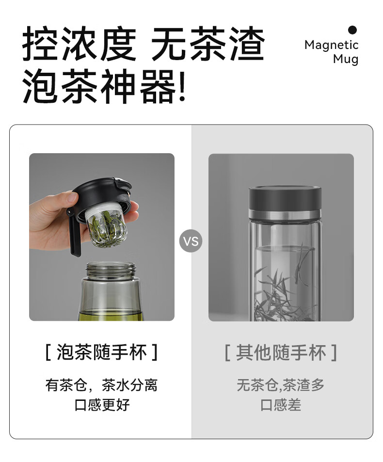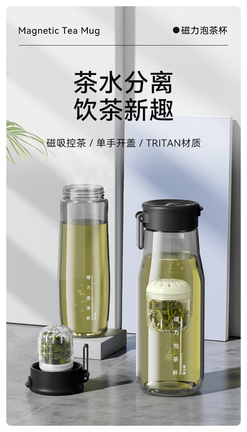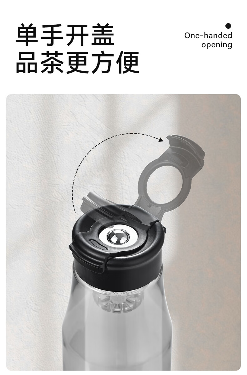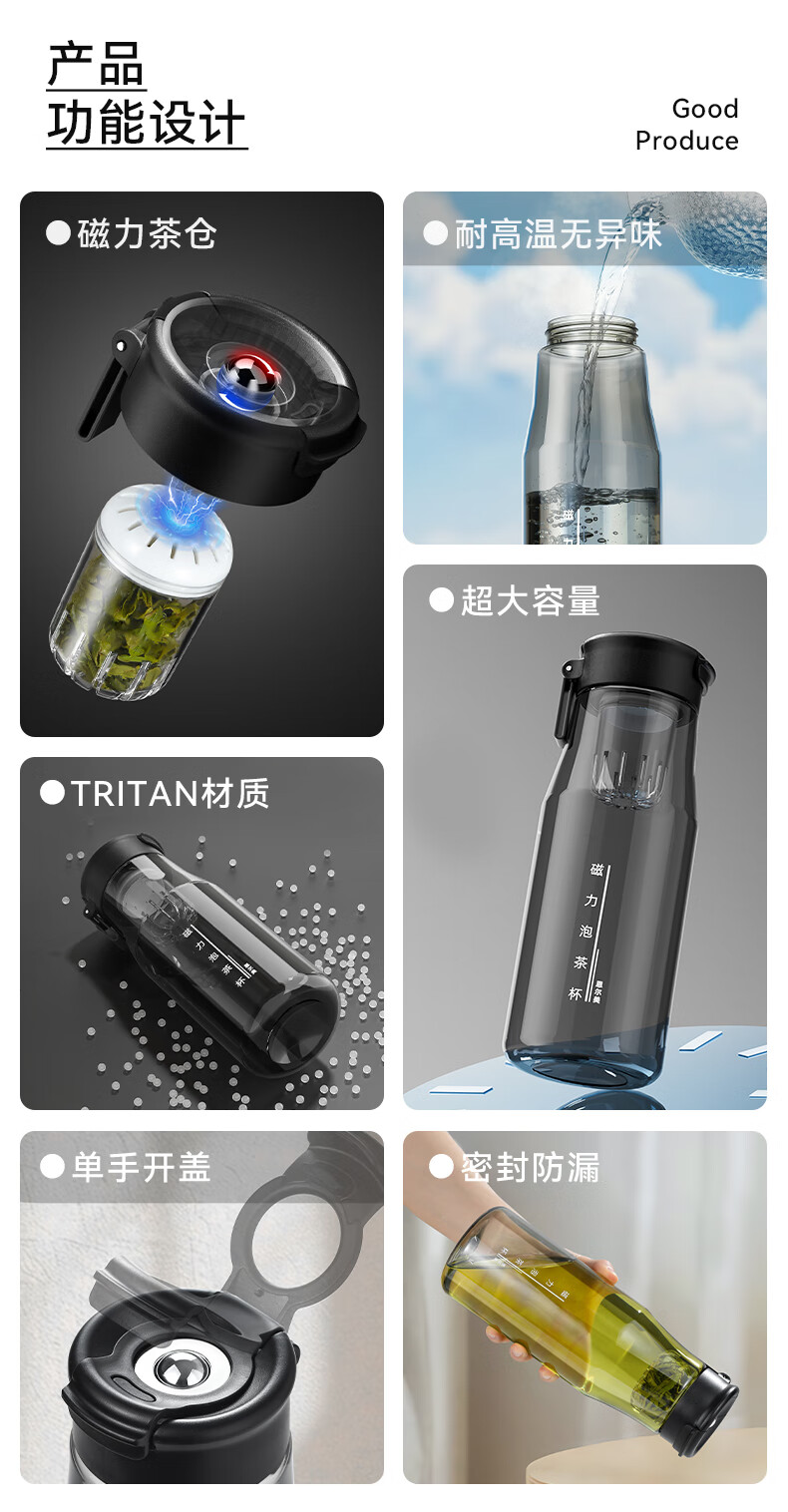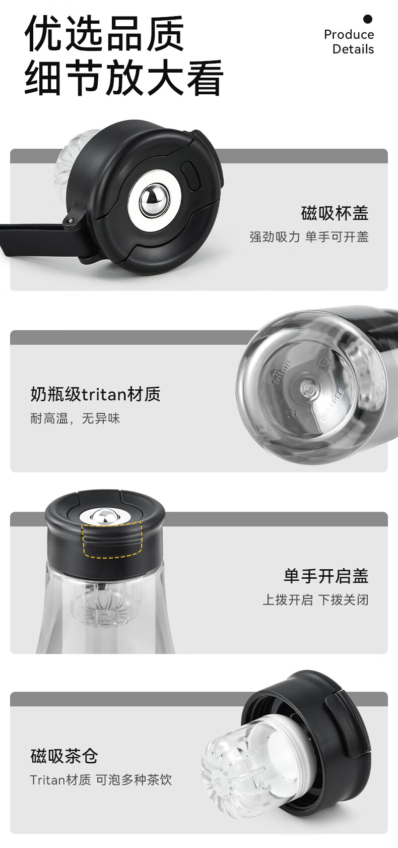 恩尔美(nRMEi)磁弹泡茶杯大容量茶水分离杯男士便携防摔运动水杯磁吸泡茶杯子 【进口TRITAN+杯刷】黑色800ml