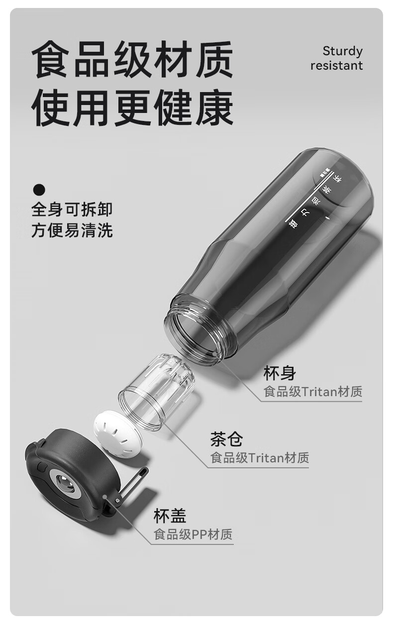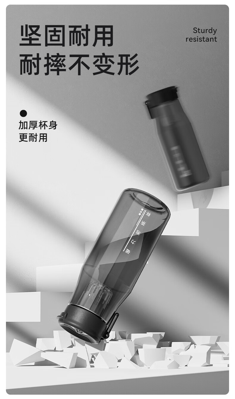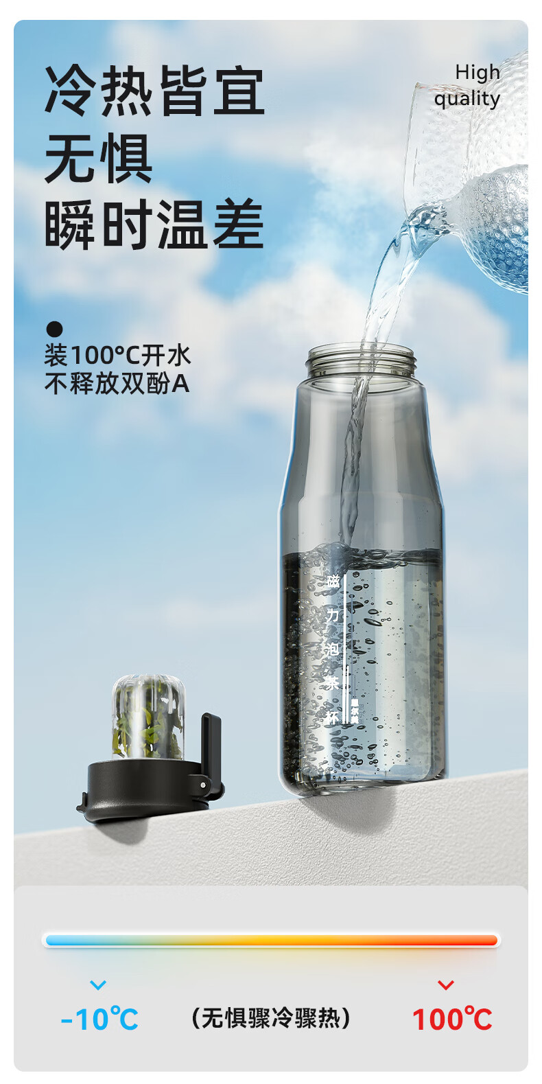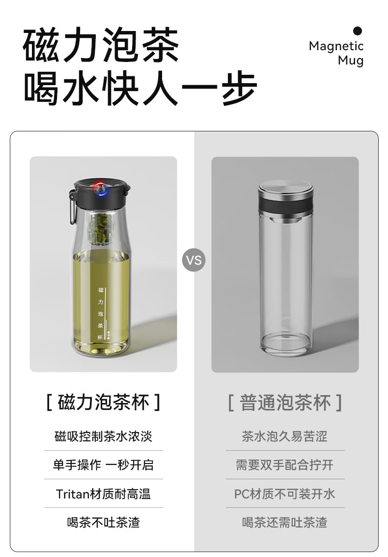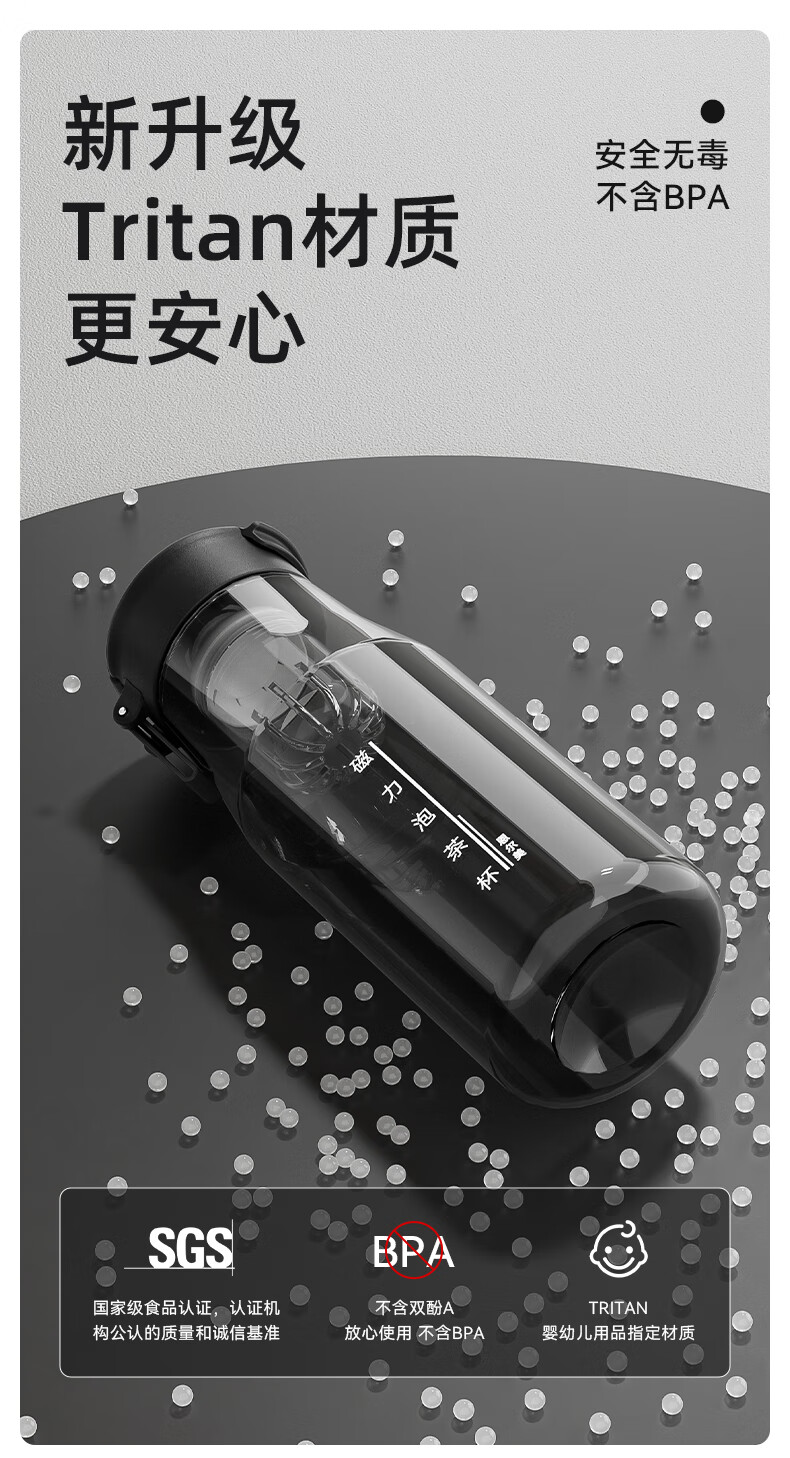 恩尔美(nRMEi)磁弹泡茶杯大容量茶水分离杯男士便携防摔运动水杯磁吸泡茶杯子 【进口TRITAN+杯刷】黑色800ml