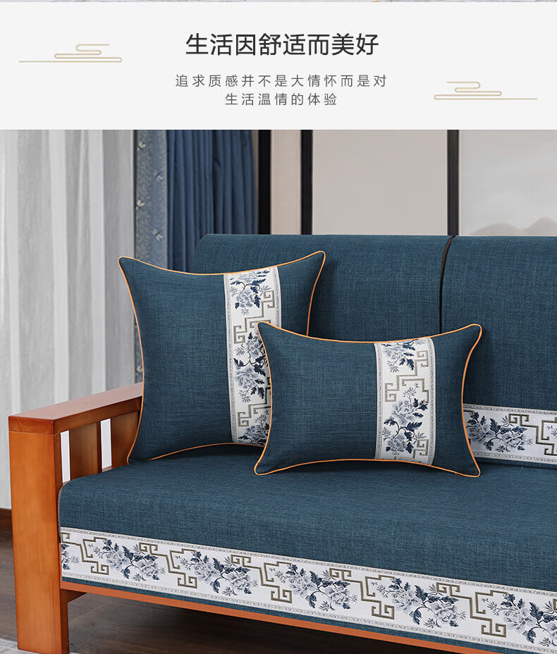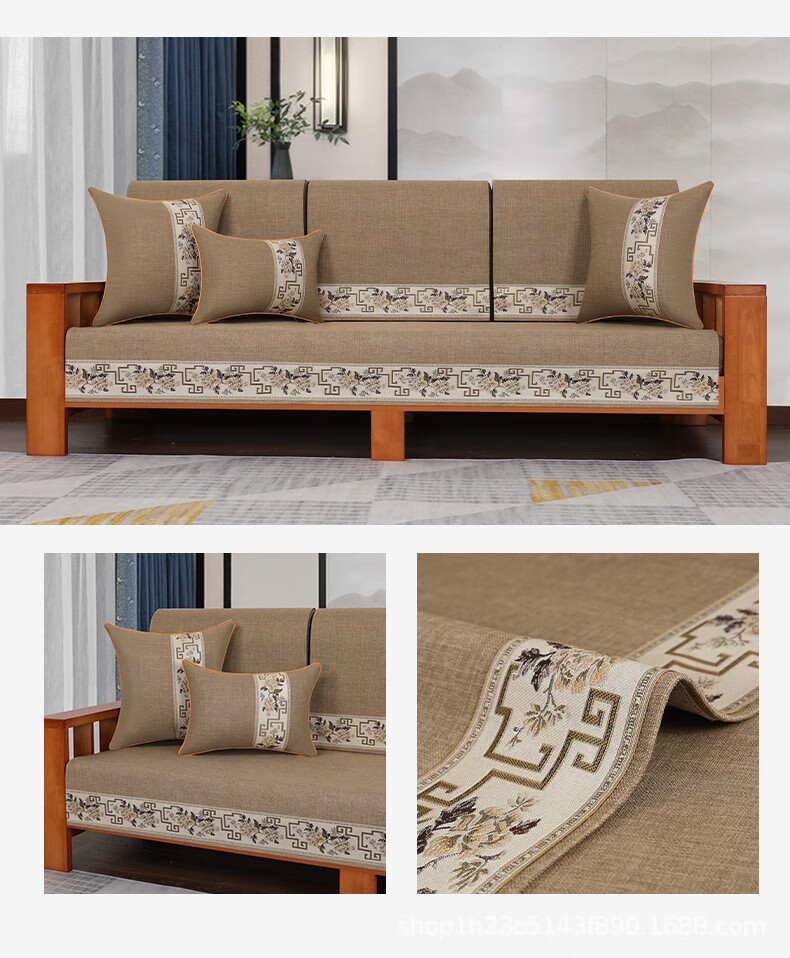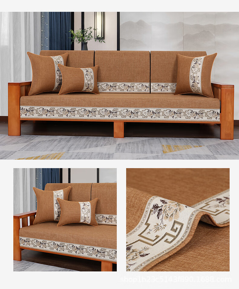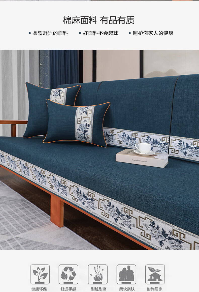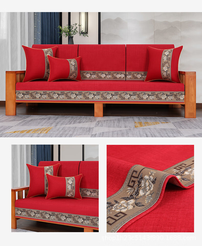 荃姝棉麻沙发垫中式沙发罩盖布巾感防滑沙发巾四季 国色天香-棉麻-红色 110cm*240cm