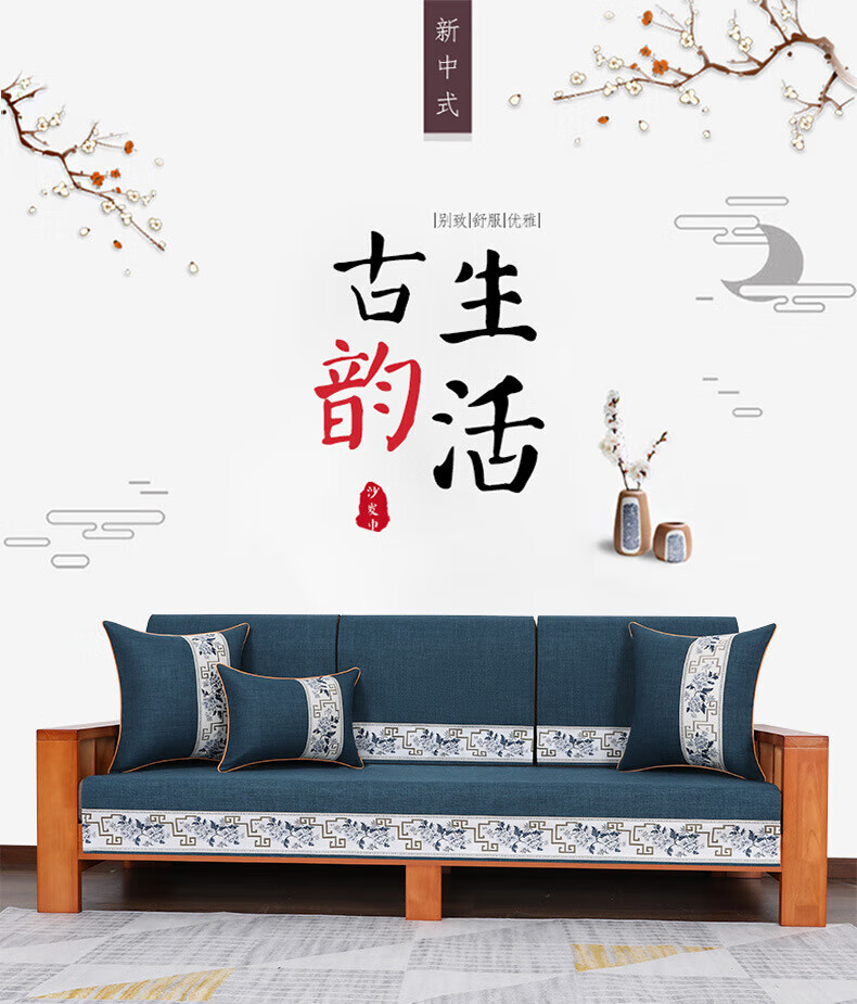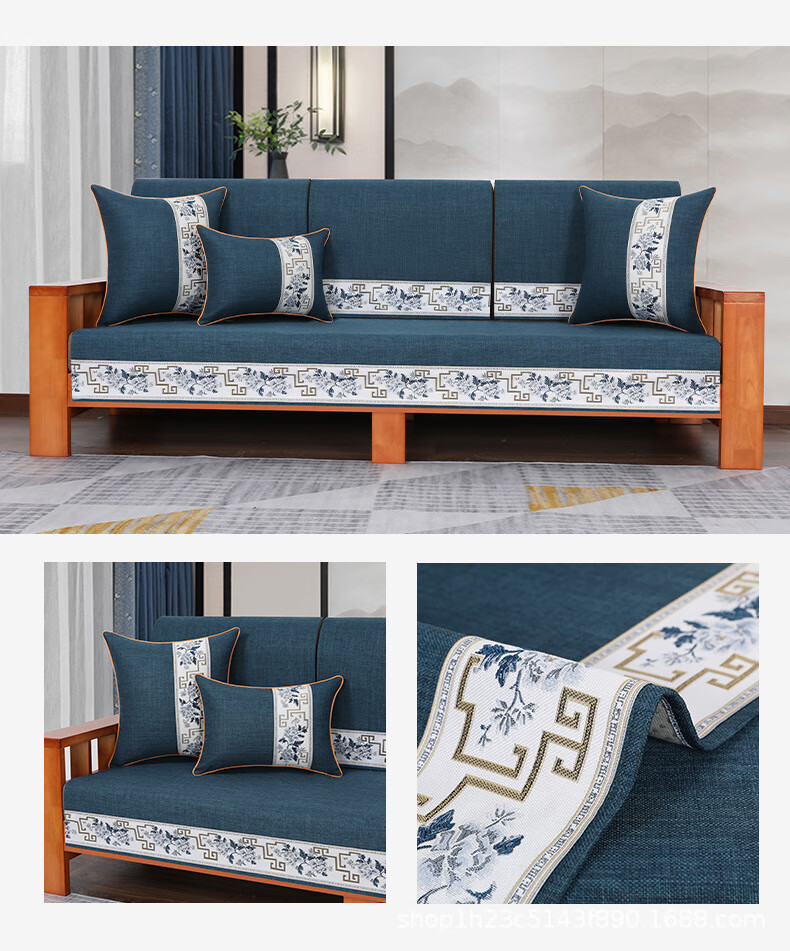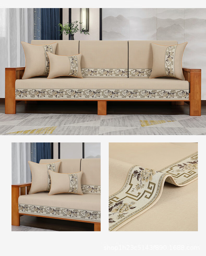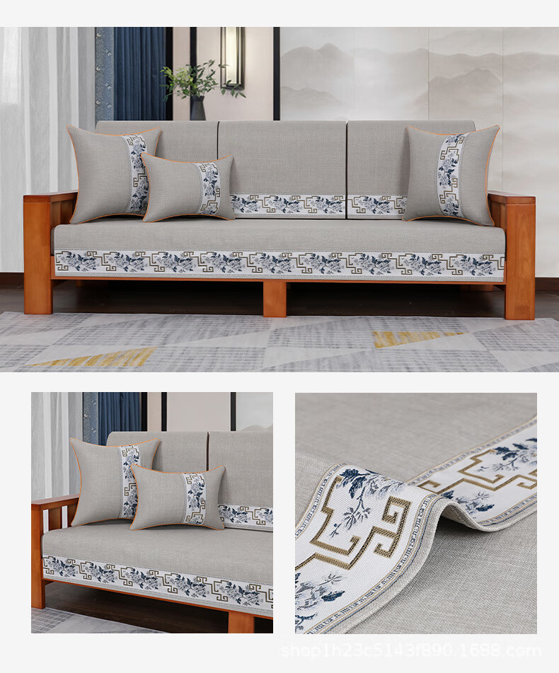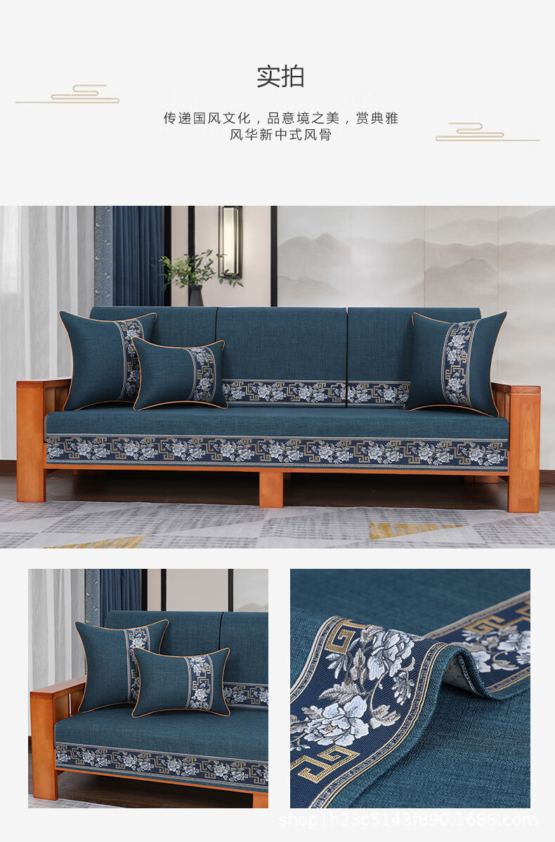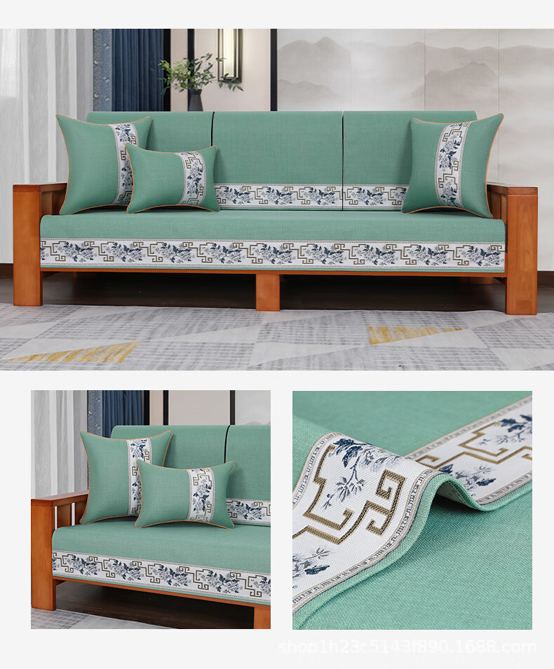 荃姝棉麻沙发垫中式沙发罩盖布巾感防滑沙发巾四季 国色天香-棉麻-红色 110cm*240cm