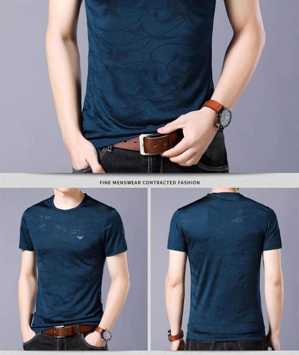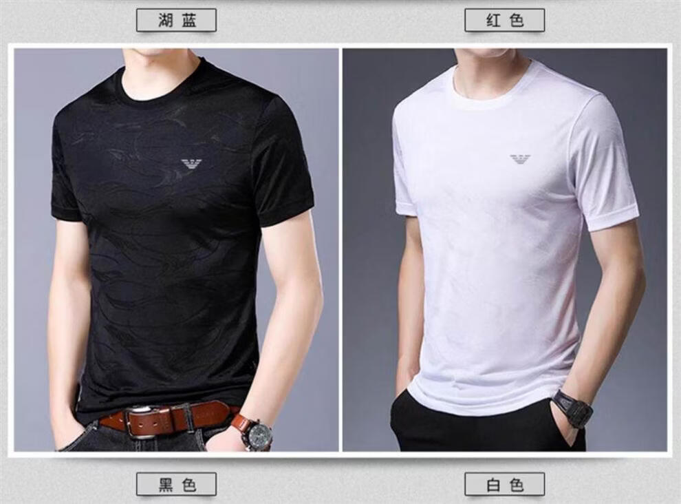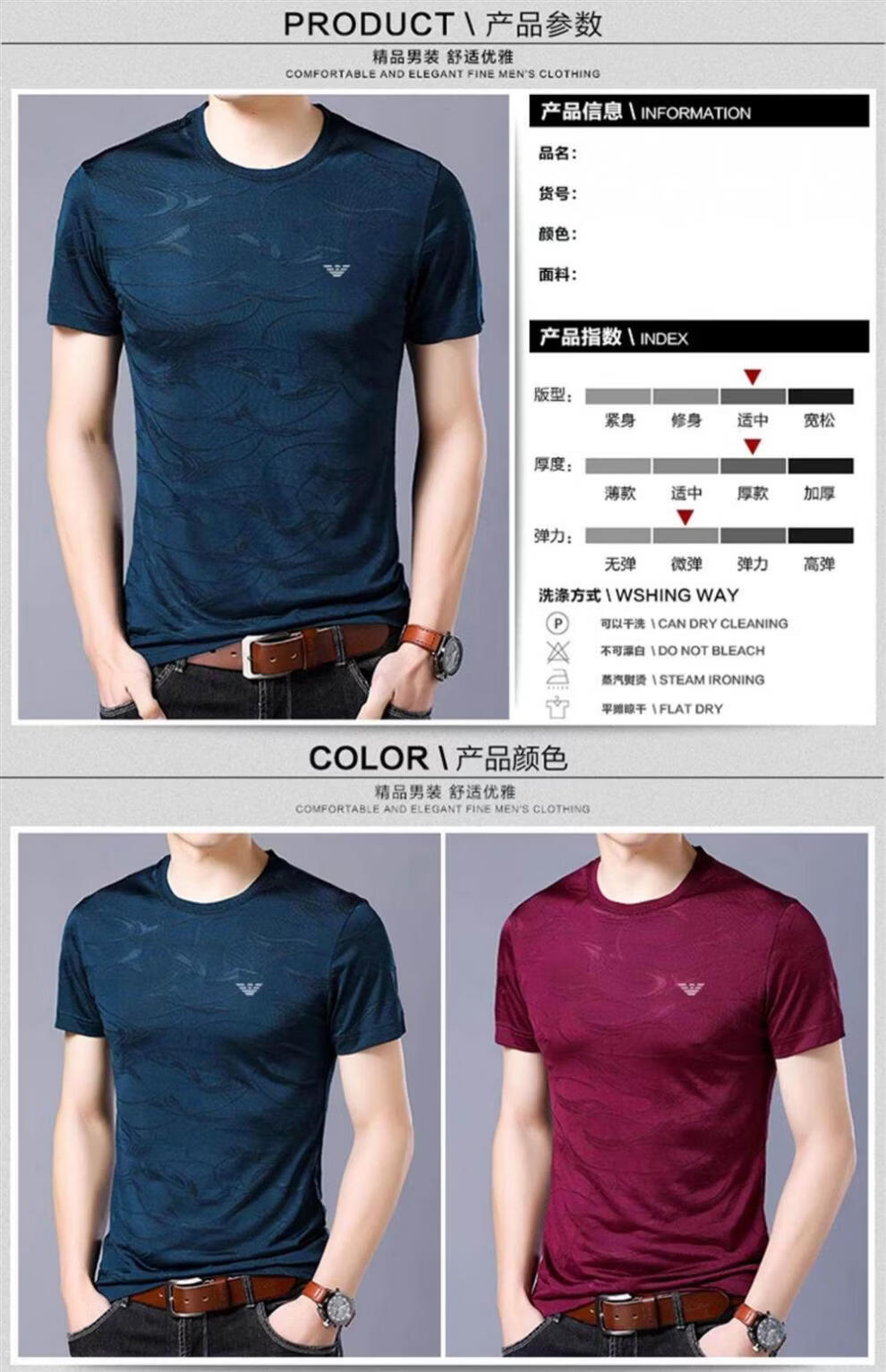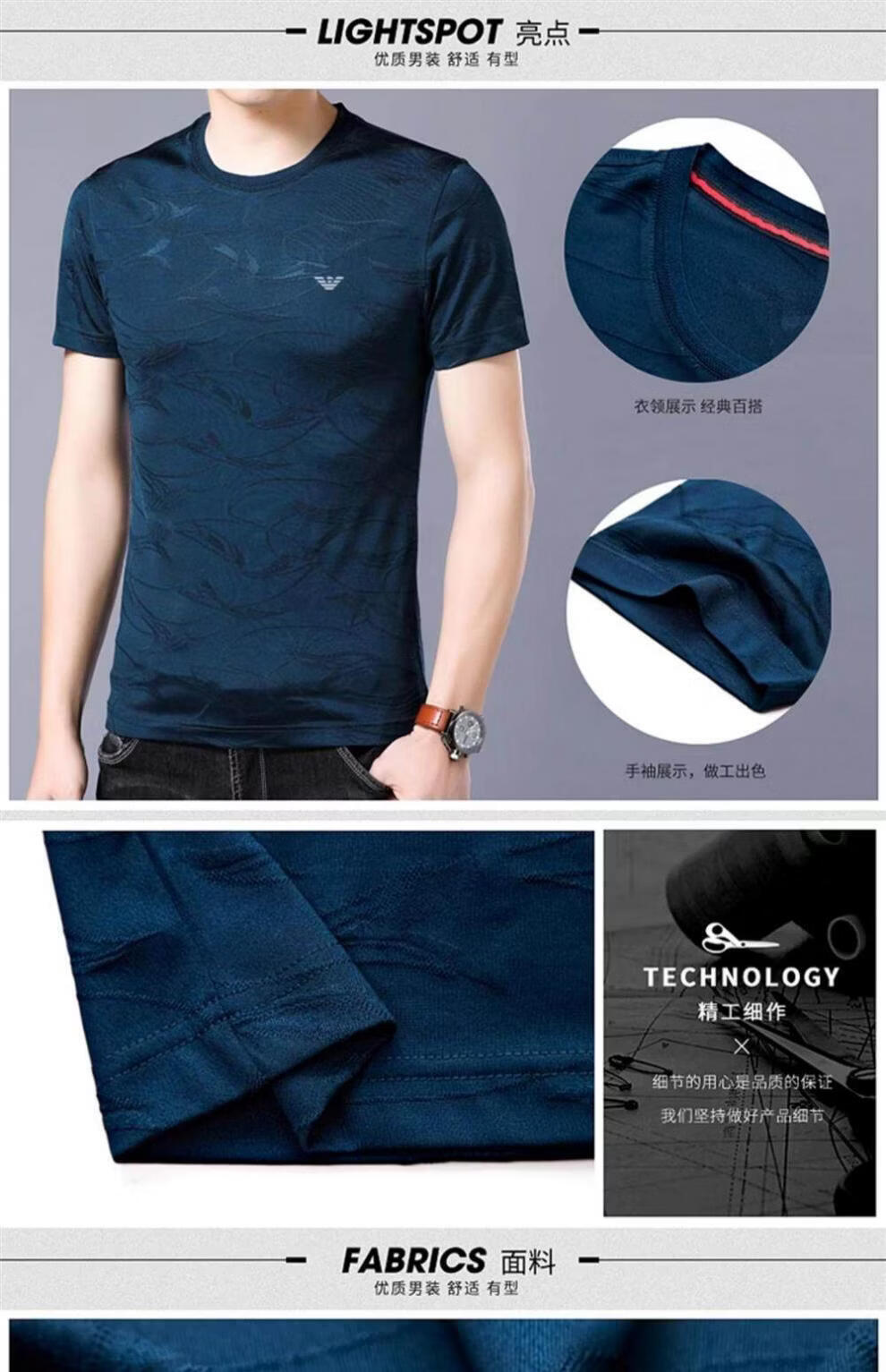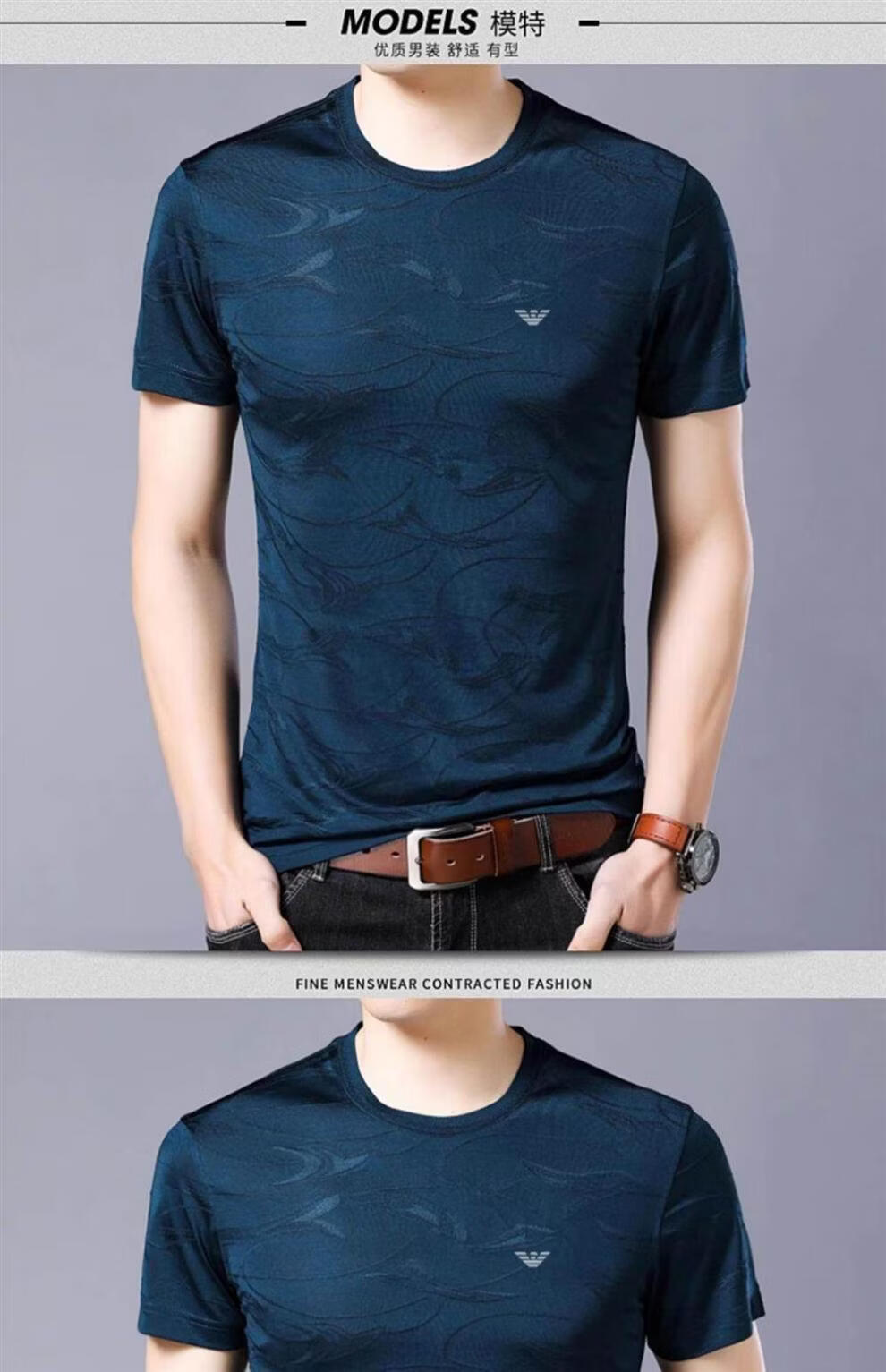 阿玛尼(ARMANI)意大利正品高端桑蚕丝短袖T恤男半袖体恤男装真 丝上衣服潮流高端 十大奢侈品男装国际一线品牌湖蓝色 M 165_