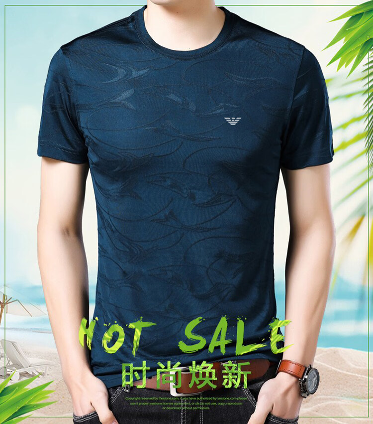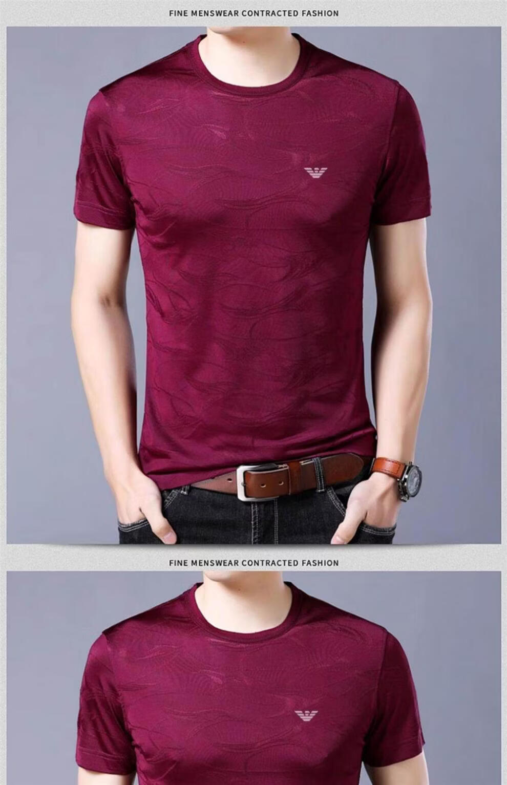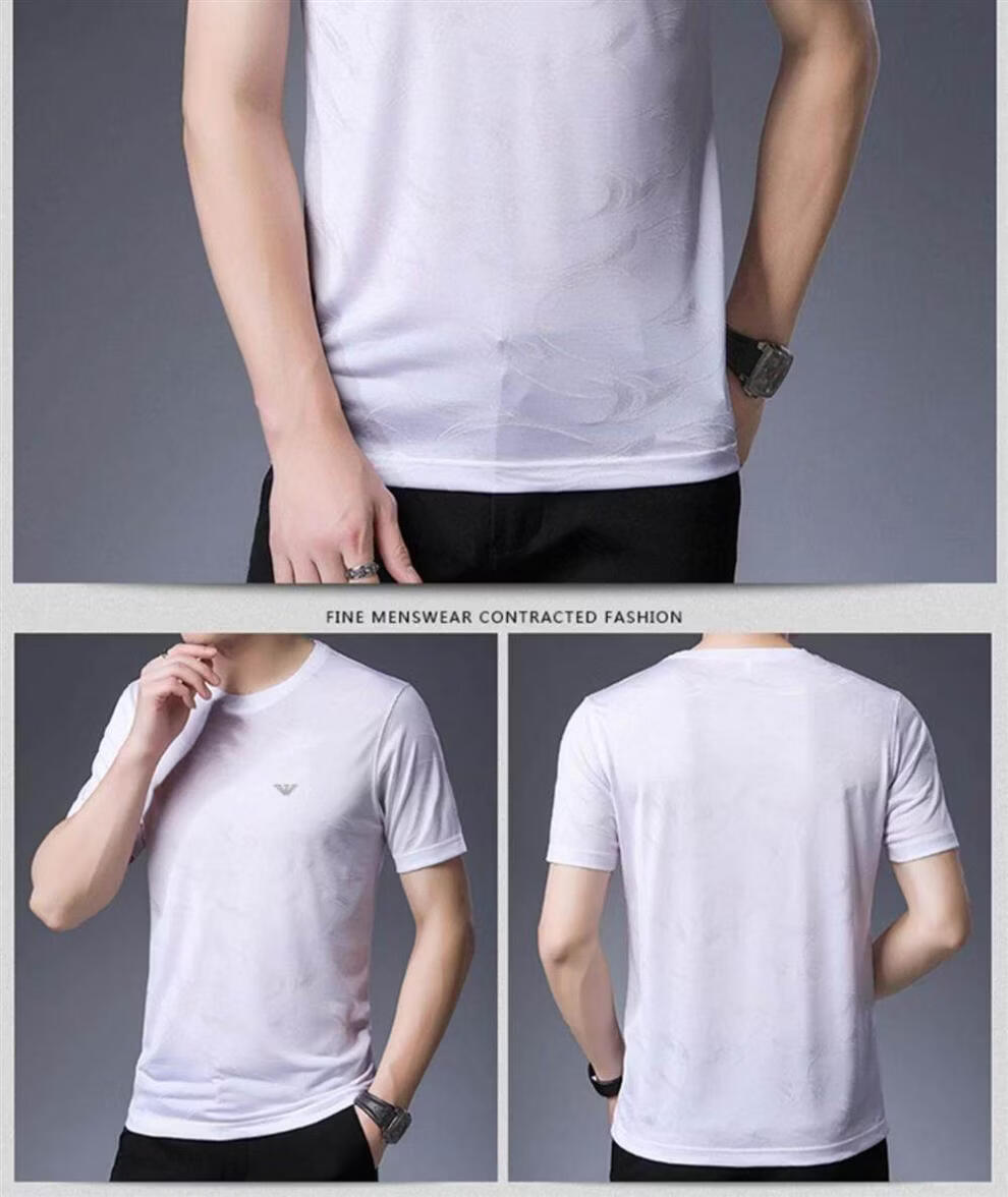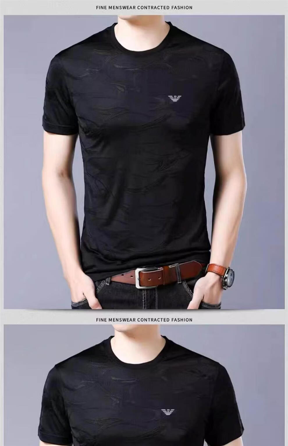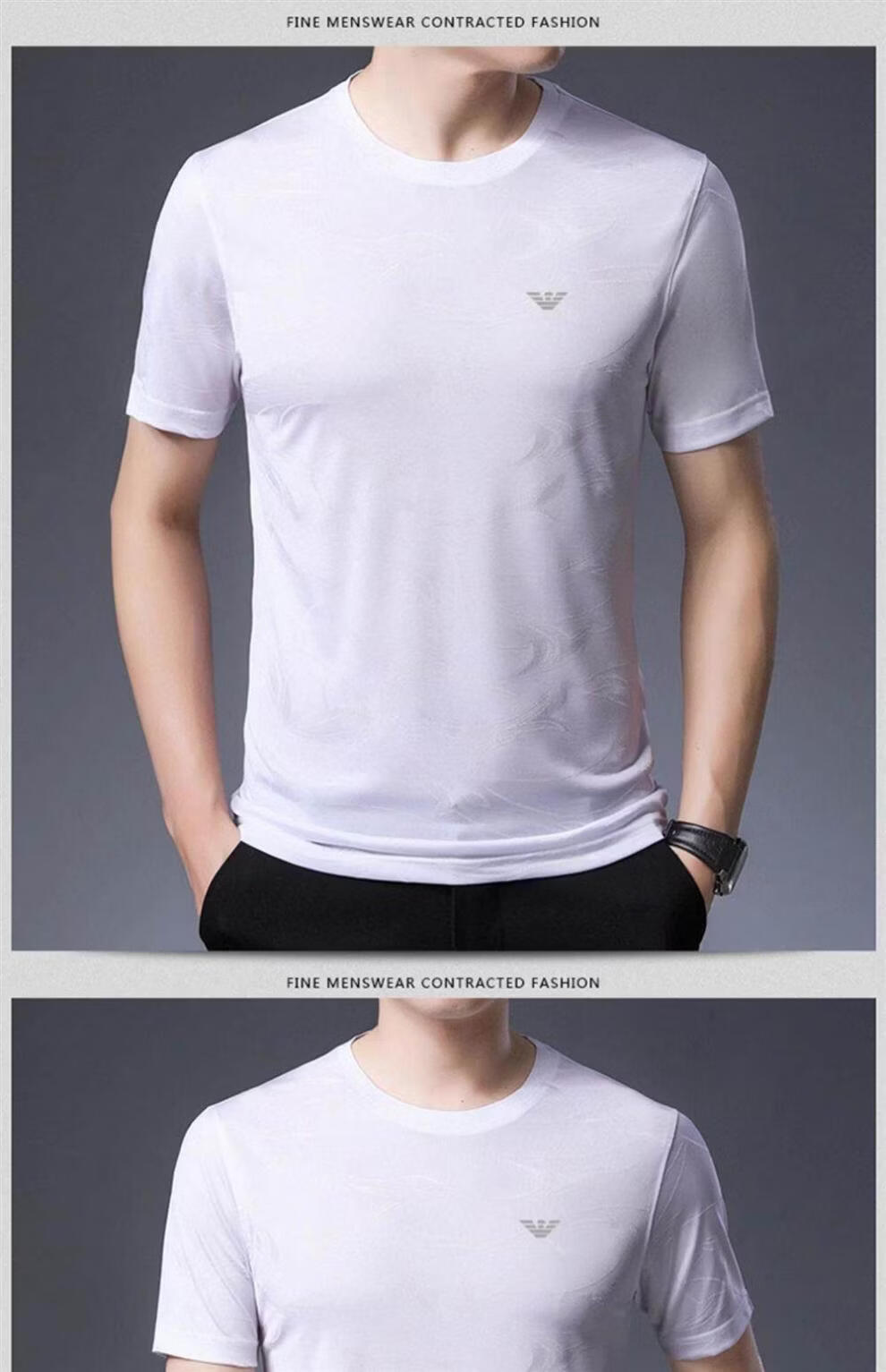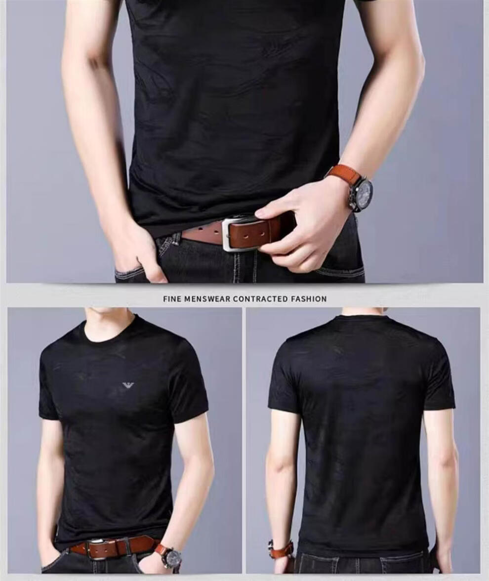 阿玛尼(ARMANI)意大利正品高端桑蚕丝短袖T恤男半袖体恤男装真 丝上衣服潮流高端 十大奢侈品男装国际一线品牌湖蓝色 M 165_