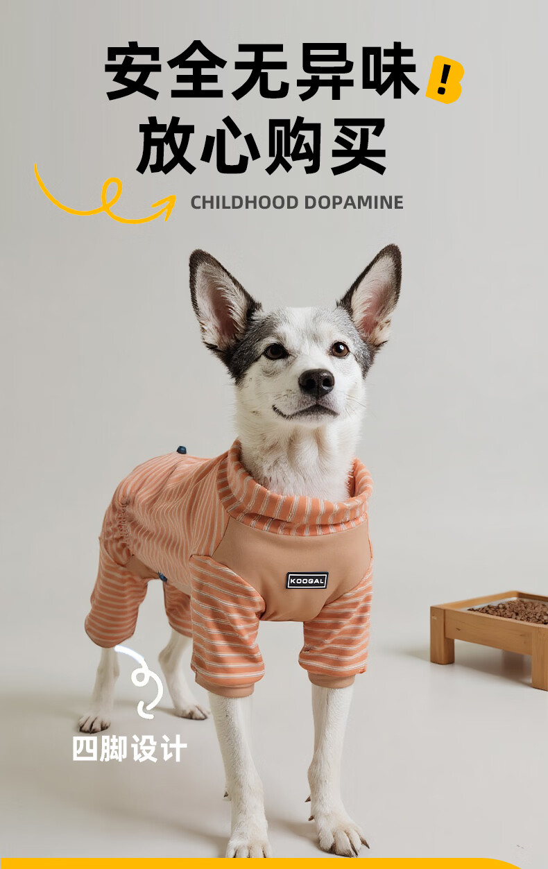 KOOGAL宠物睡衣德绒加厚高领保暖服装四脚狗狗小中大型犬弹力金毛狗衣服 浅粉色【德绒】 6XL【建议88-115斤】