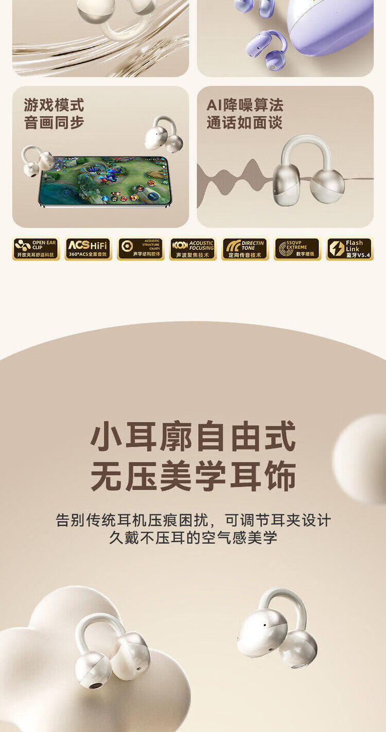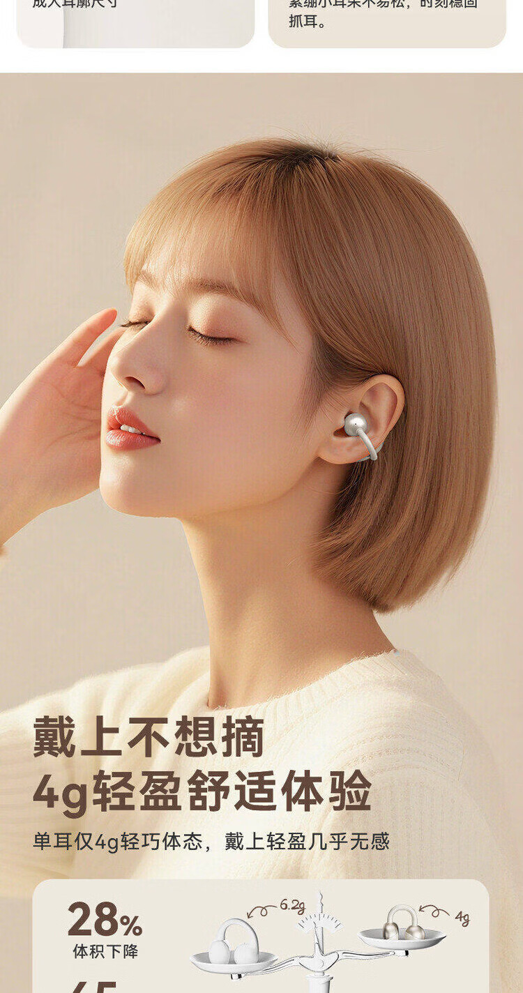 弱水时砂OpenFeel【周传雄推荐】蓝牙耳机耳夹式不入耳真无线开放式HIFi气骨传导概念通话降噪挂耳运动跑步