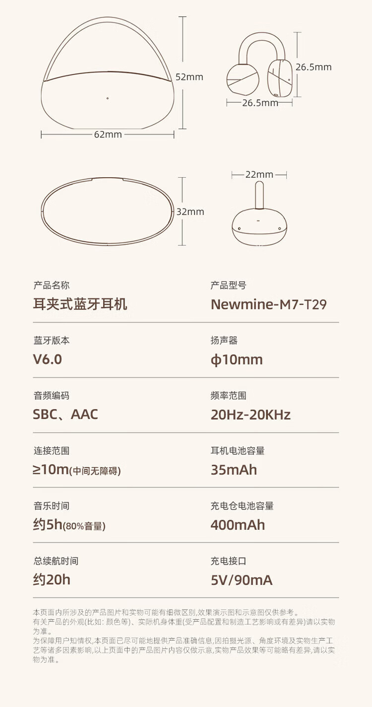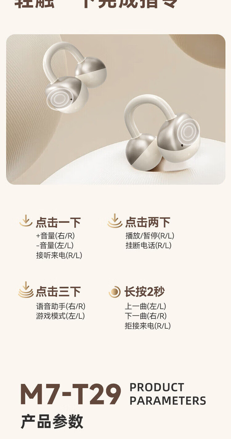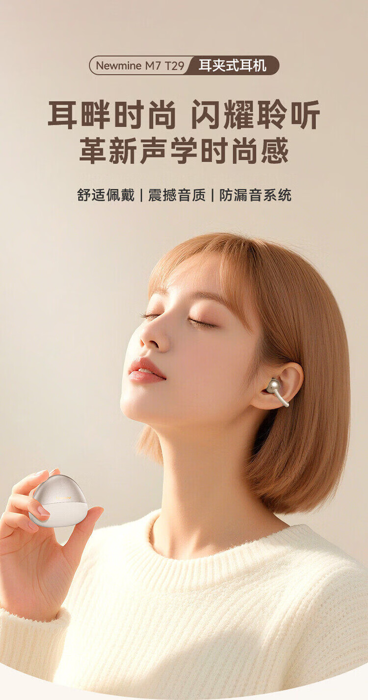 纽曼M7-T29蓝牙耳机OWS蓝牙耳机夹耳式跑步运动超长续航大音量耳机 浅蓝色 热销Hot 影院全景音丨舒适不漏音】