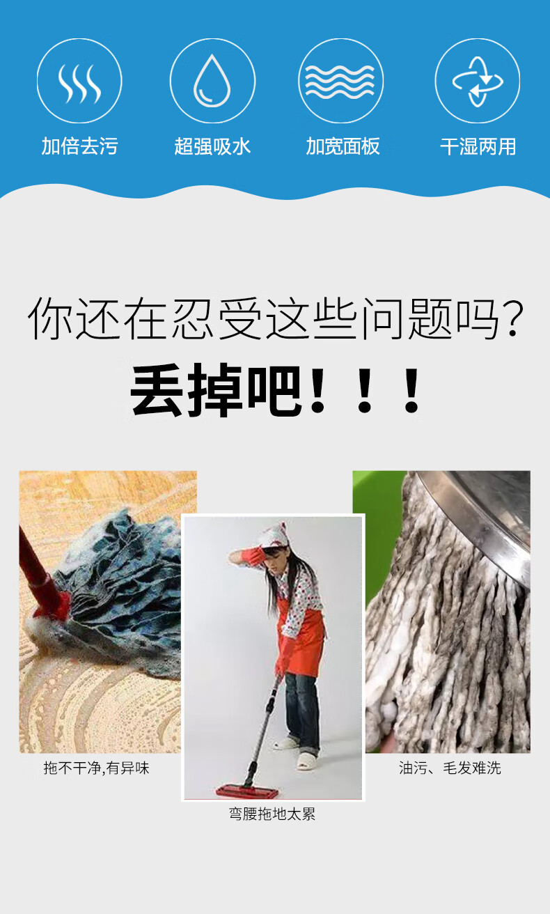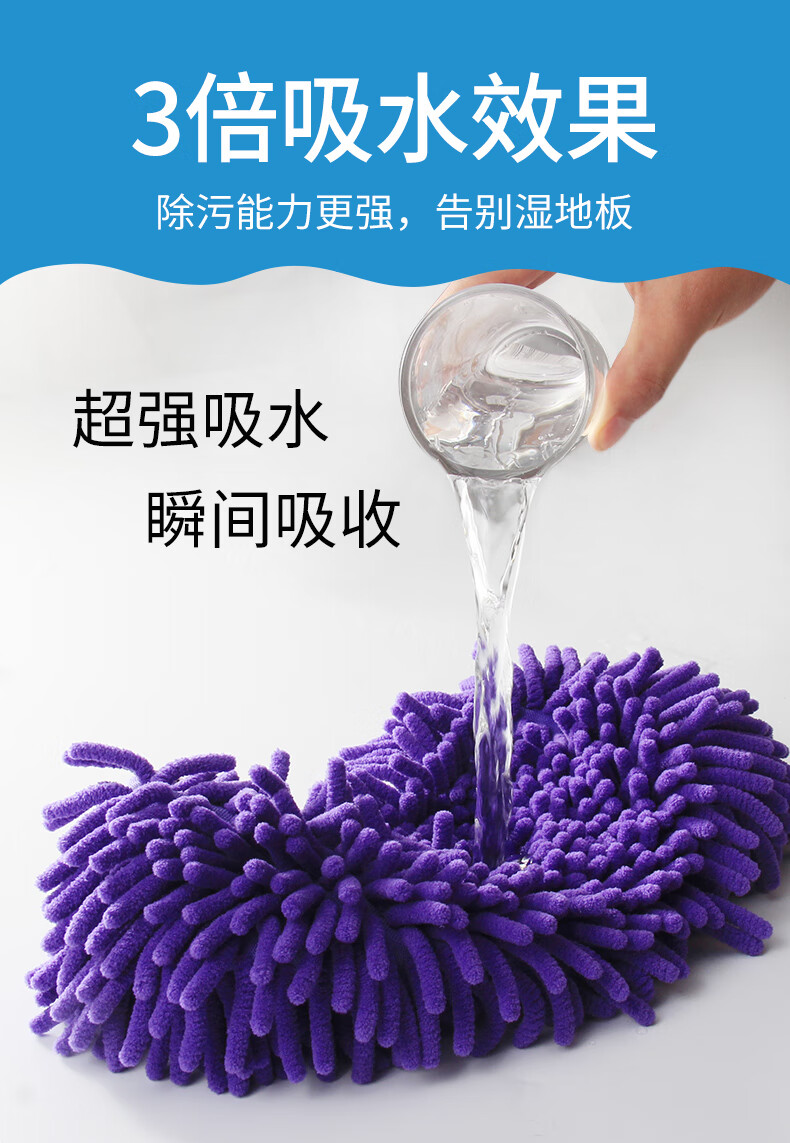 巧姨雪尼尔拖把毛毛虫干湿两用地板平板拖把旋转吸水一拖净家用拖布 单独替换拖布2个(不含拖把) 60CM【加长型】