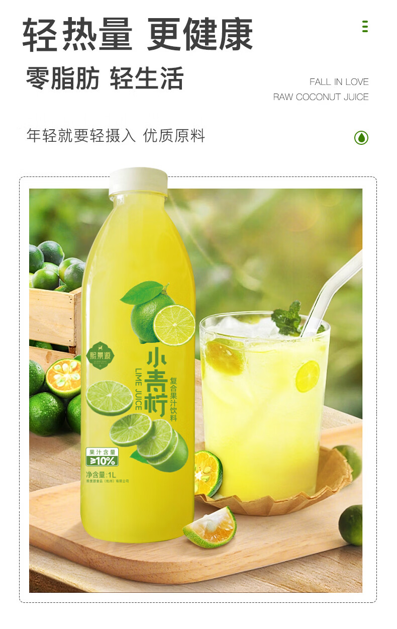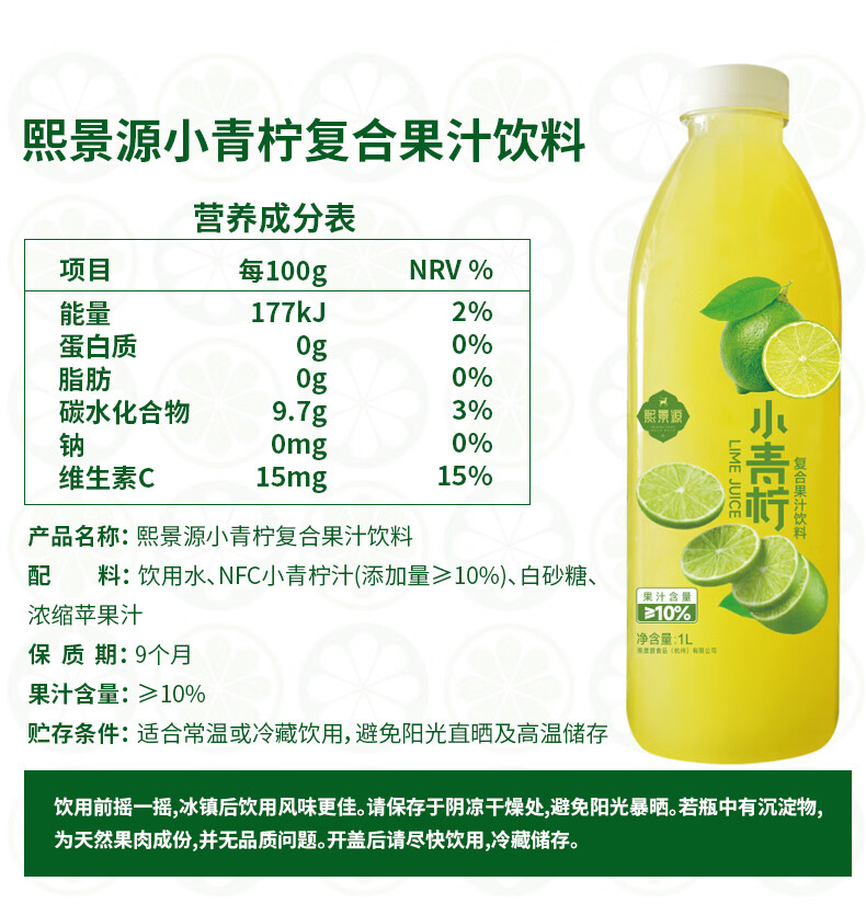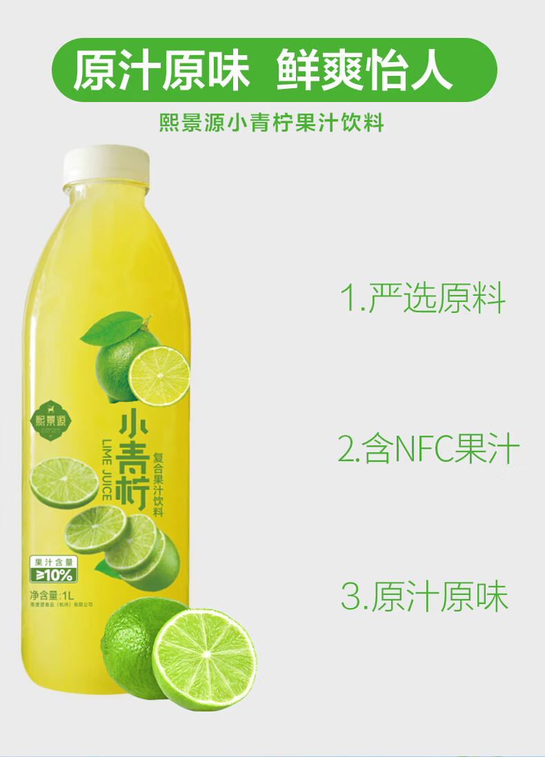 熙景源小青柠汁果汁饮料含维C清爽解腻含nfc火锅聚会清爽解腻大瓶分享装 小青柠汁 1L*1瓶