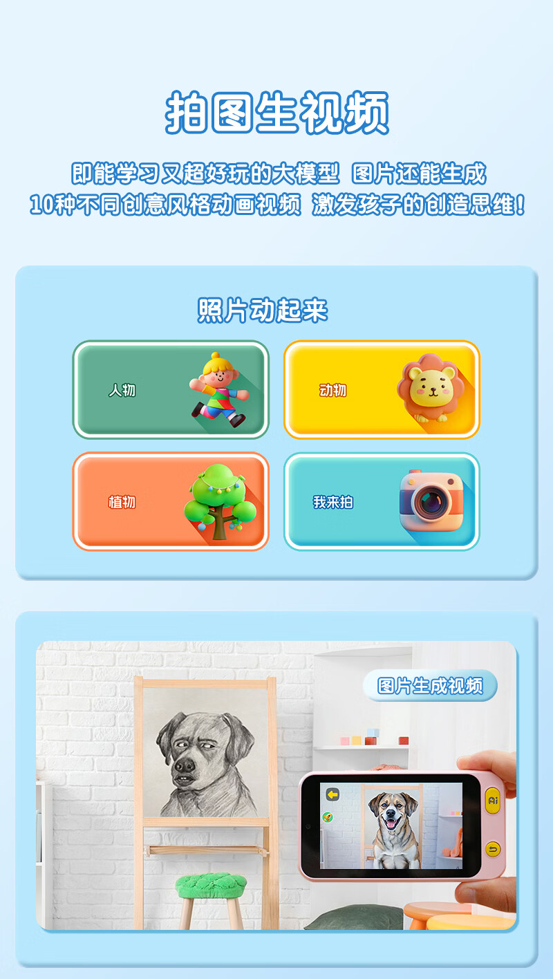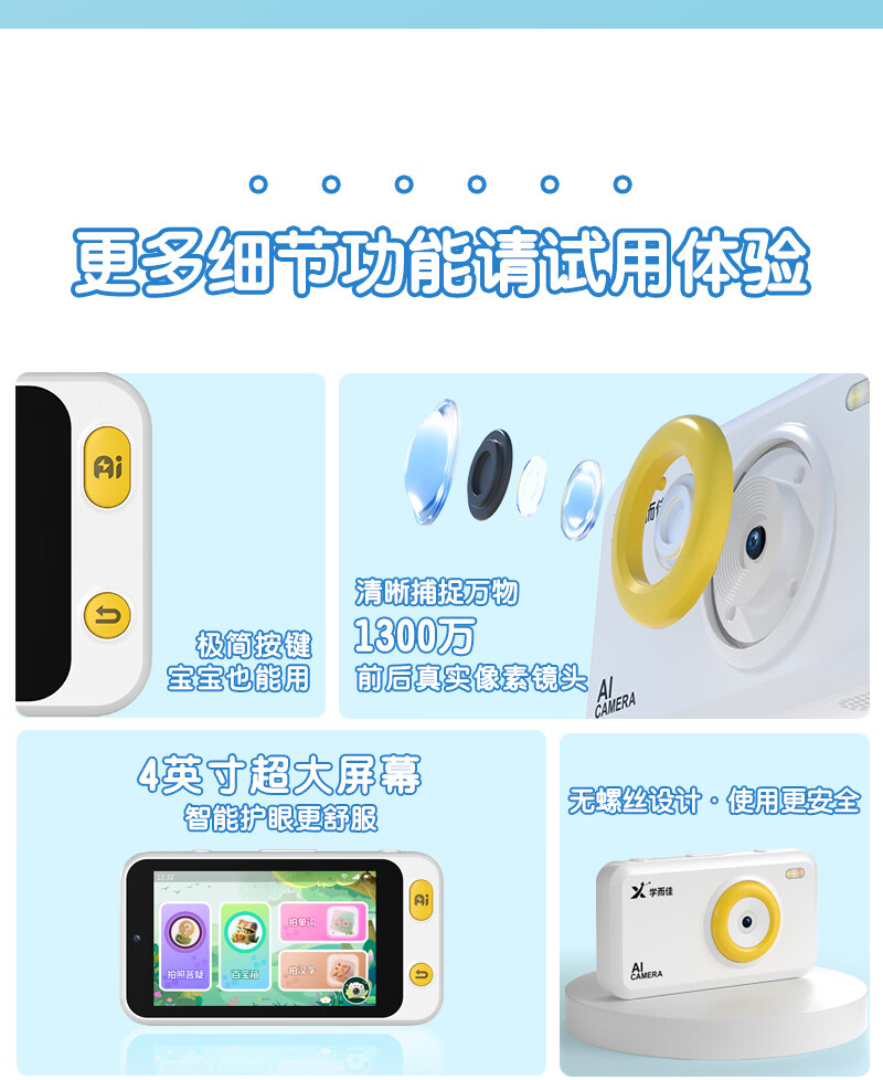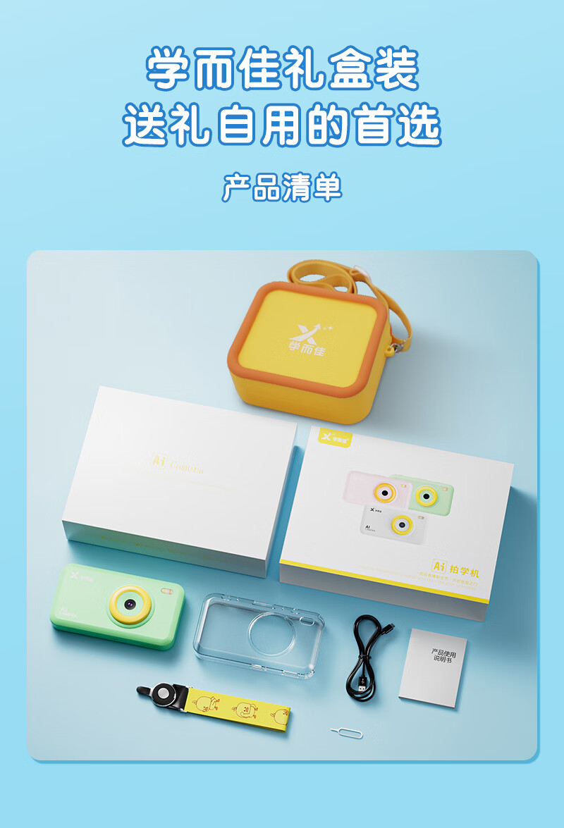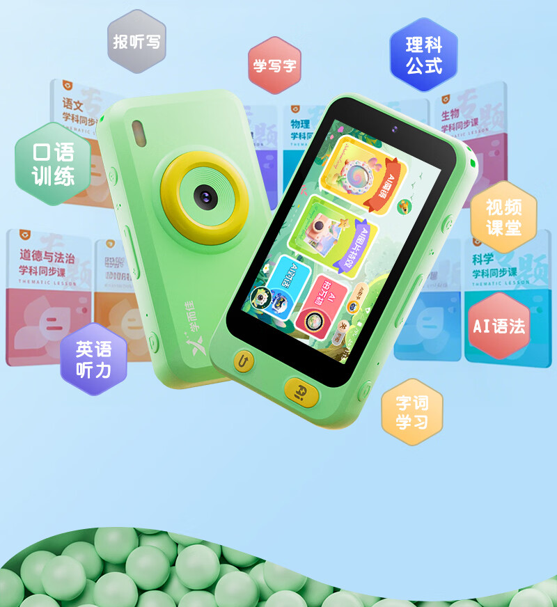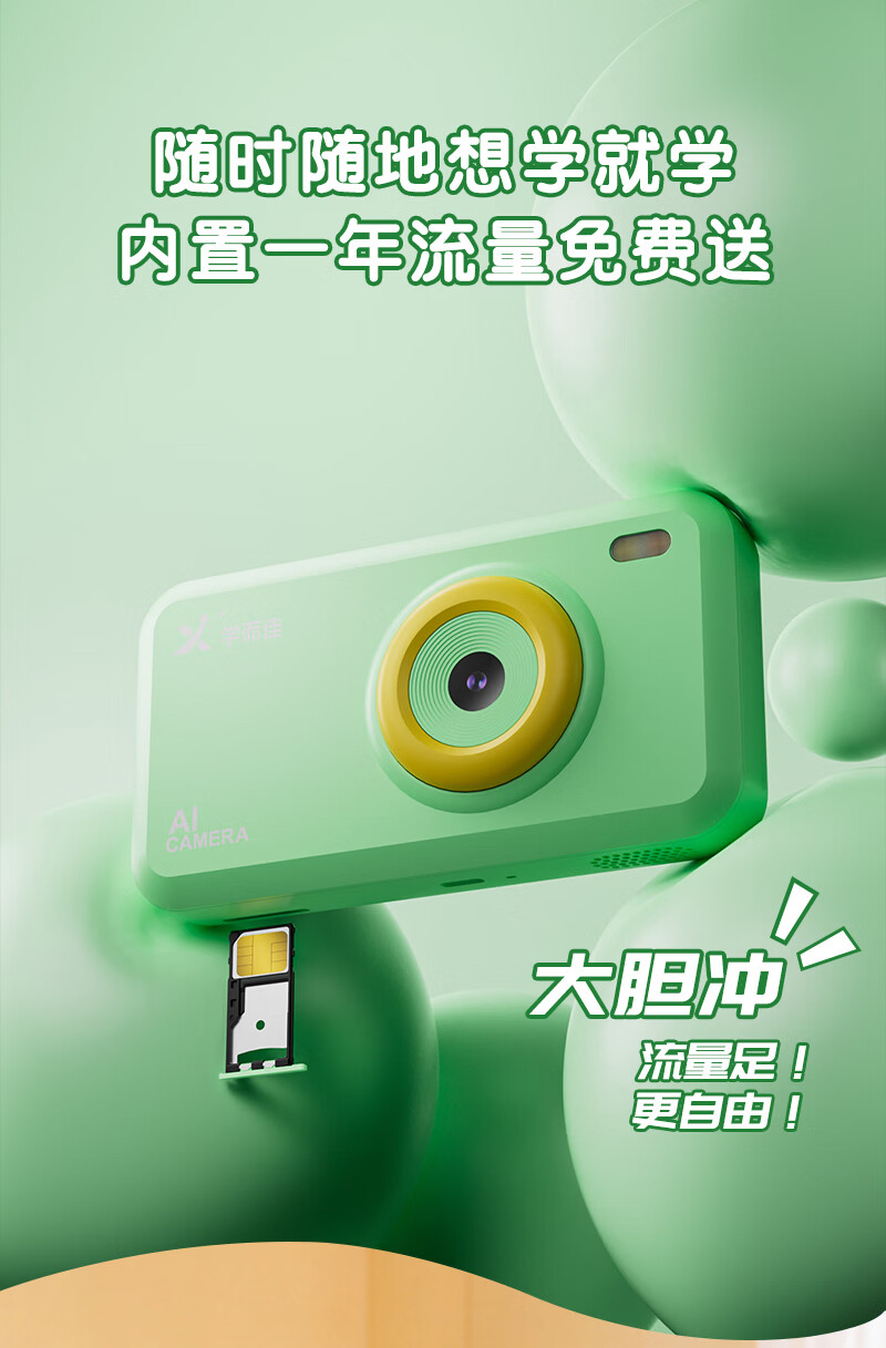 学而佳AI拍学机1300W高像素儿童人工智能玩具学习机早教机故事机 精灵绿(保护壳+相机探险包+挂绳+1999元会员) K7 MAX (64G)送2999元学习机内容