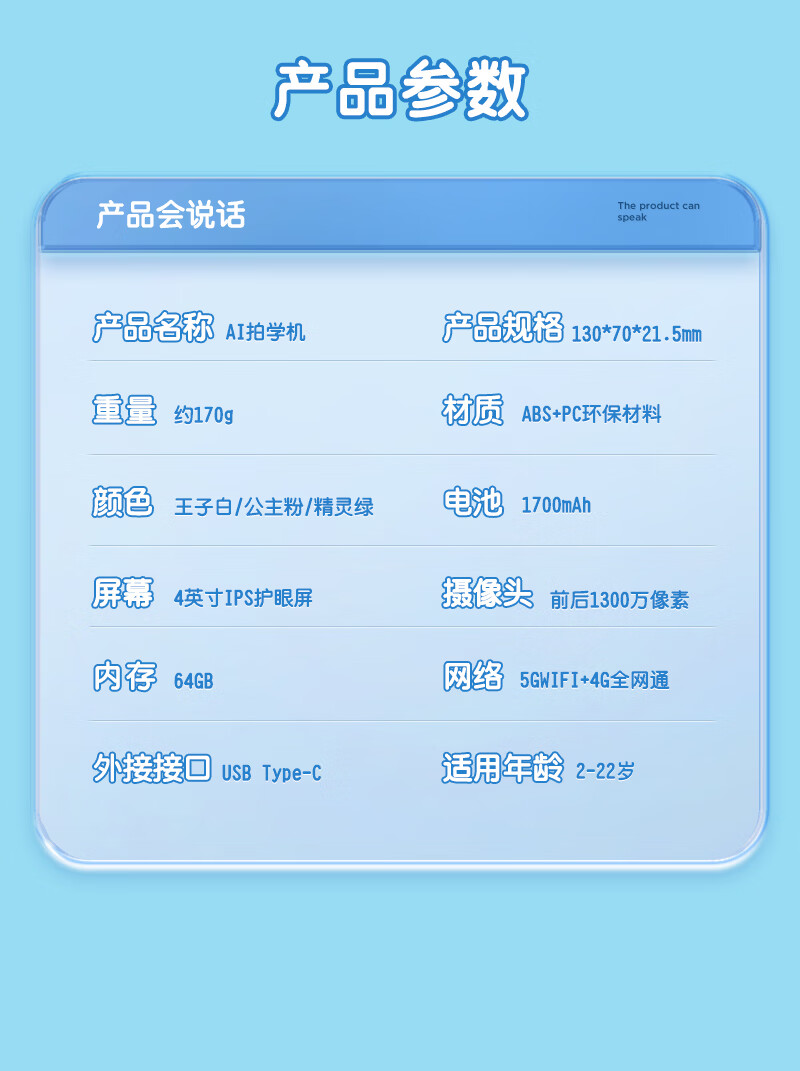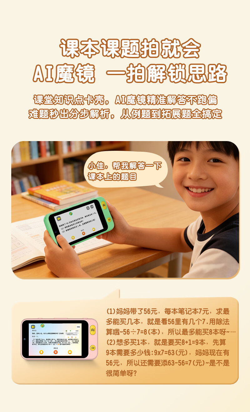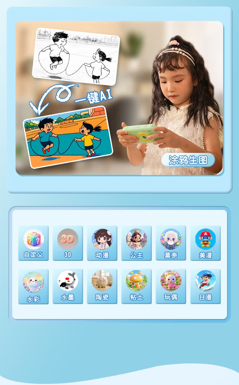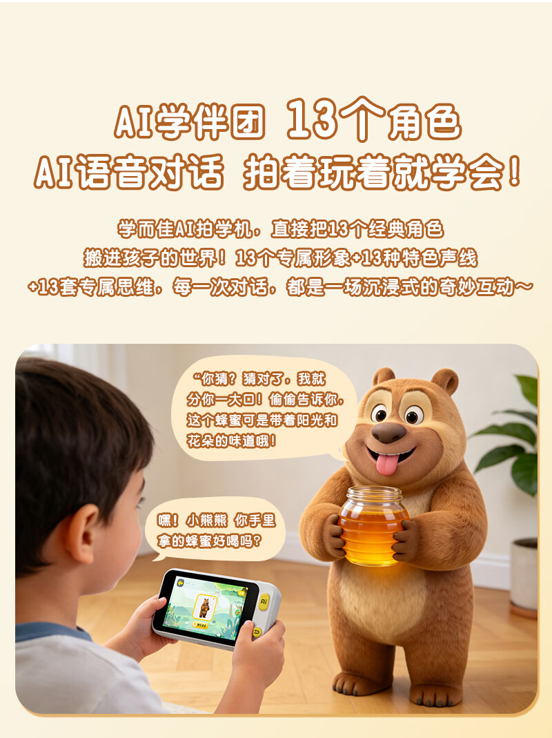 学而佳AI拍学机1300W高像素儿童人工智能玩具学习机早教机故事机 精灵绿(保护壳+相机探险包+挂绳+1999元会员) K7 MAX (64G)送2999元学习机内容