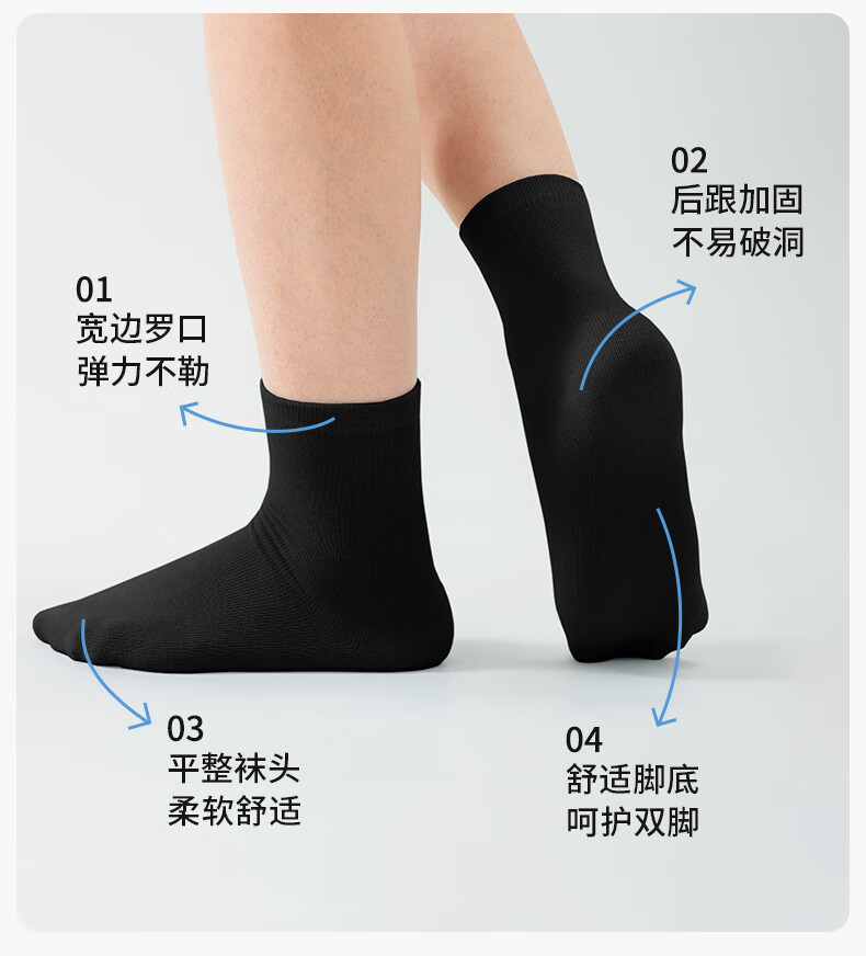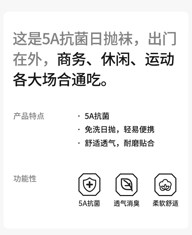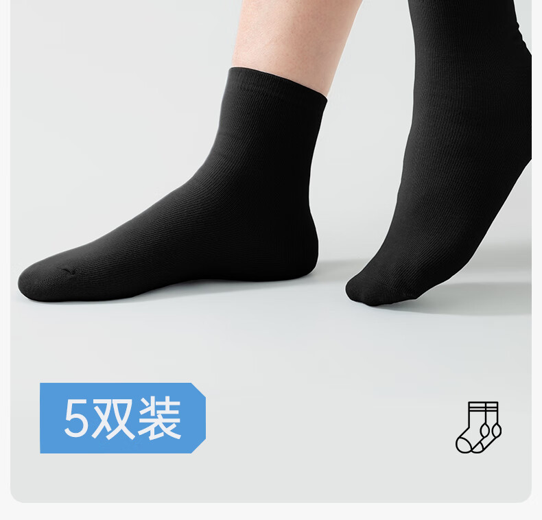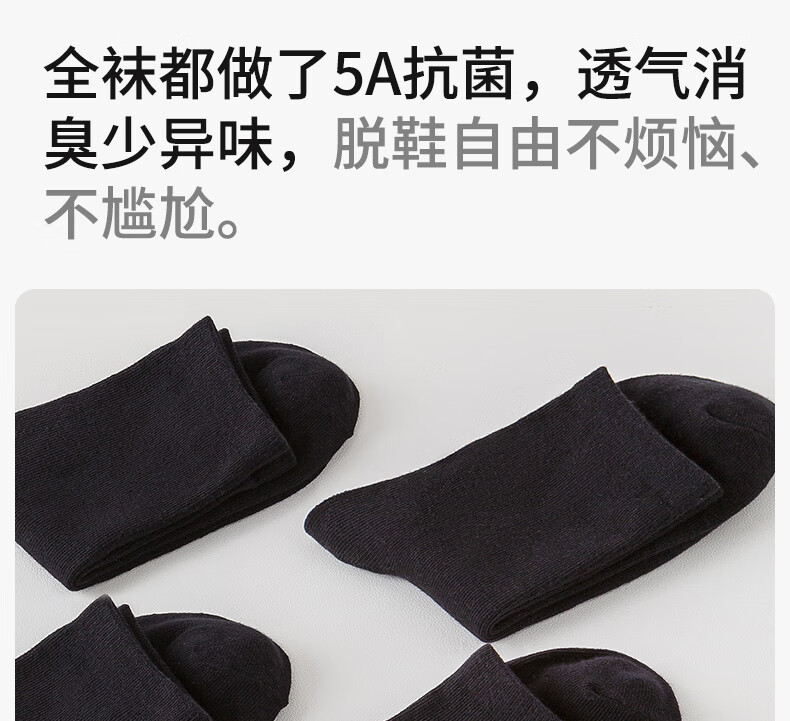 蓓安适一次性袜子男士【10A抗菌级】旅行便携中筒黑色5双装