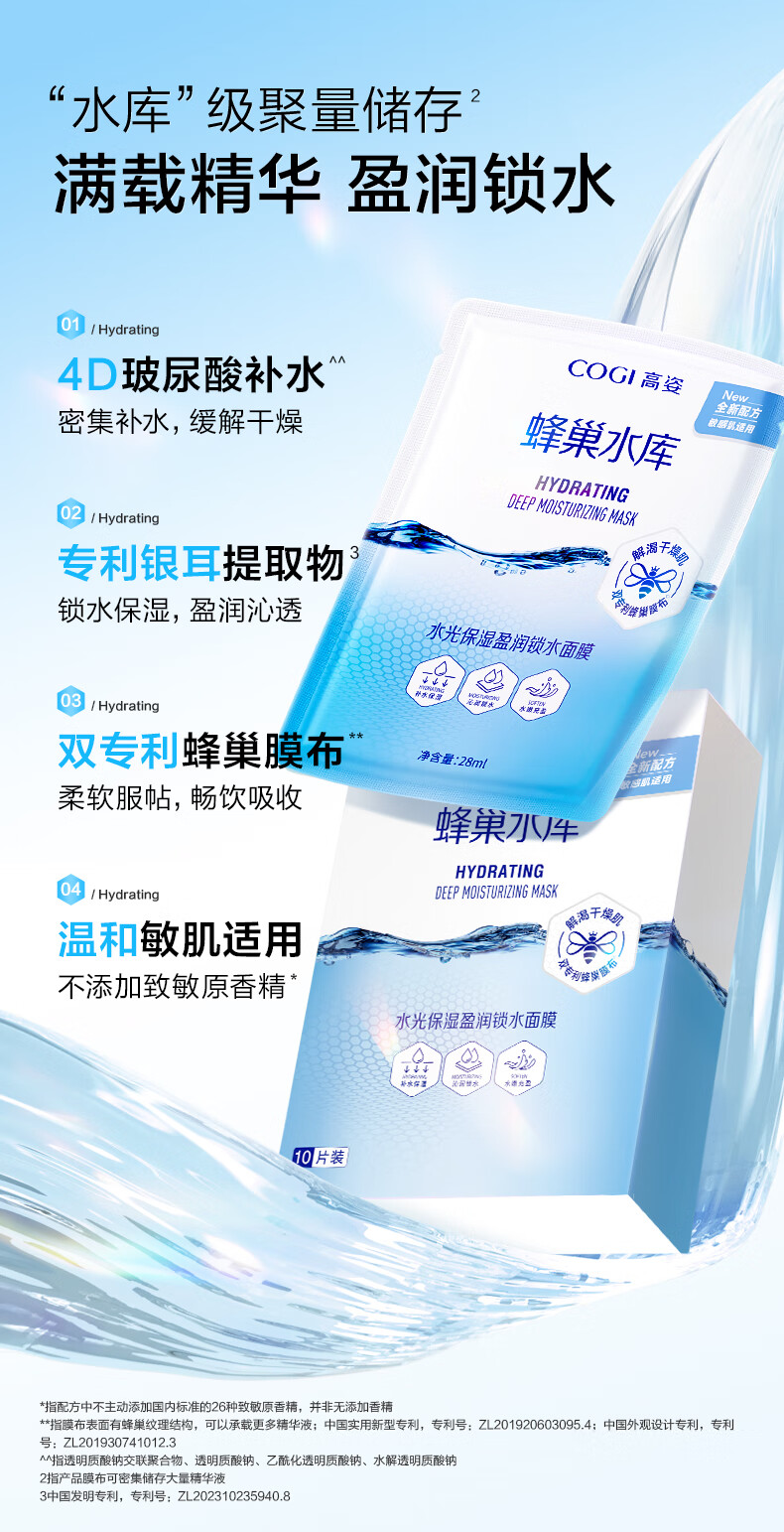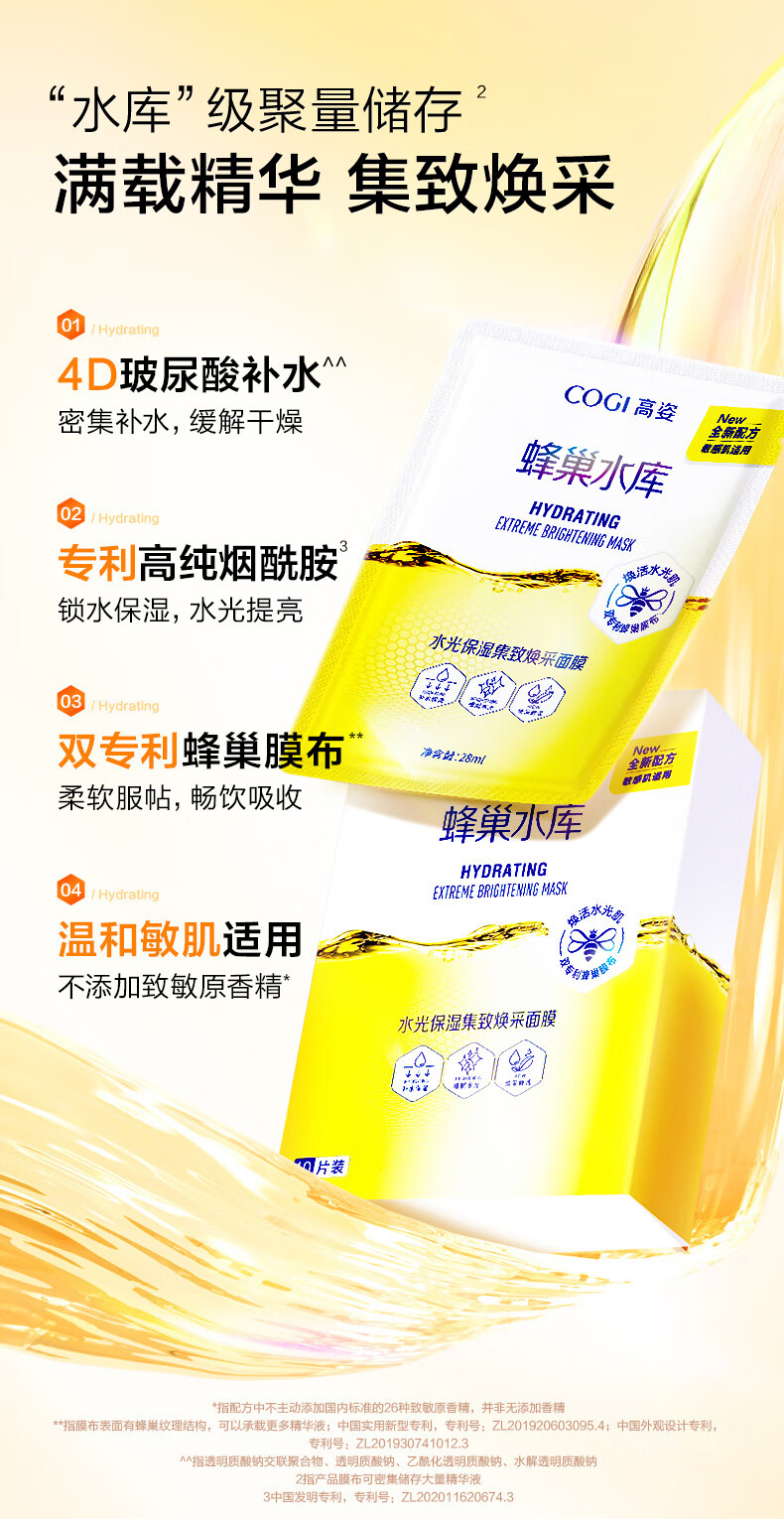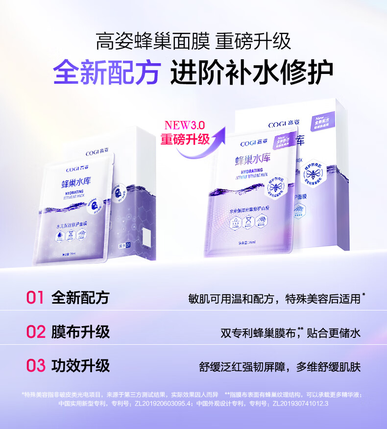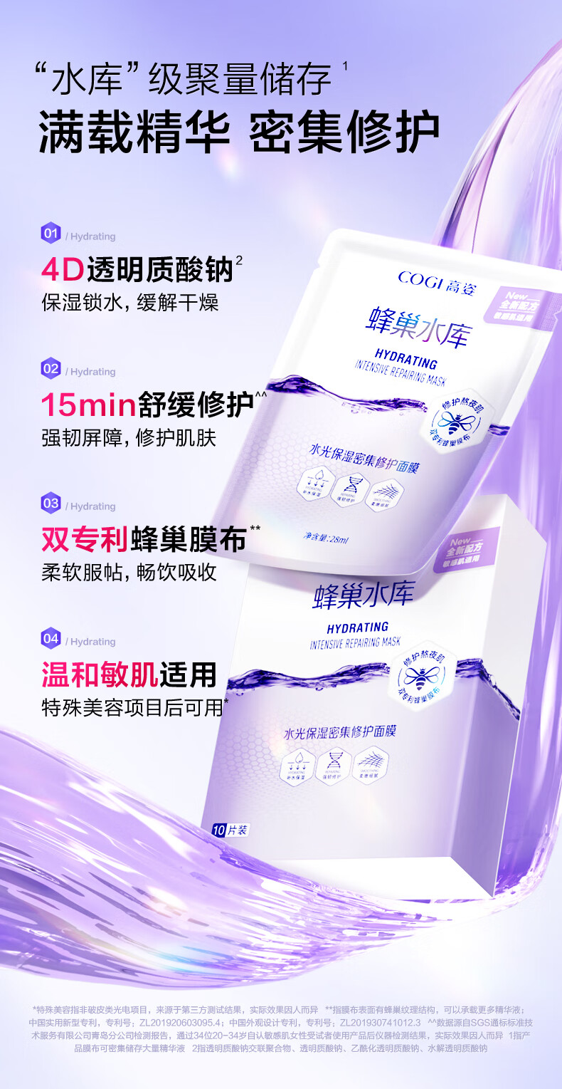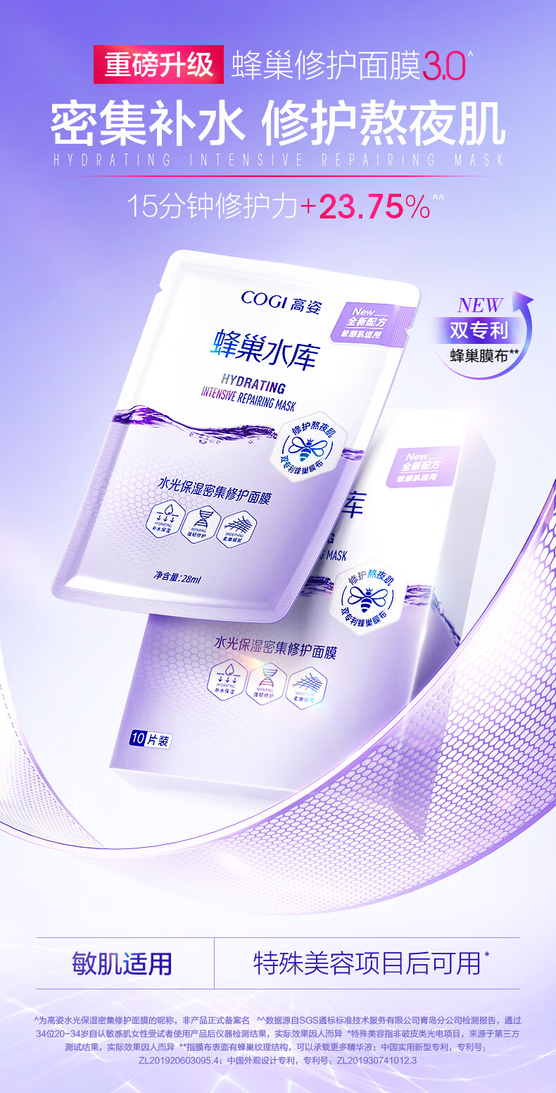 高姿面膜蜂巢修护补水保湿面膜28ml*30片 修护熬夜肌