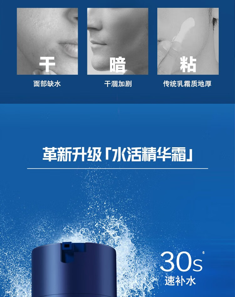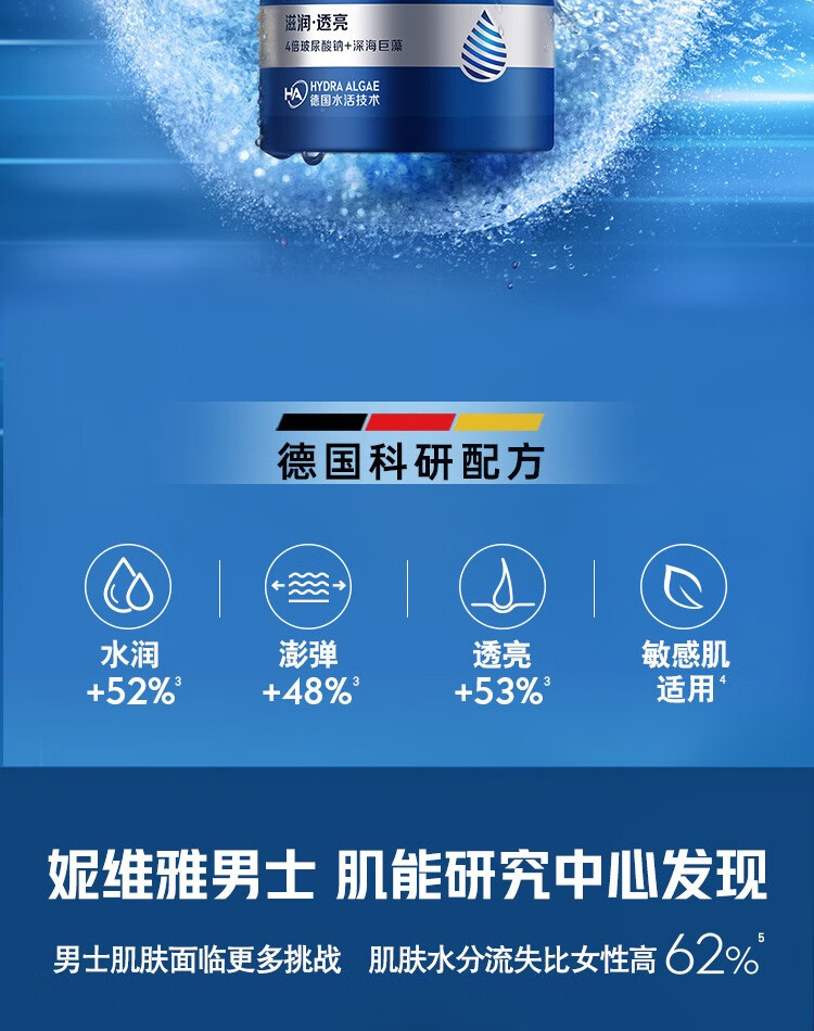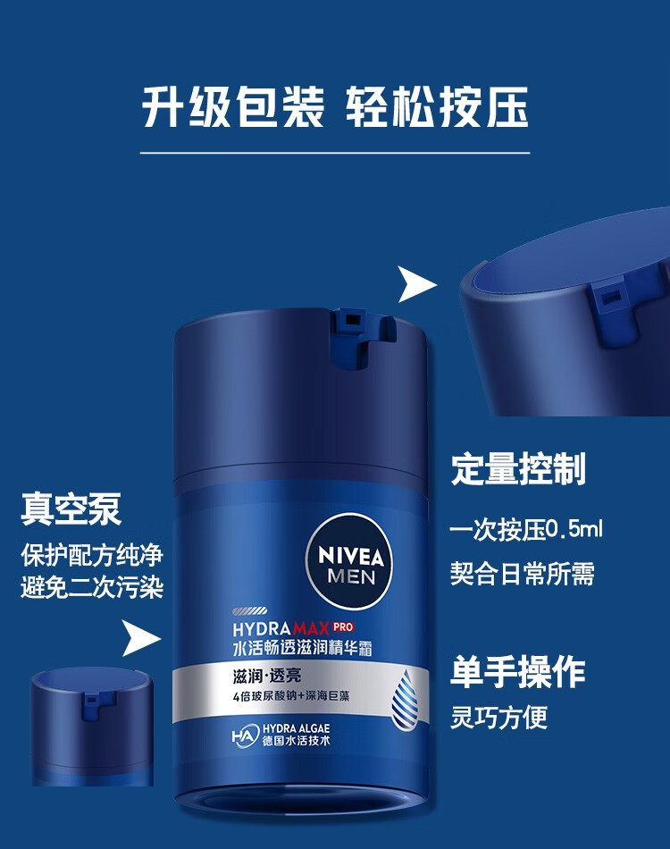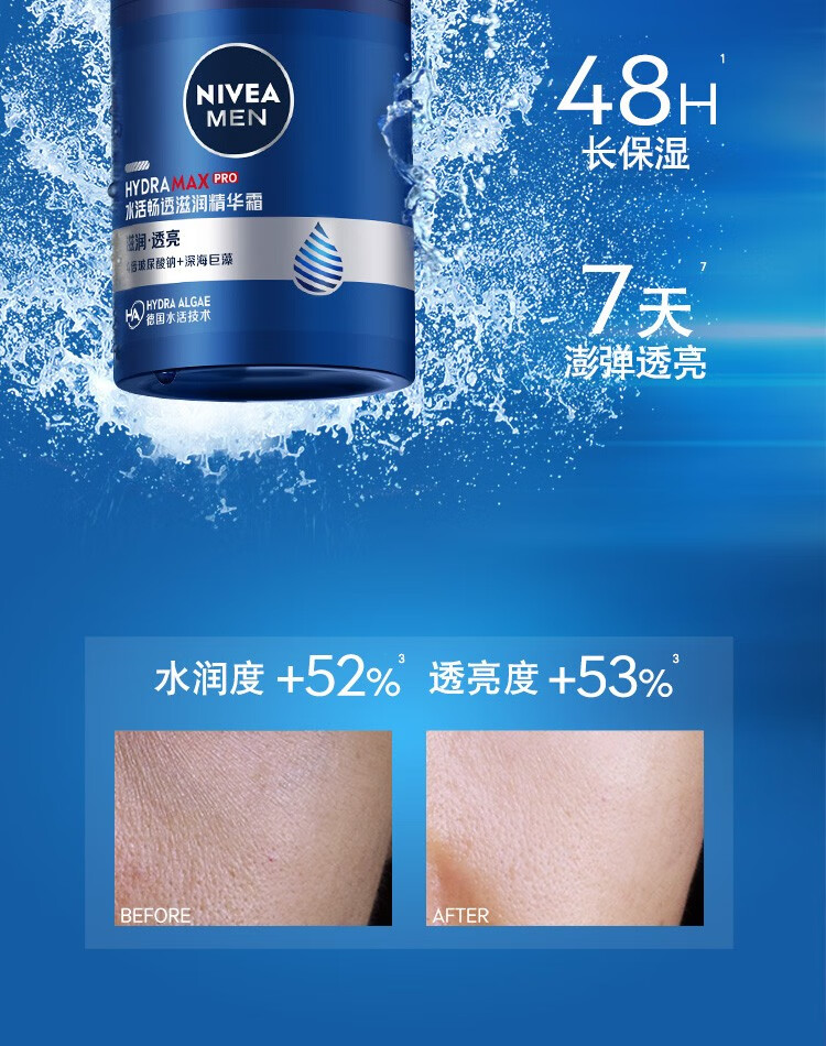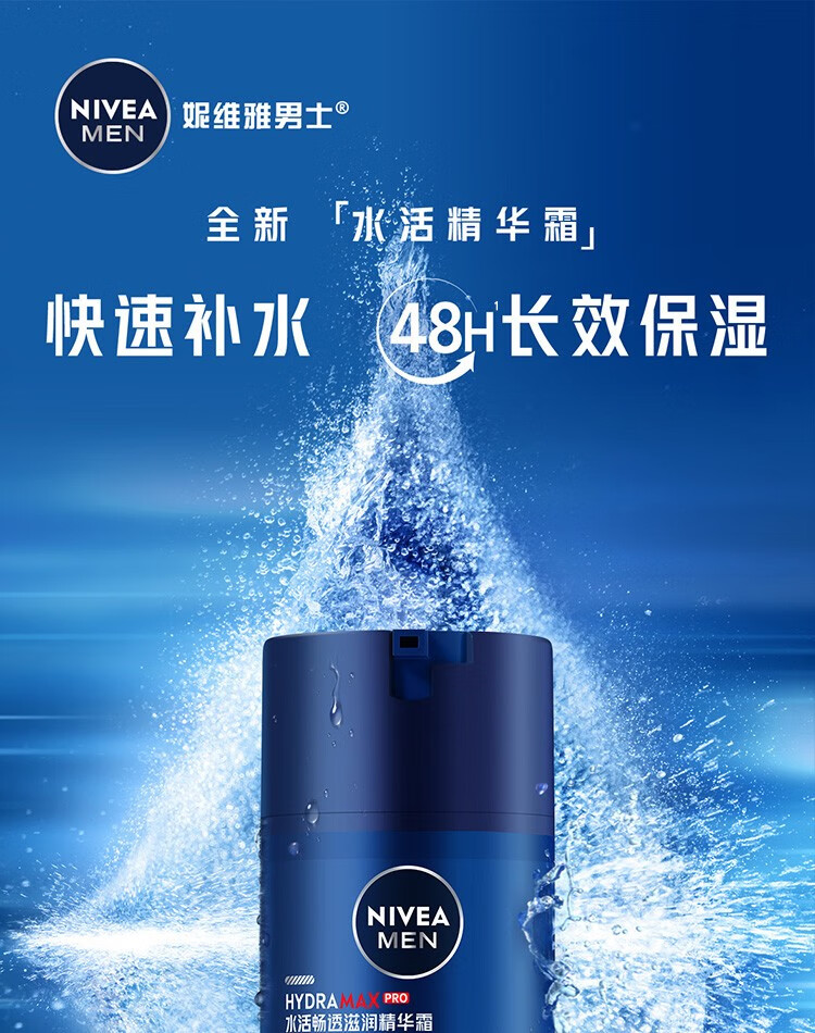 妮维雅(NIVEA)男士补水保湿滋润透亮不油腻面霜乳液精华学生护肤品礼物送男友 【快速补水】男士水活畅透精华霜双支
