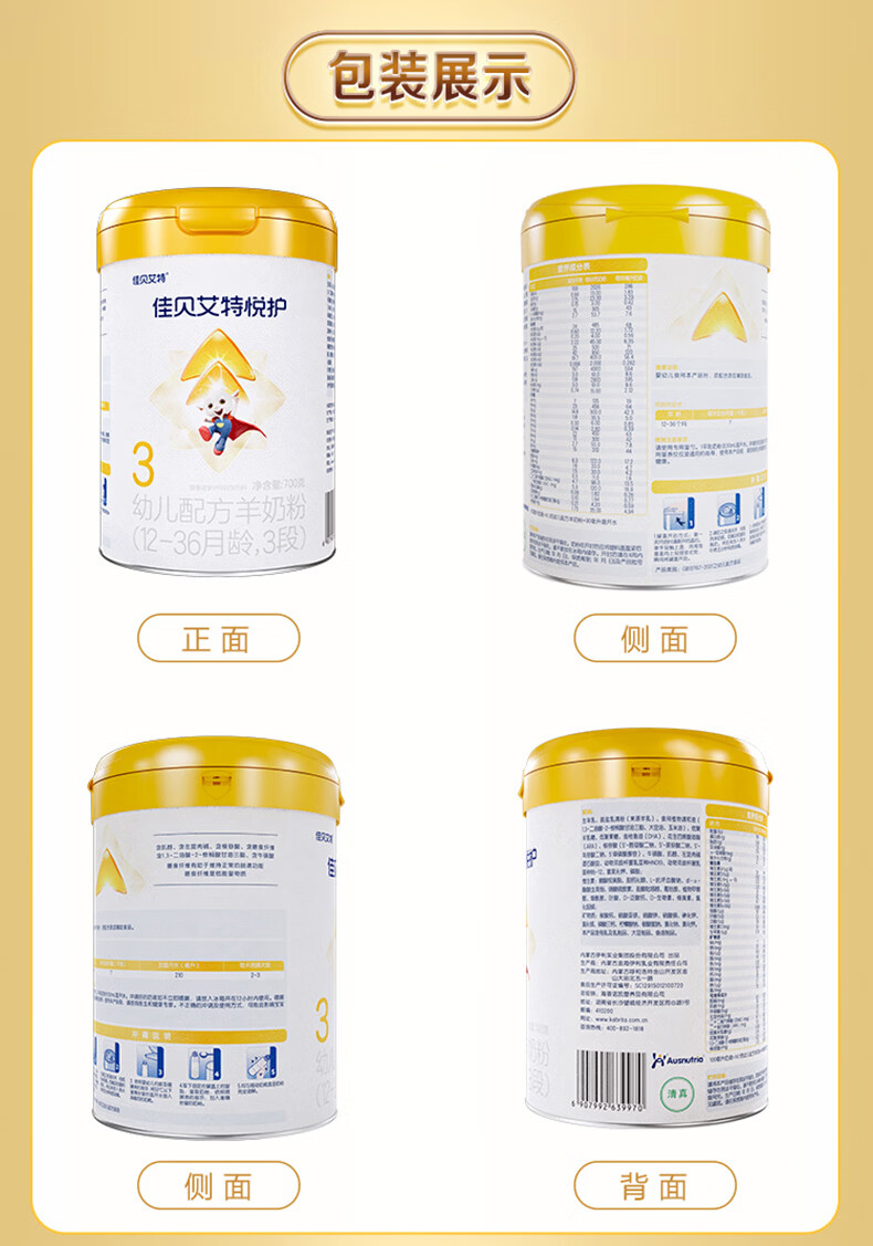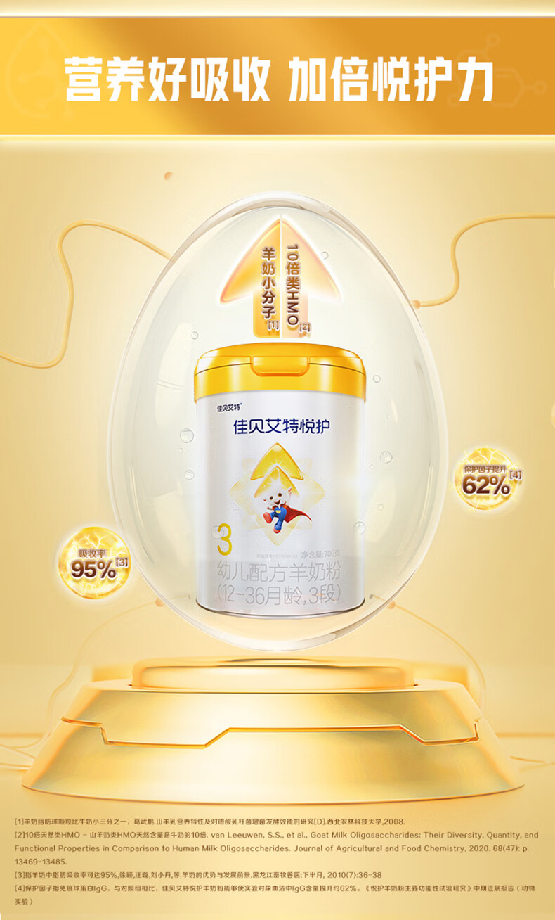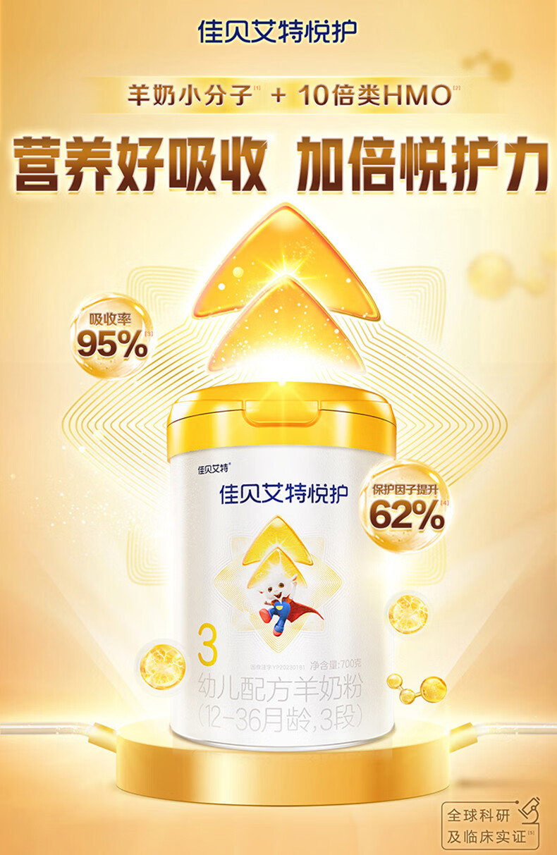 佳贝艾特(Kabrita)悦护婴幼儿配方羊奶粉 3段700克(1-3岁)吸收率95%