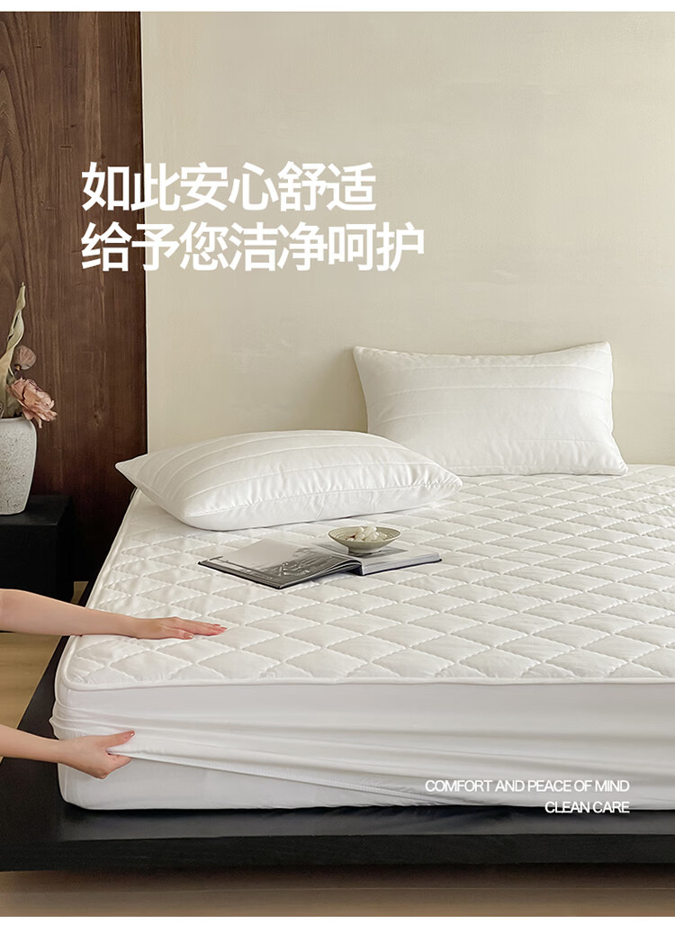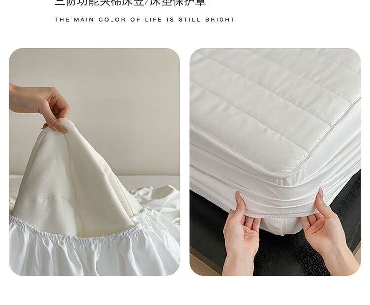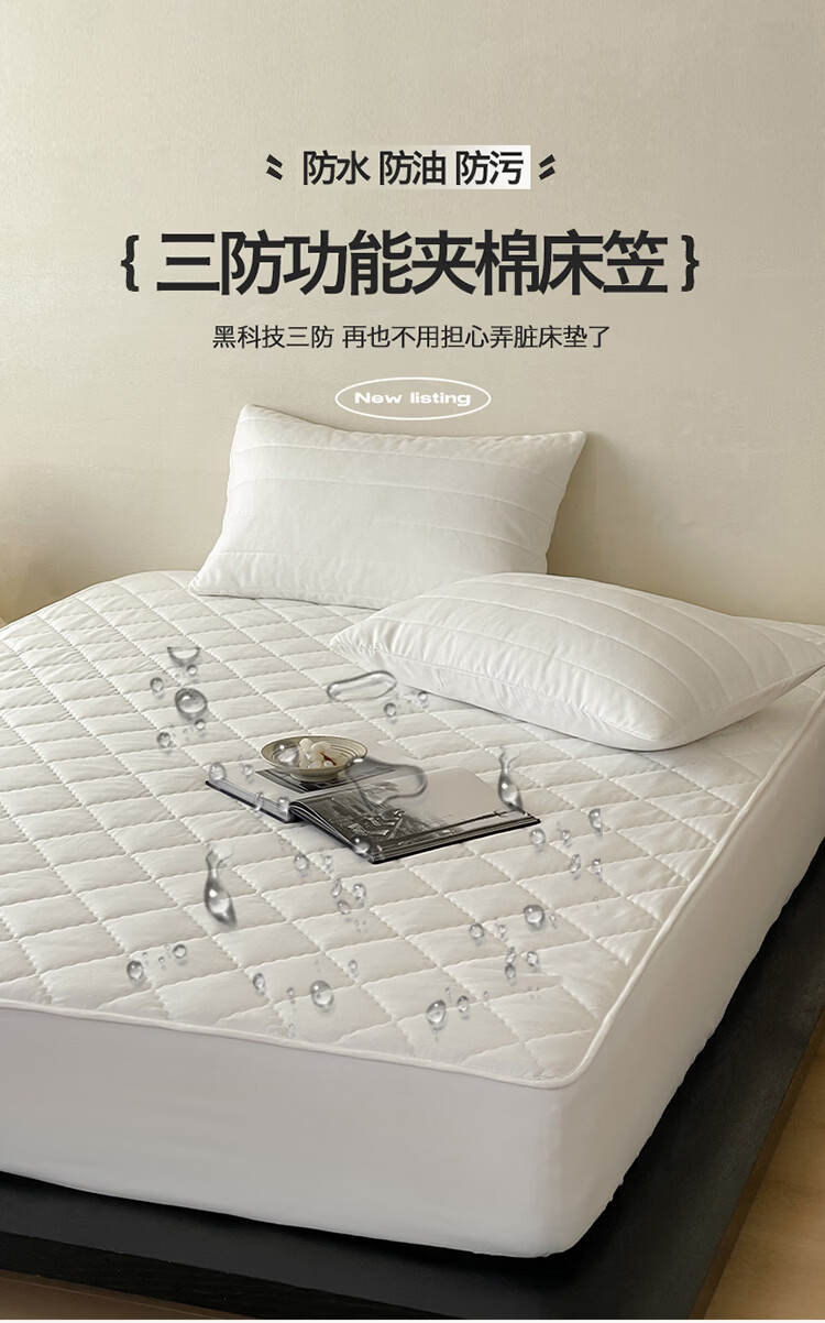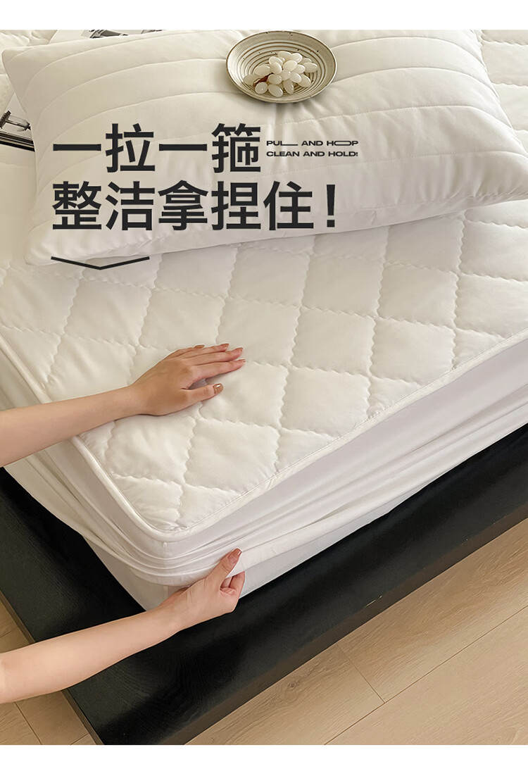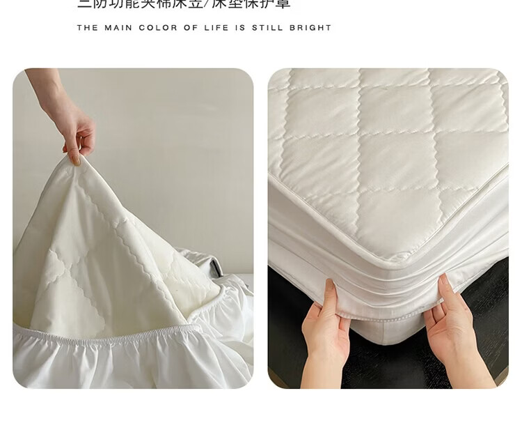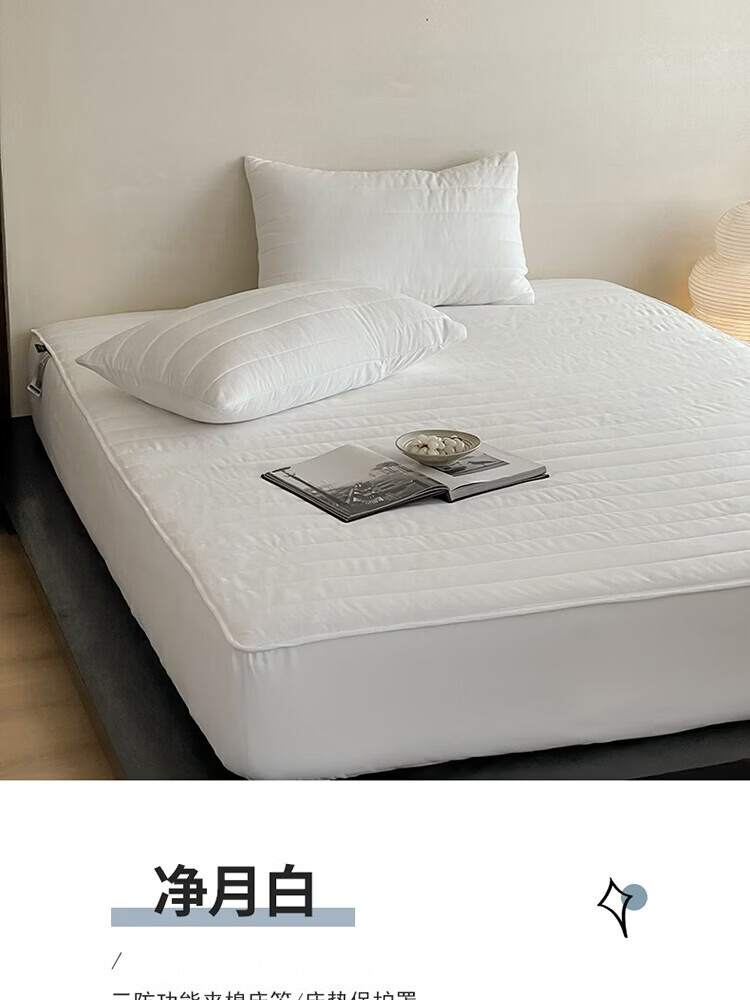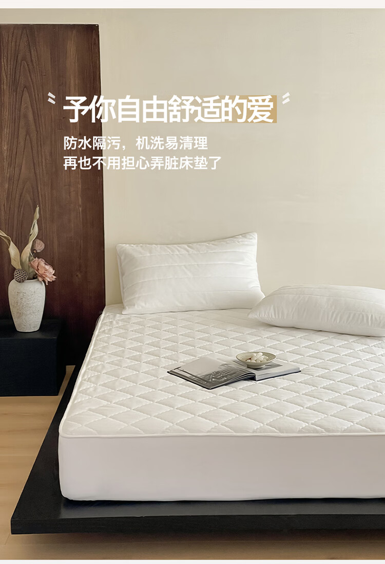 ROLAND LIVE三防功能夹棉床笠单件防水单双人床床垫保护套席梦思防尘罩四季 SW 三防夹棉床笠-纯净白 单床笠120*200cm