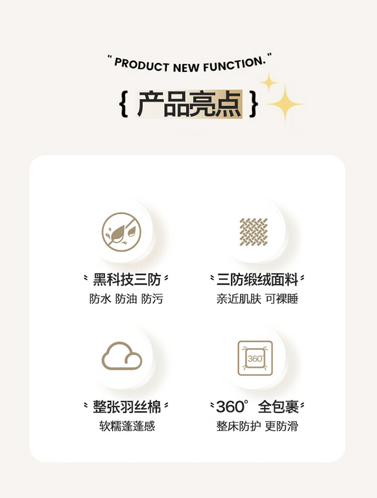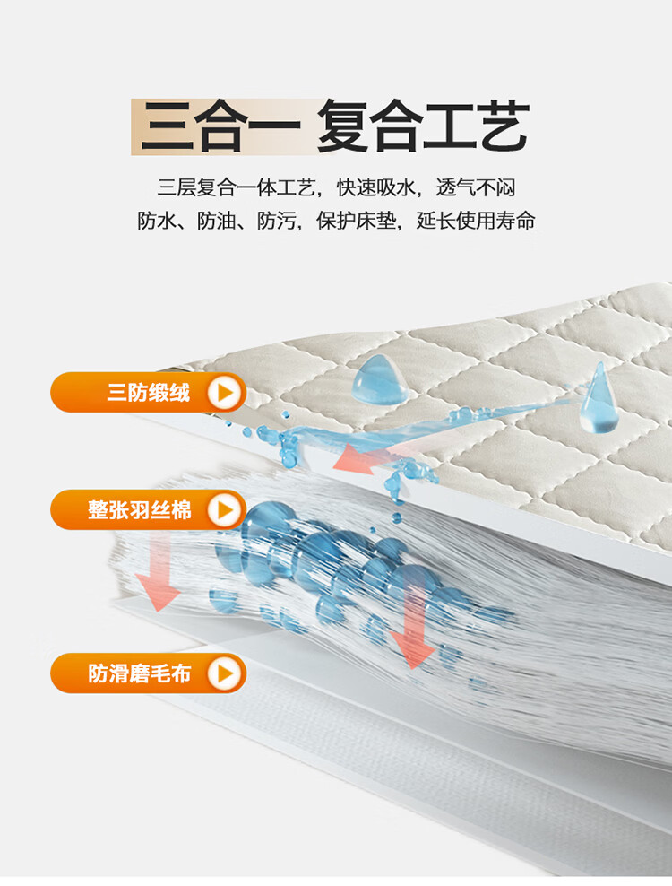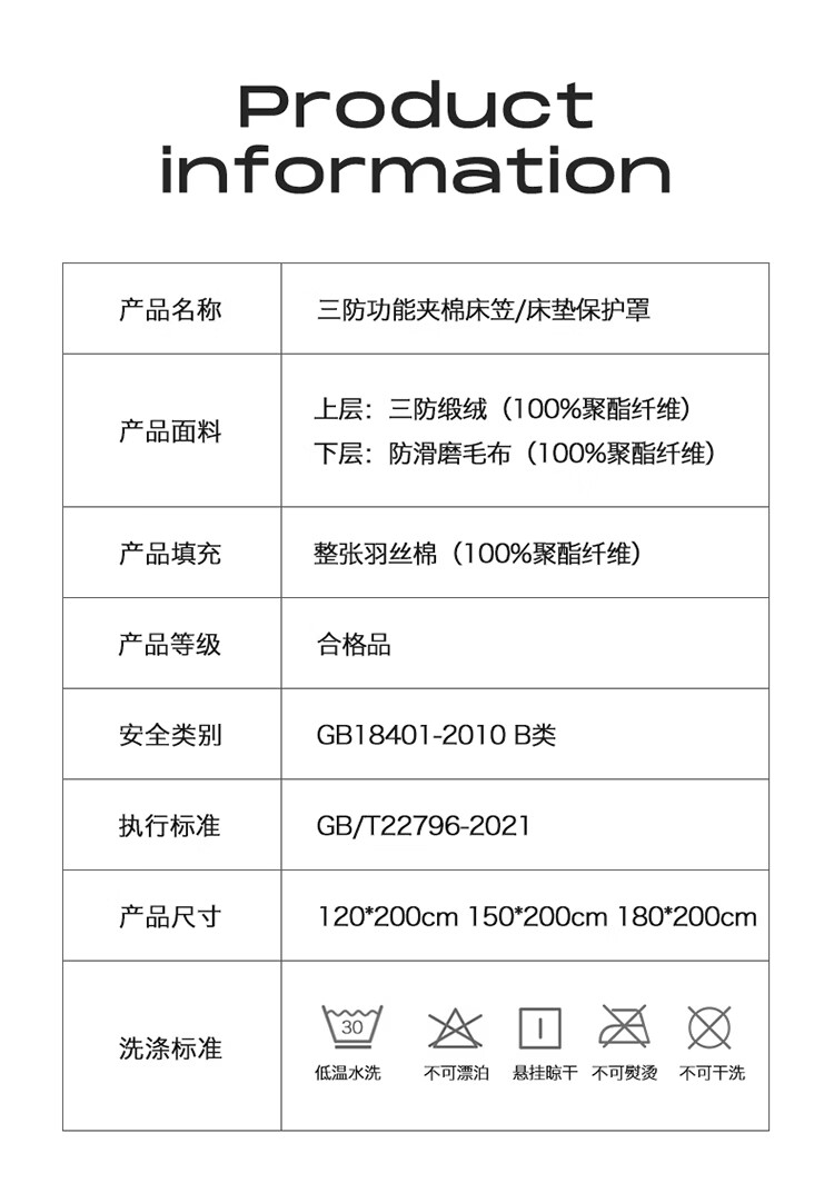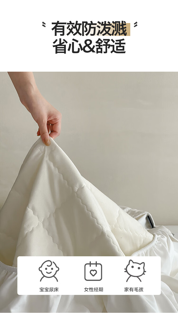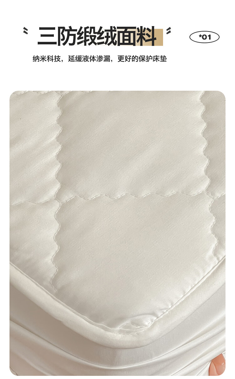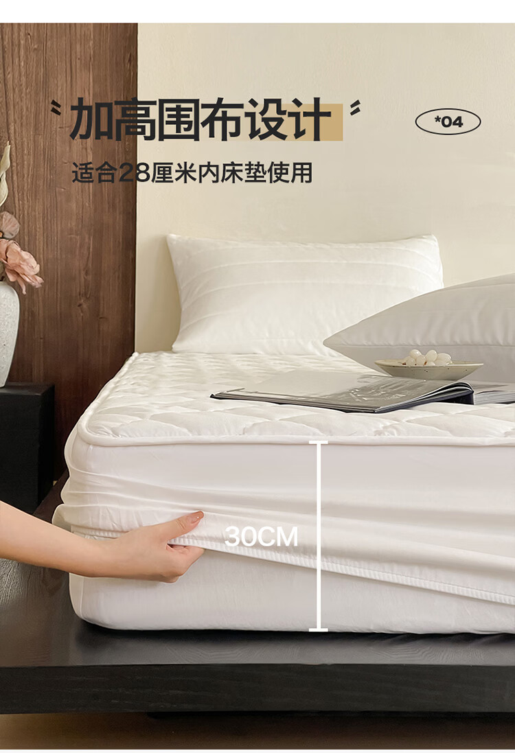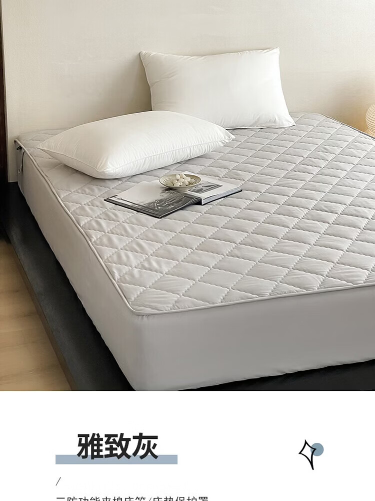 ROLAND LIVE三防功能夹棉床笠单件防水单双人床床垫保护套席梦思防尘罩四季 SW 三防夹棉床笠-纯净白 单床笠120*200cm