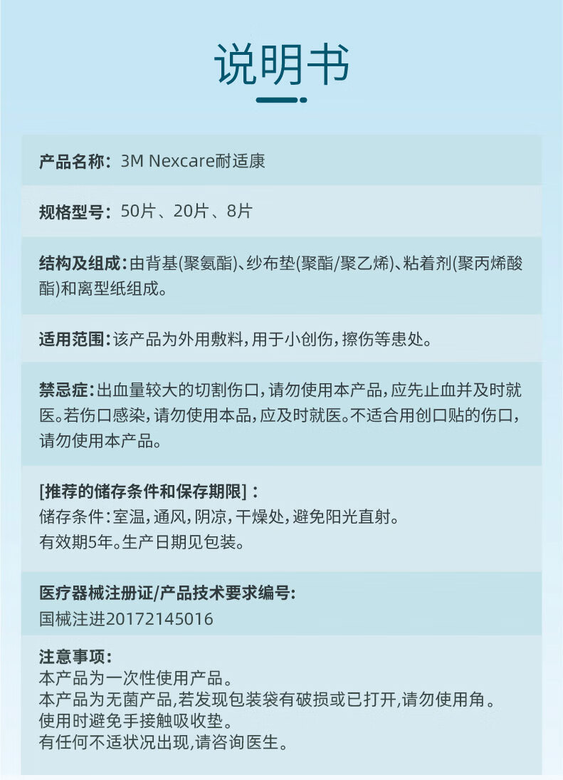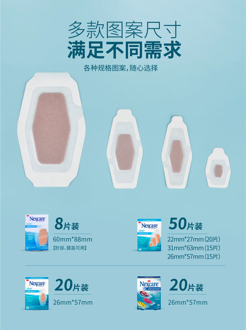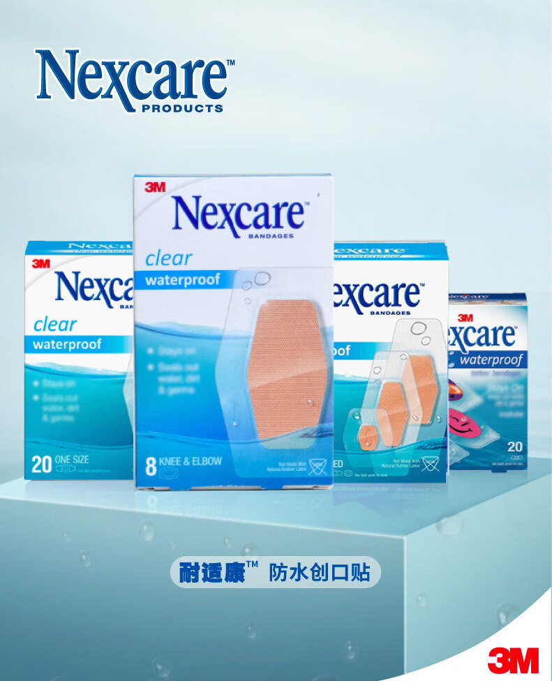 3M 耐适康创可贴 大号8片装 舒适透明 游泳防水透气二合一创口贴