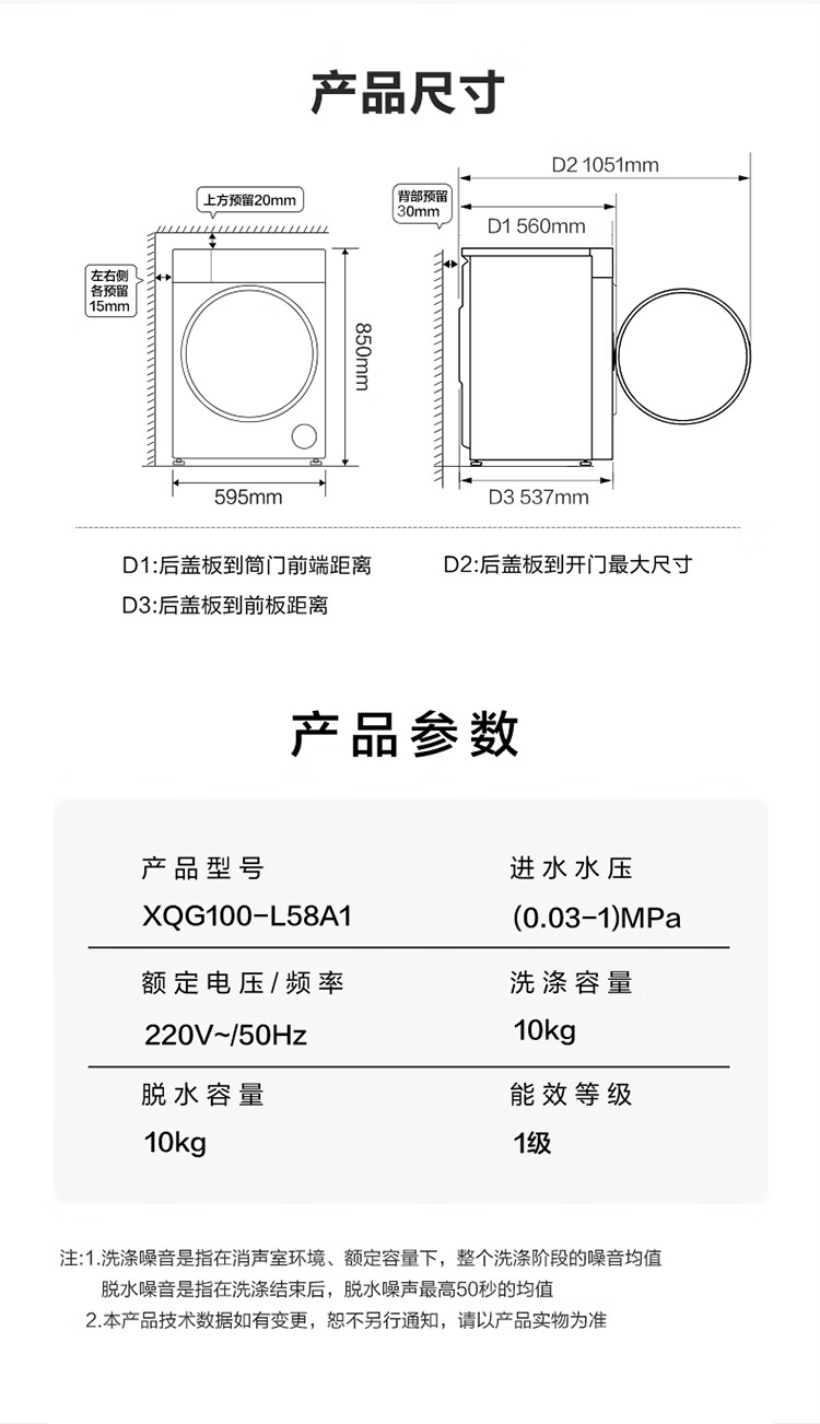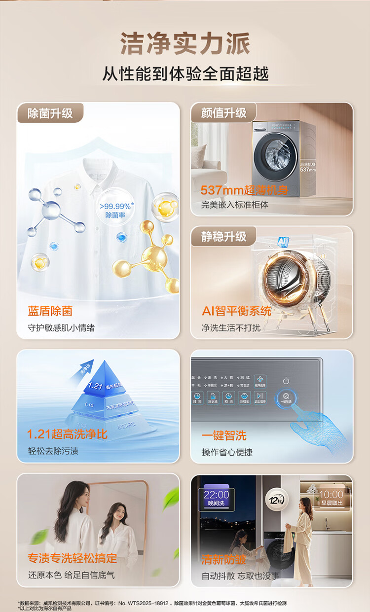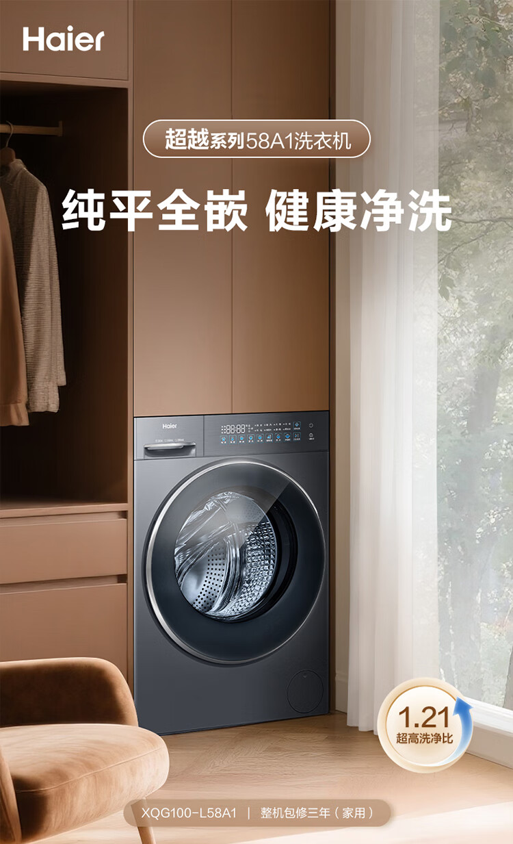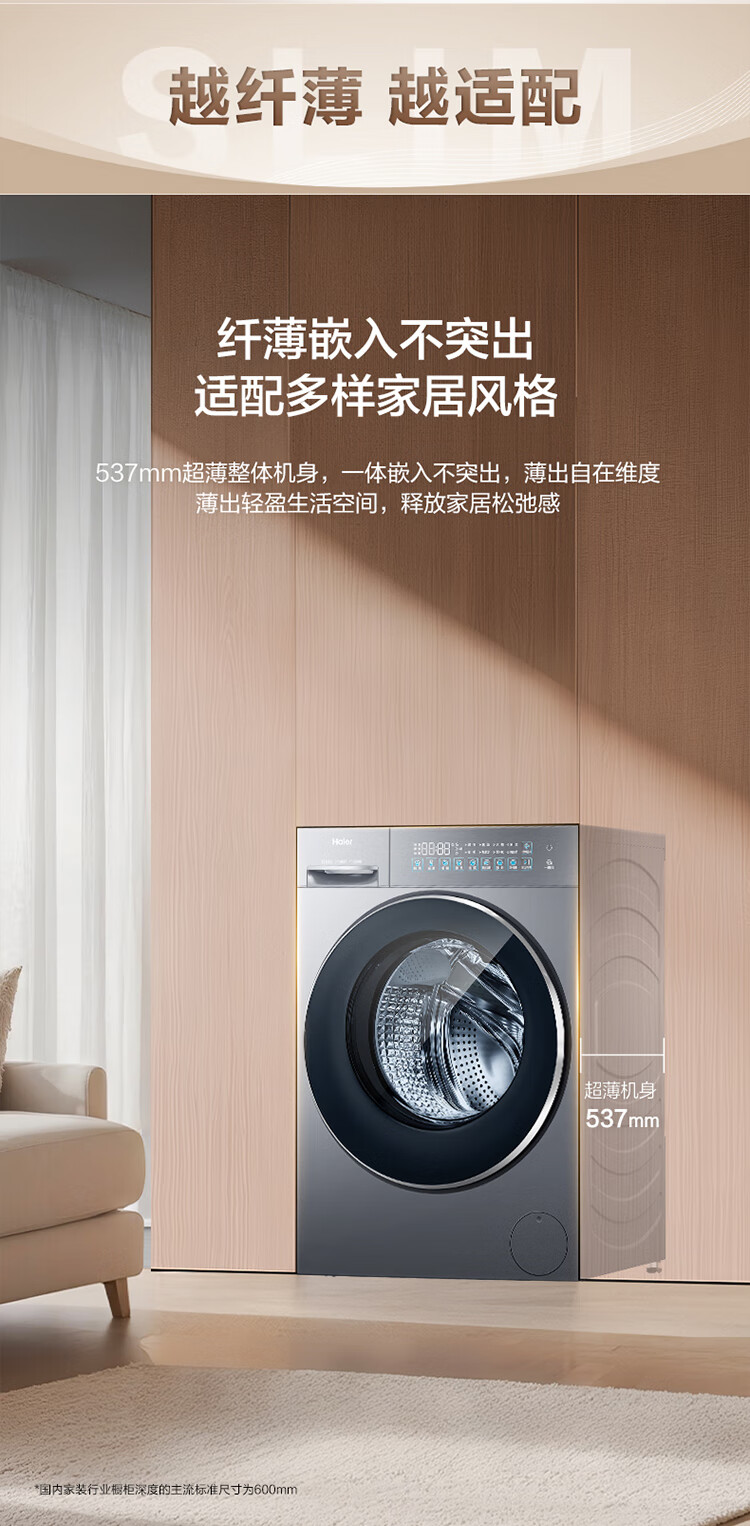 海尔滚筒洗衣机全自动10kg 新品 537超薄平嵌 蓝盾除菌 525大筒径 商场同款 20年防生锈XQG100-L58A1