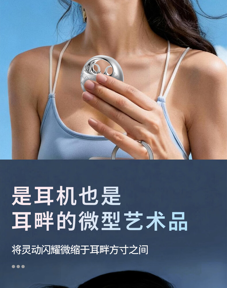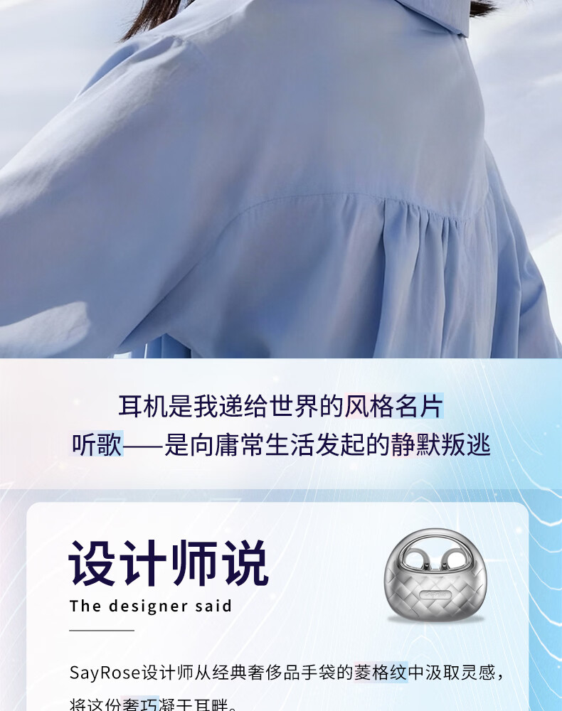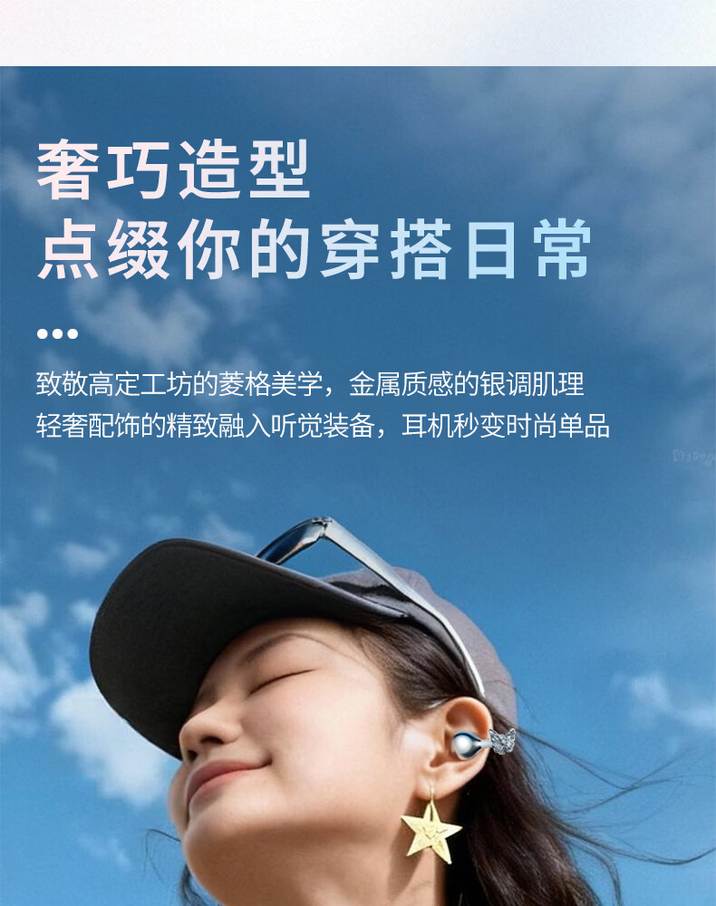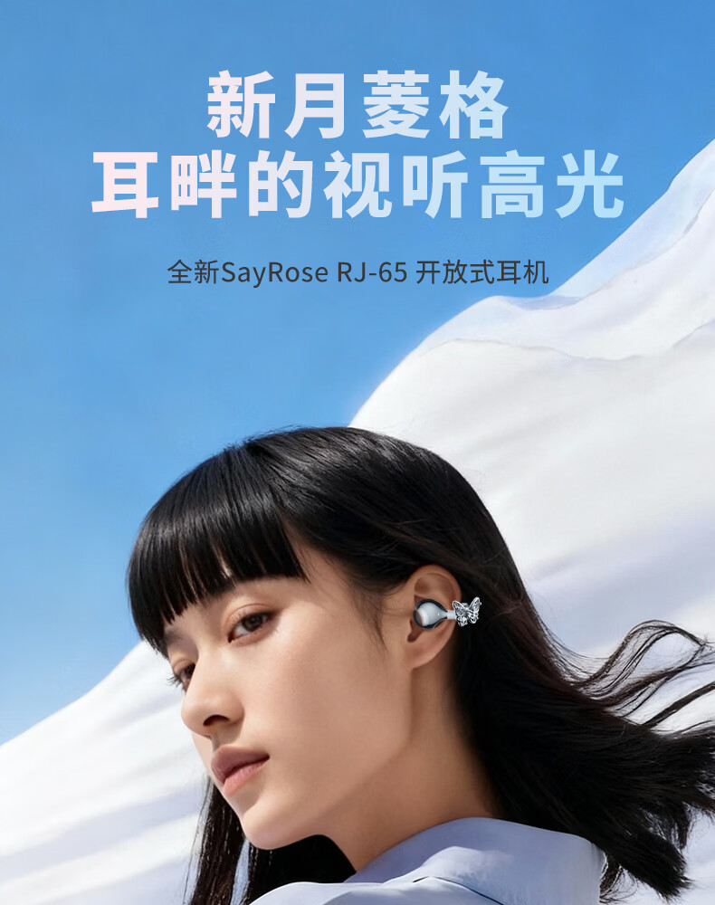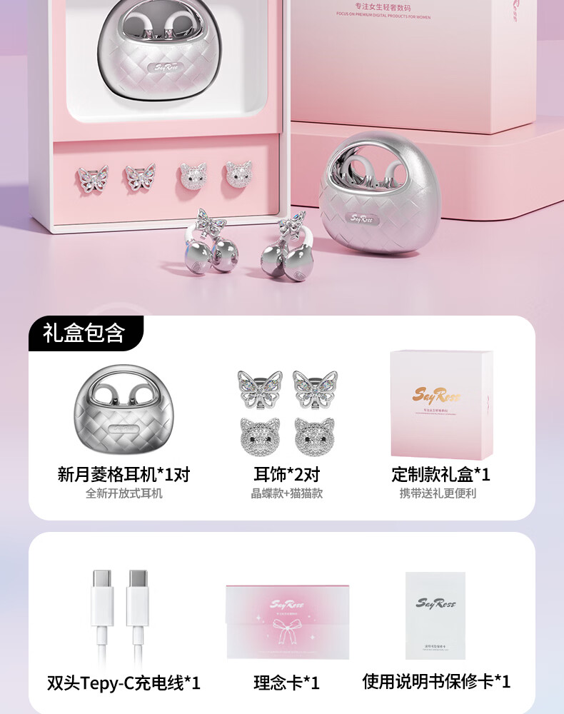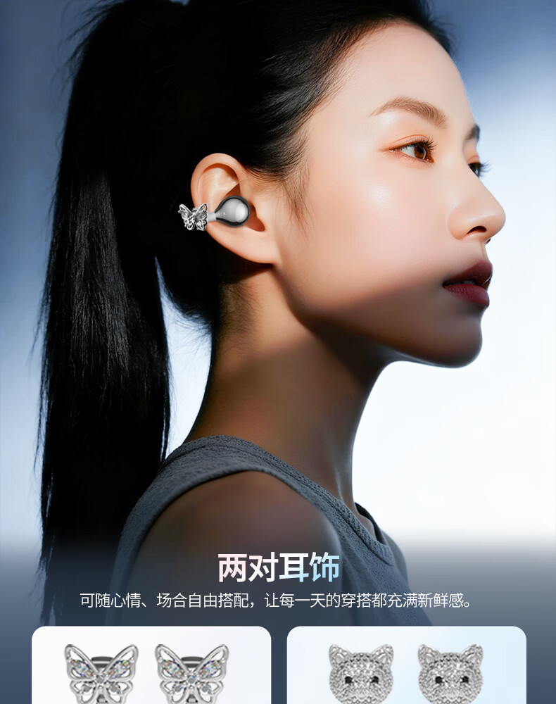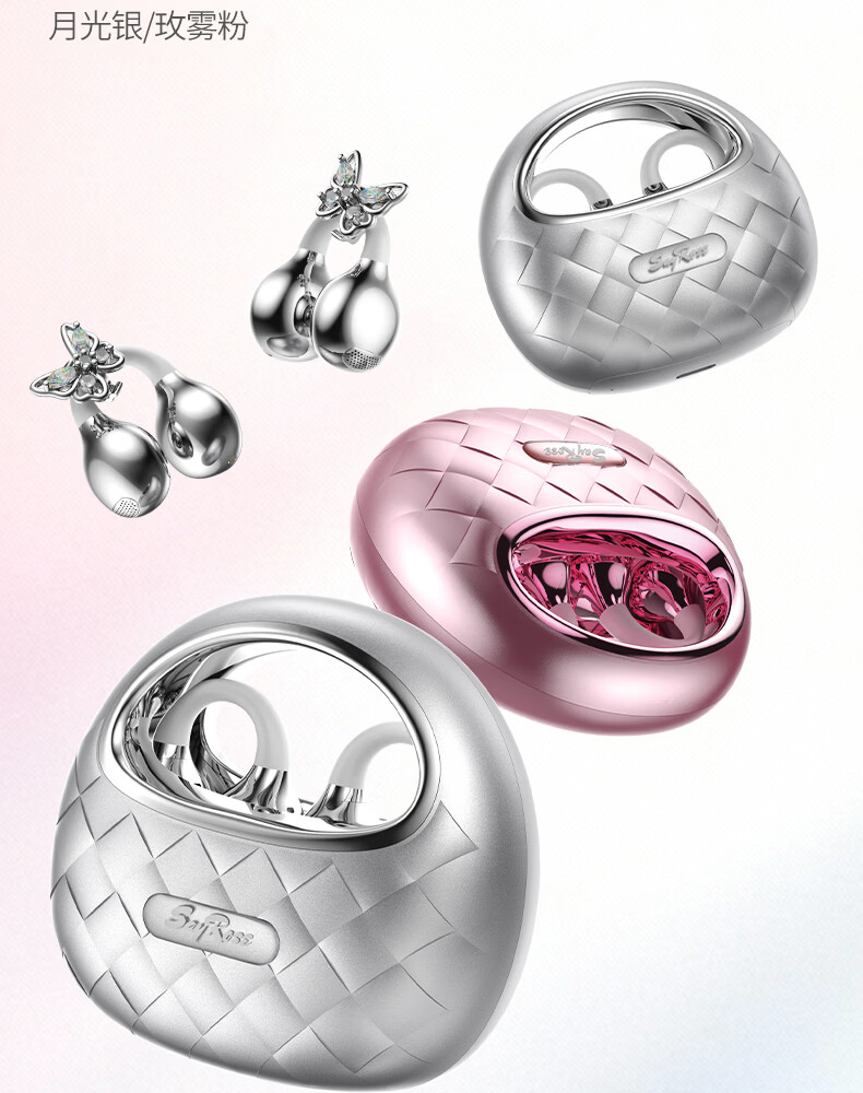 SayRose蓝牙耳机带耳饰降噪长续航时尚礼物生日情人节送女生爱人老婆闺蜜结婚生日企业礼品夹耳高颜值 月光银 【赠两对耳饰+定向传音+ENC降噪+电镀工艺】